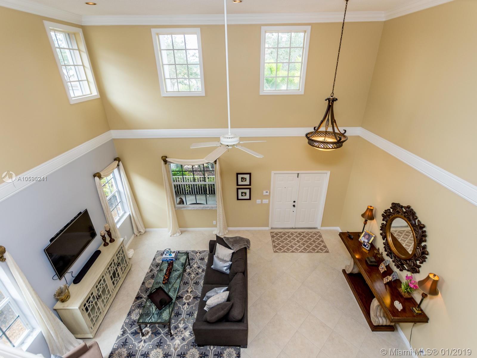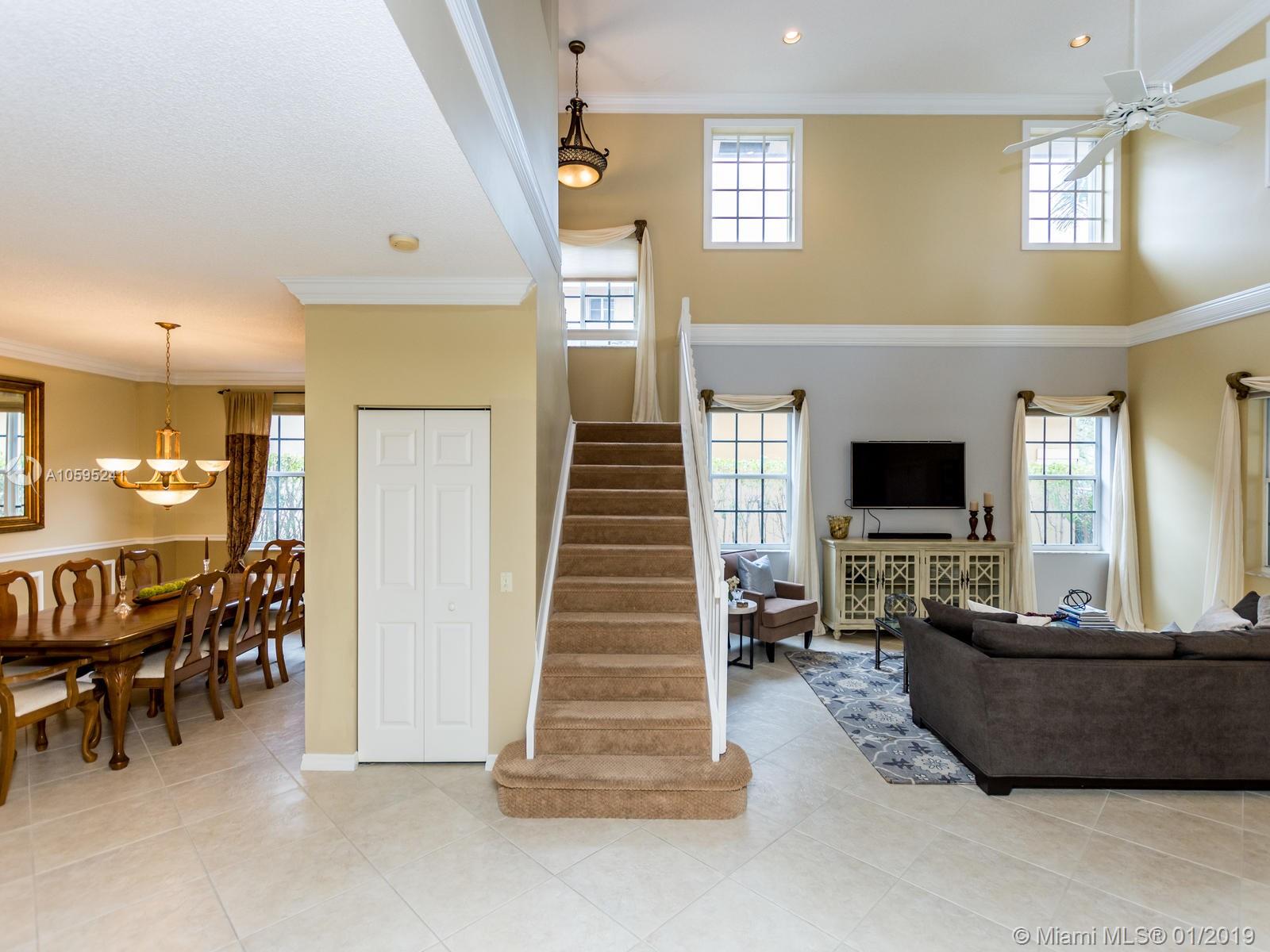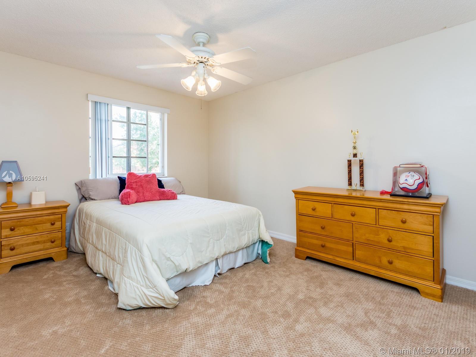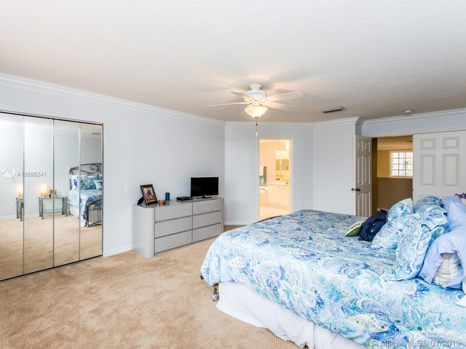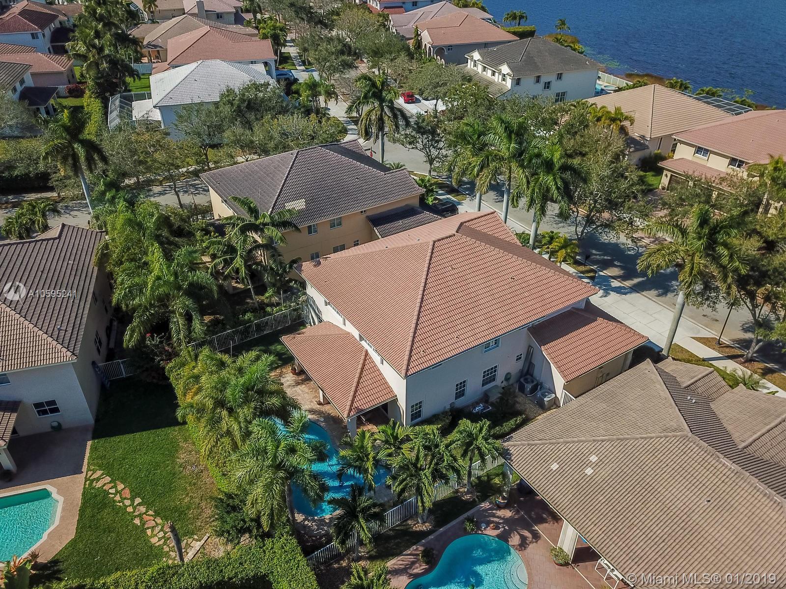 Pristine 6 bedroom/4 bath light and bright home with newer roof (2006) and new AC units (2017). Two story foyer, crown molding, neutral porcelain diagonal tile flooring, wood floor foyer and downstairs bedroom and upgraded carpeting in bedrooms/stairs. Stunning custom kitchen w/ granite, double oven, wood cabinets and top of line stainless steel appliances- perfect for cooking and entertaining. Open floor plan from kitchen to large family room w/ plantation shutters and adjacent bedroom w/ French doors. Grand master bedroom w/ updated master bathroom plus 4 large bedrooms incl. two with Jack & Jill bathroom. Tranquil backyard with covered patio, salt chlorinated pool and newer diamond brite. 2nd story has accordion hurricane shutters/first floor panels. Great neighborhood and A+ schools.