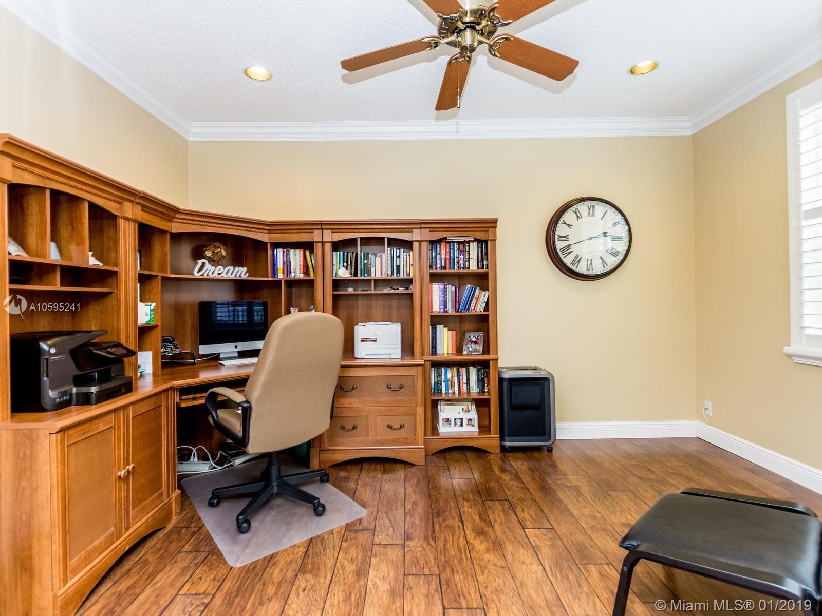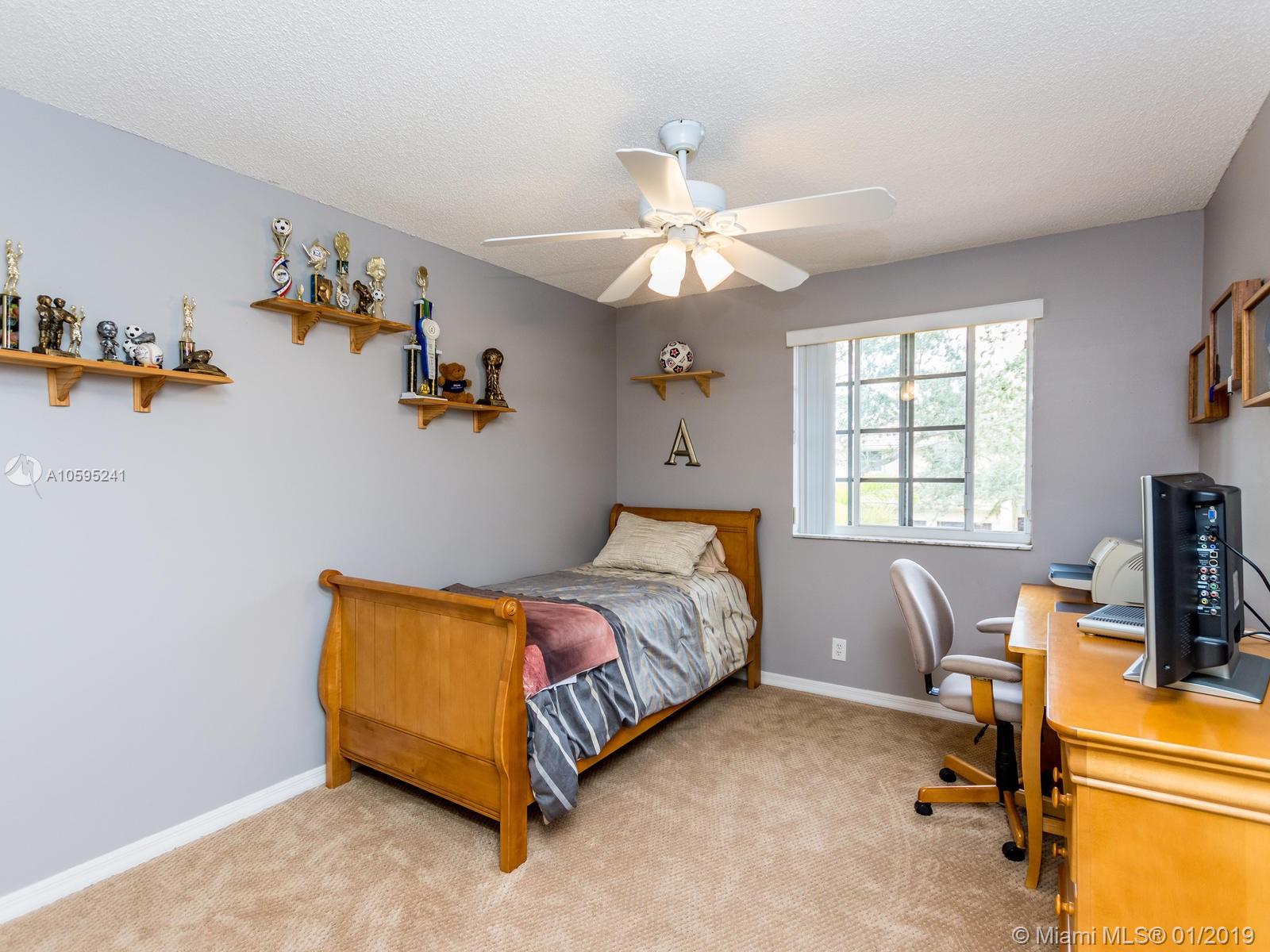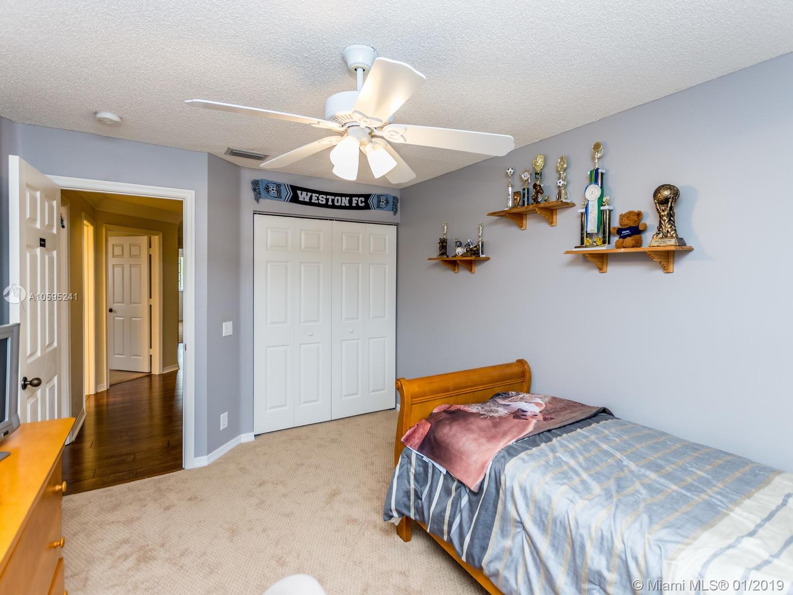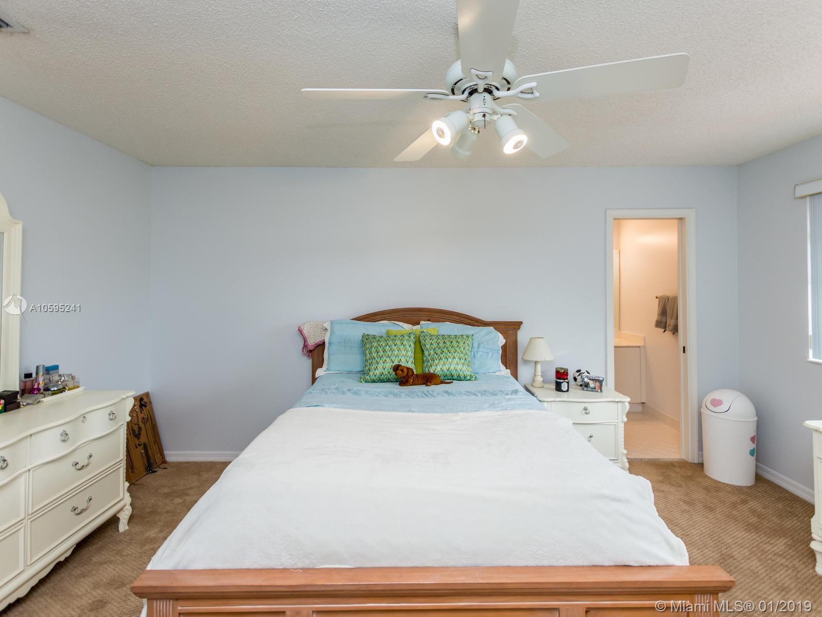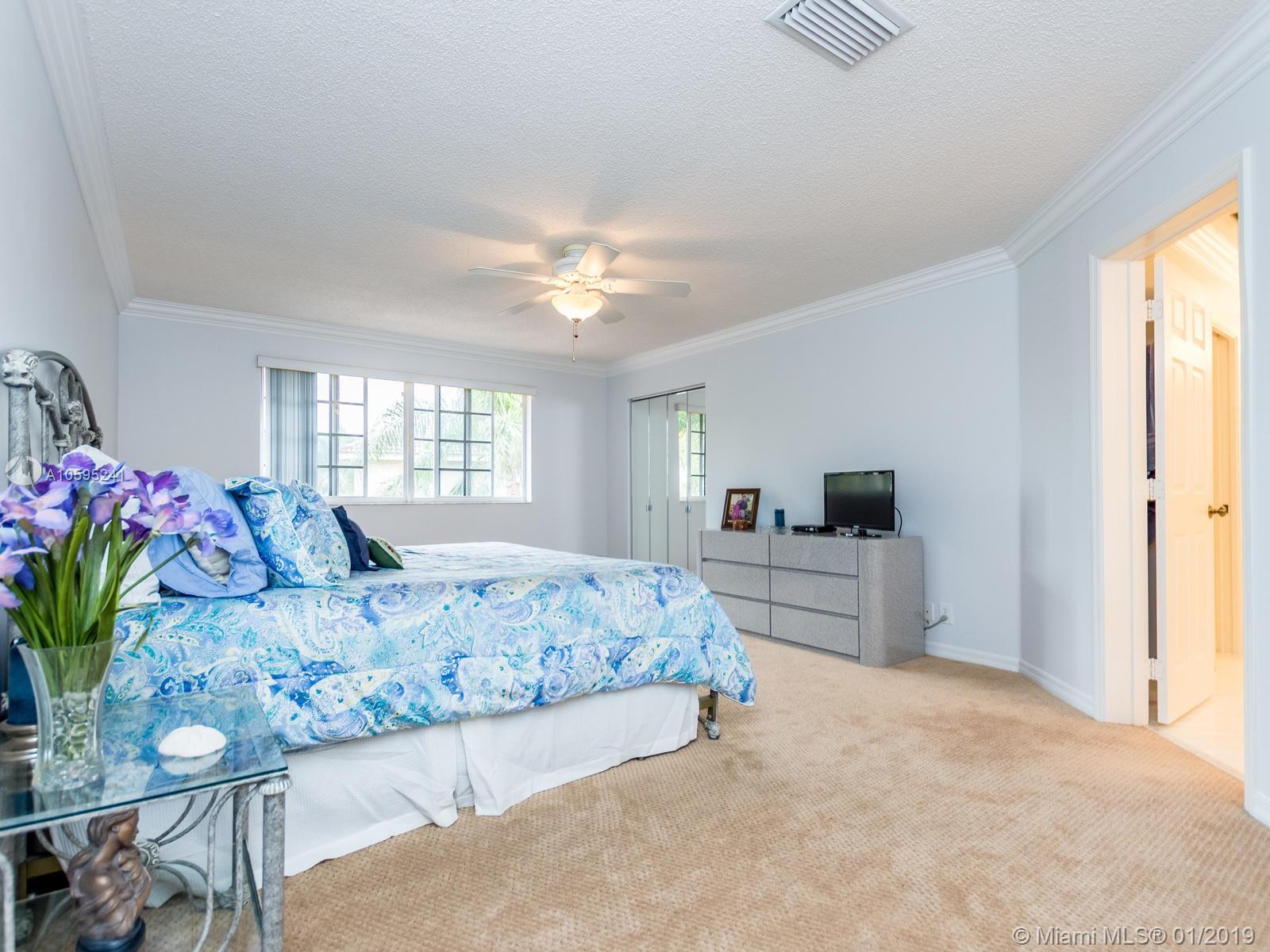 Pristine 6 bedroom/4 bath light and bright home with newer roof (2006) and new AC units (2017). Two story foyer, crown molding, neutral porcelain diagonal tile flooring, wood floor foyer and downstairs bedroom and upgraded carpeting in bedrooms/stairs. Stunning custom kitchen w/ granite, double oven, wood cabinets and top of line stainless steel appliances- perfect for cooking and entertaining. Open floor plan from kitchen to large family room w/ plantation shutters and adjacent bedroom w/ French doors. Grand master bedroom w/ updated master bathroom plus 4 large bedrooms incl. two with Jack & Jill bathroom. Tranquil backyard with covered patio, salt chlorinated pool and newer diamond brite. 2nd story has accordion hurricane shutters/first floor panels. Great neighborhood and A+ schools.