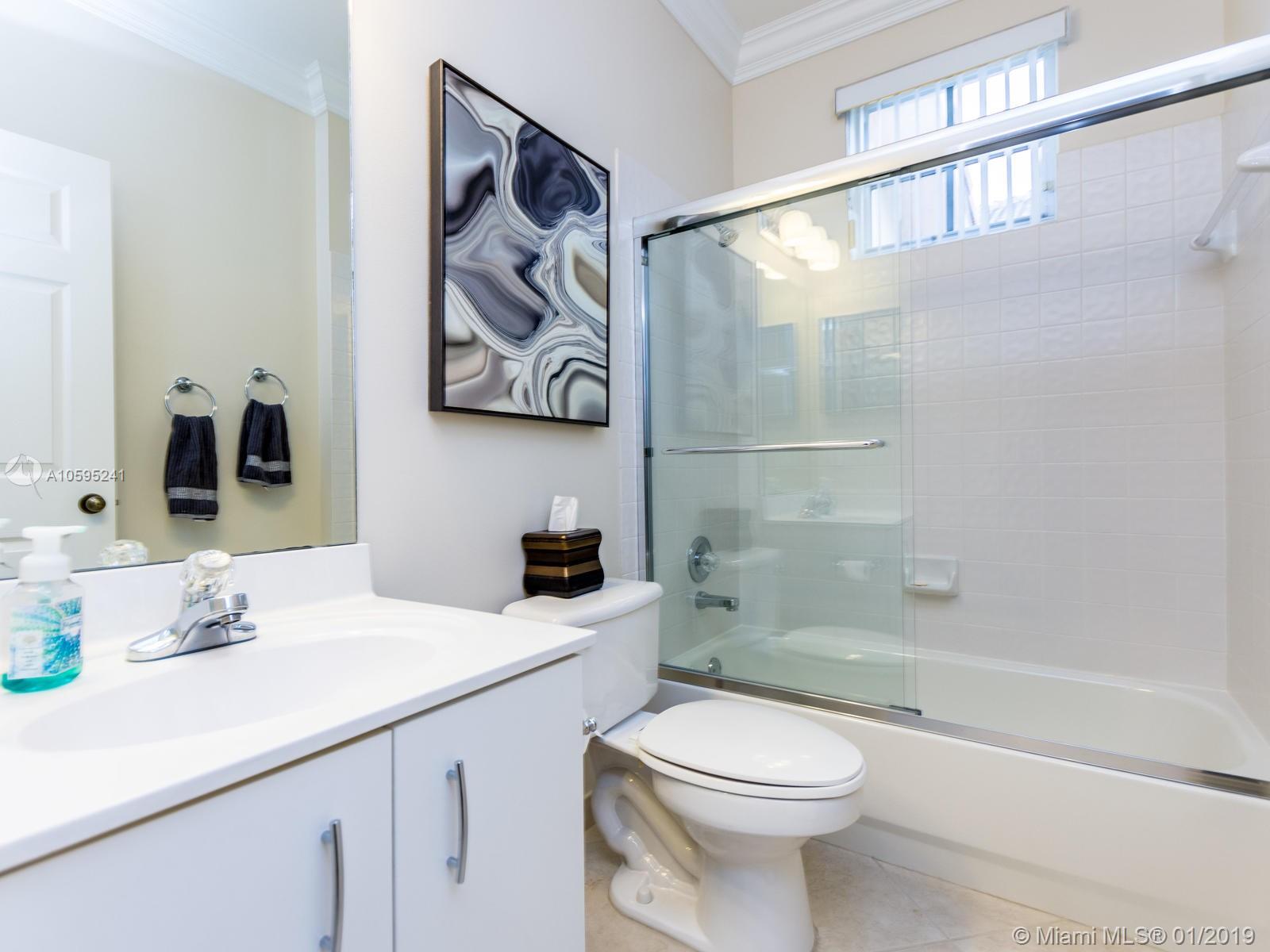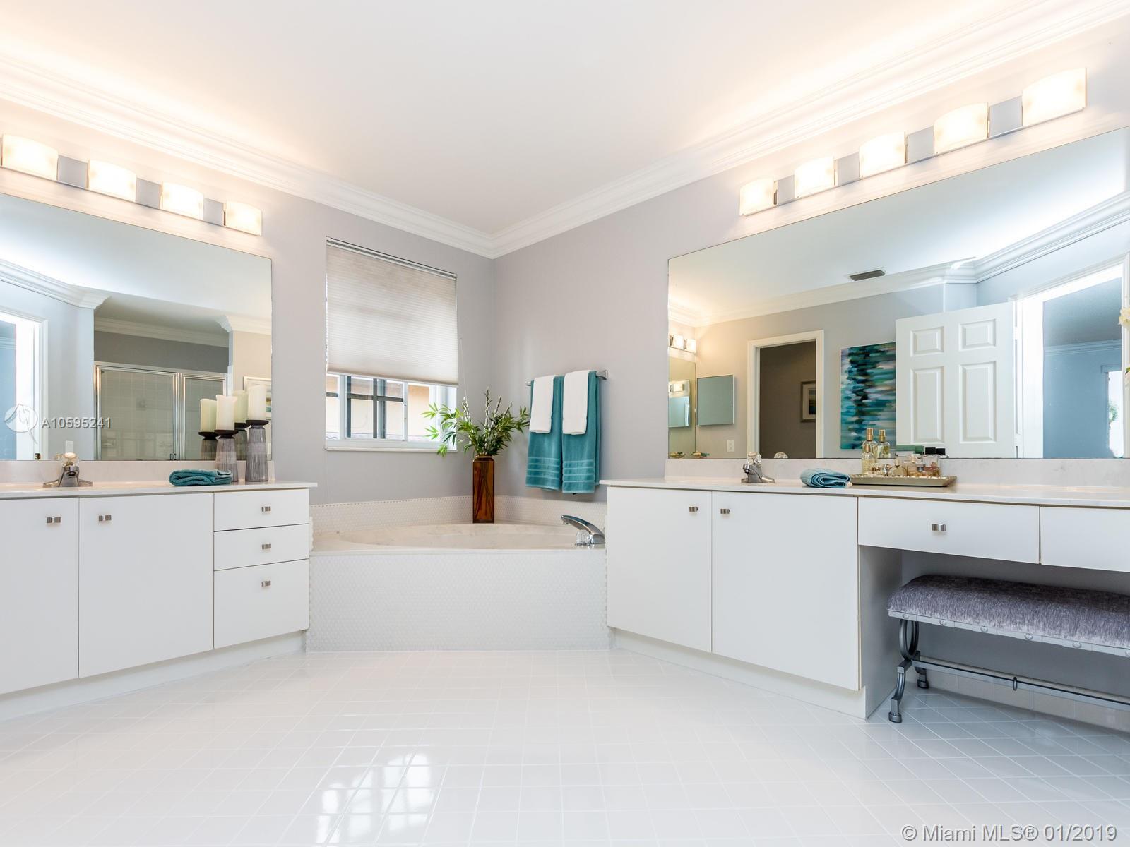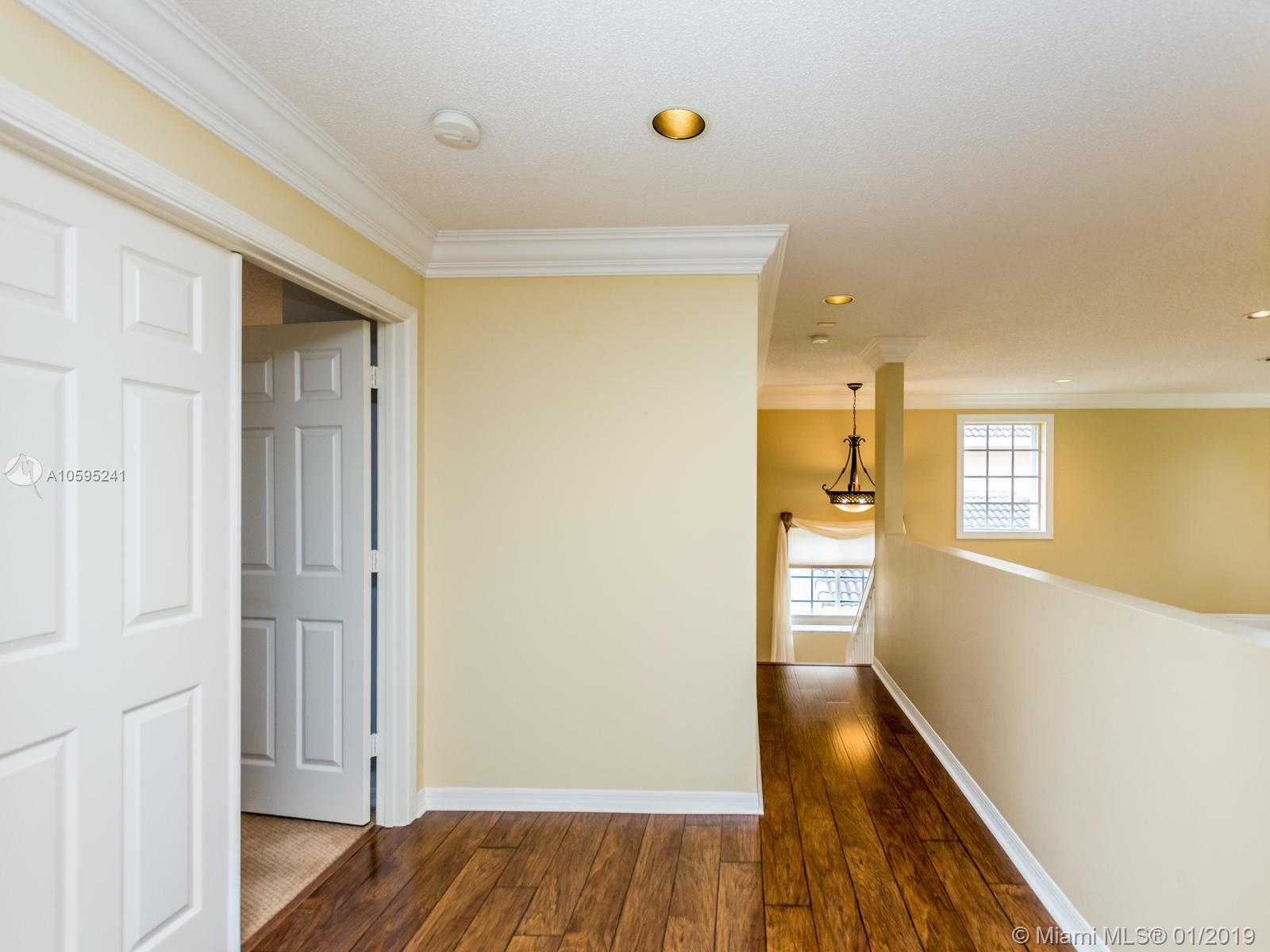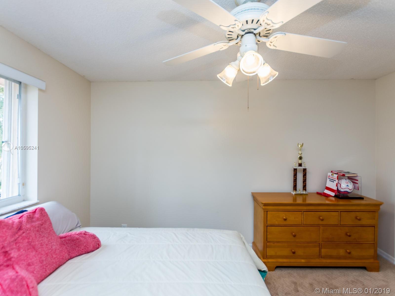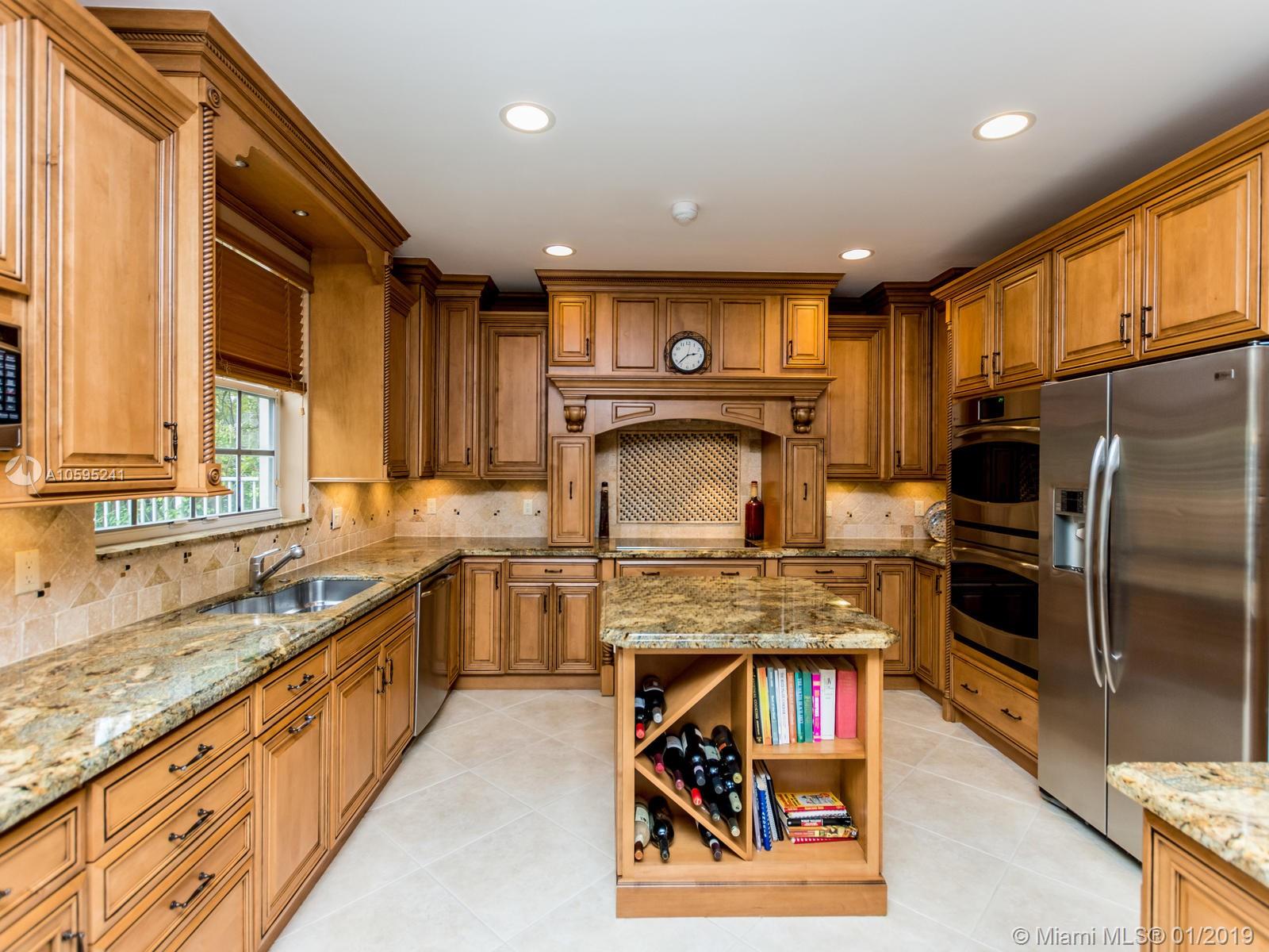 Pristine 6 bedroom/4 bath light and bright home with newer roof (2006) and new AC units (2017). Two story foyer, crown molding, neutral porcelain diagonal tile flooring, wood floor foyer and downstairs bedroom and upgraded carpeting in bedrooms/stairs. Stunning custom kitchen w/ granite, double oven, wood cabinets and top of line stainless steel appliances- perfect for cooking and entertaining. Open floor plan from kitchen to large family room w/ plantation shutters and adjacent bedroom w/ French doors. Grand master bedroom w/ updated master bathroom plus 4 large bedrooms incl. two with Jack & Jill bathroom. Tranquil backyard with covered patio, salt chlorinated pool and newer diamond brite. 2nd story has accordion hurricane shutters/first floor panels. Great neighborhood and A+ schools.