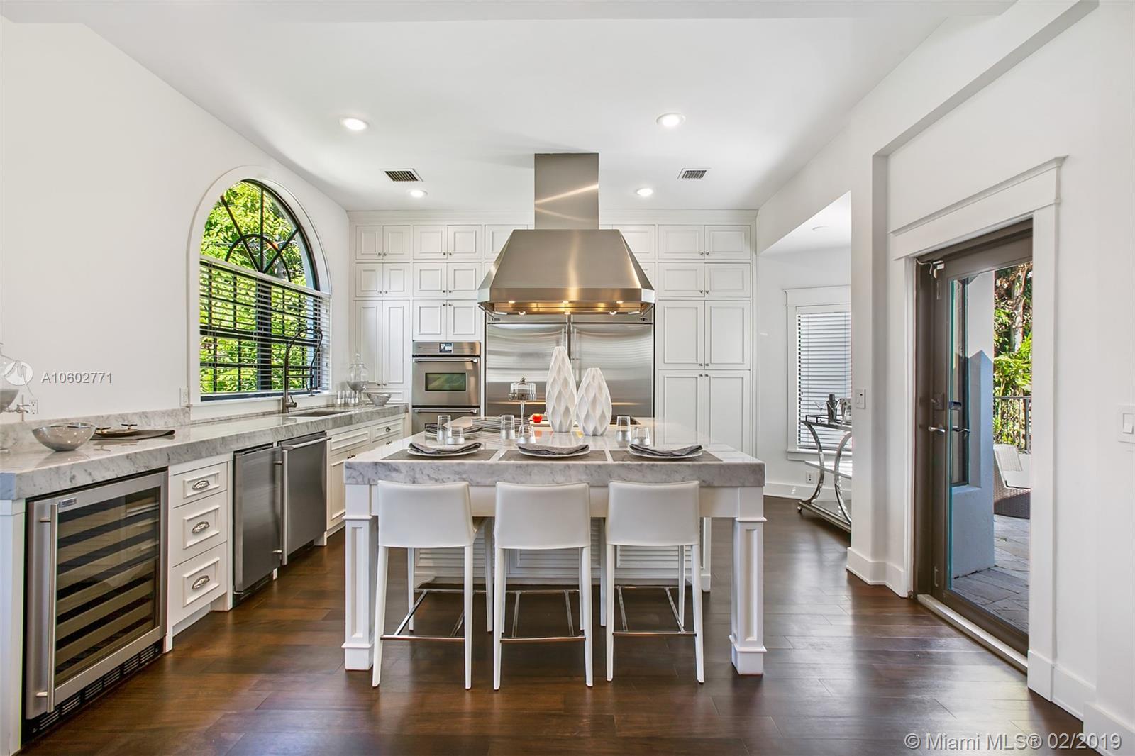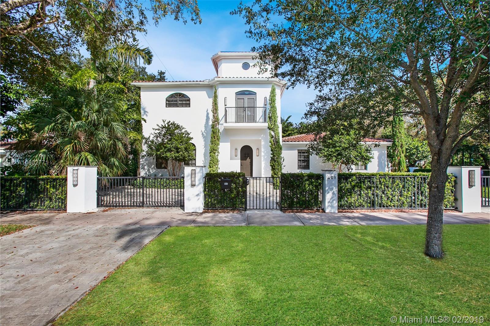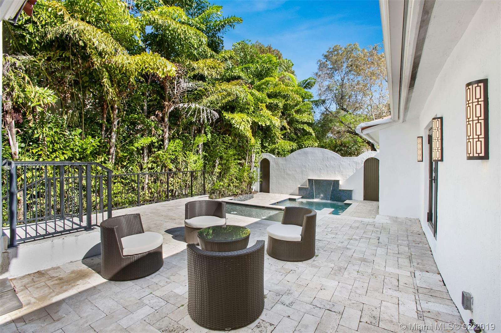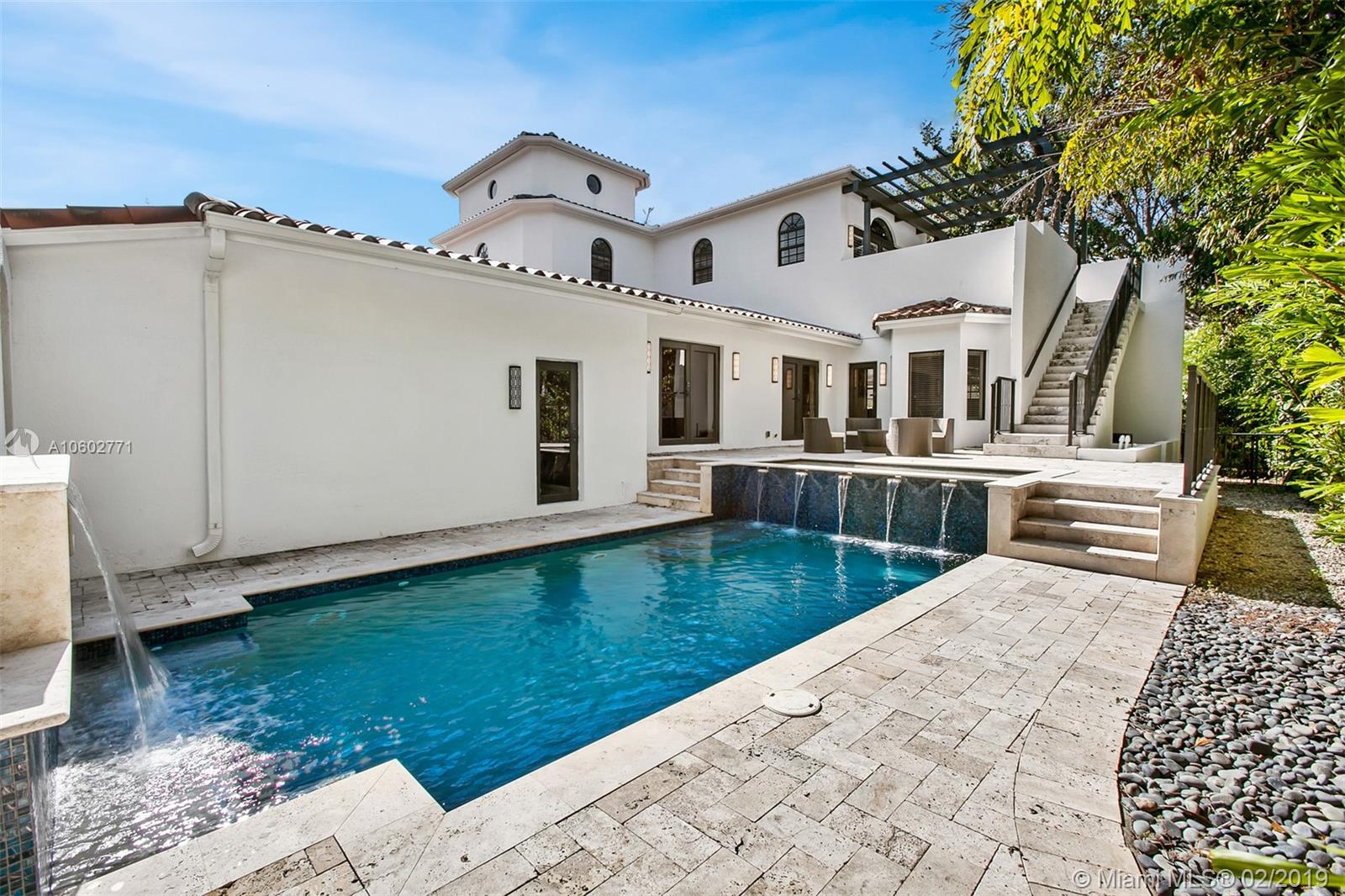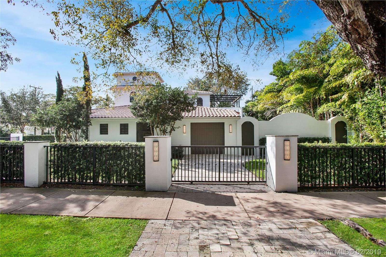 Stately, Spanish-inspired home on a gated corner lot in one of Coral Gables’s most desirable pocket neighborhoods. Boasting a crisp modern aesthetic, this gorgeous residence was rebuilt from the ground up in 2013 w/all-new construction, appointments, amenities & finishes. Features include custom solid mahogany front door, glamorous staircase, solid hardwood floors, 2 fireplaces & impact doors/windows. Indoor/outdoor luxe SoFla living: Flowing, light-flooded interiors, extraordinary gourmet kitchen w/top-tier appliances & gas range, sumptuous baths w/Porcelonosa vanities, serene Master w/private balcony, saltwater Pool w/waterfall & sunning area. Short walks to Merrie Christmas & Ingraham parks; mere minutes to downtown Gables, Grove, SoMi, Airport & more.
