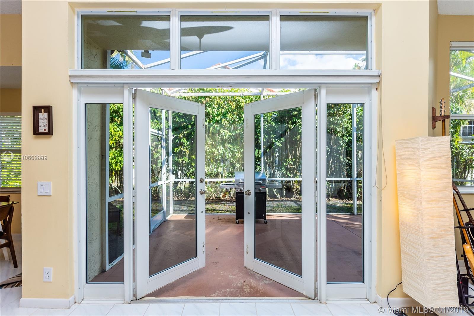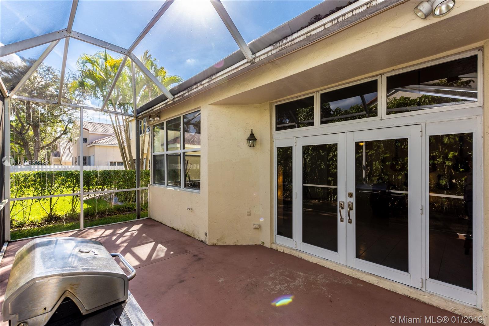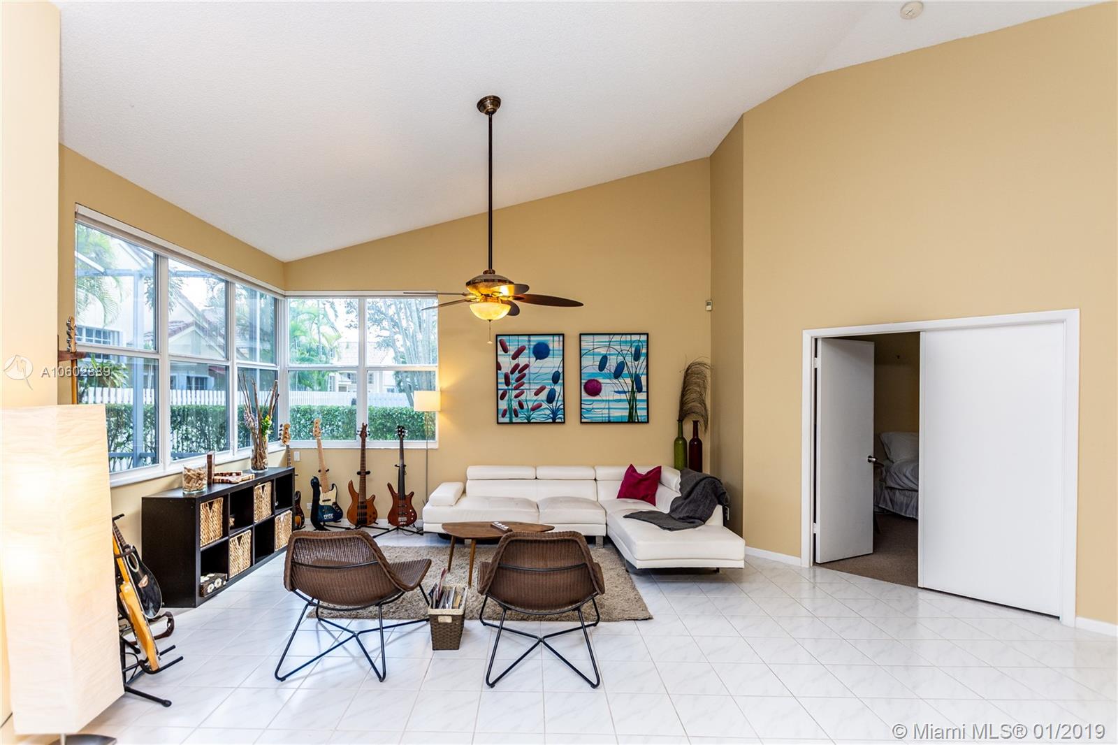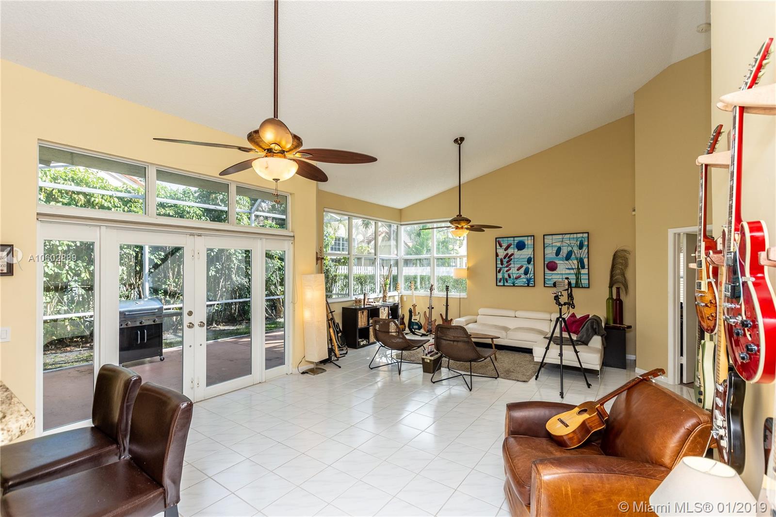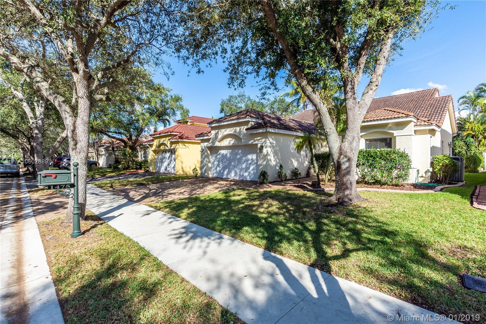 Take a look at this beautiful one story that is nestled in Hibiscus Island consisting of only 116 homes! Here in Weston's perfectly placed, gated neighborhood, you will find canopied, tree lined streets, a welcoming pool & playground, & THIS 3 bedroom, 2 bath gem complete with impact windows. This bright sun-kissed home welcomes you the minute you walk in with it's vaulted ceilings and open concept living. Plenty of granite counter space, breakfast bar & solid wood cabinets make this kitchen a dream! The split bedroom floorplan offers just the right amount of privacy. The master bedroom is generous in size w/ a walk in closet, master bath w/ double vanity, & separate large shower & garden tub. The outside is complemented w/ a Chicago brick courtyard entry & a screened in porch for dining.
