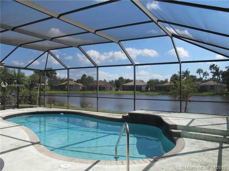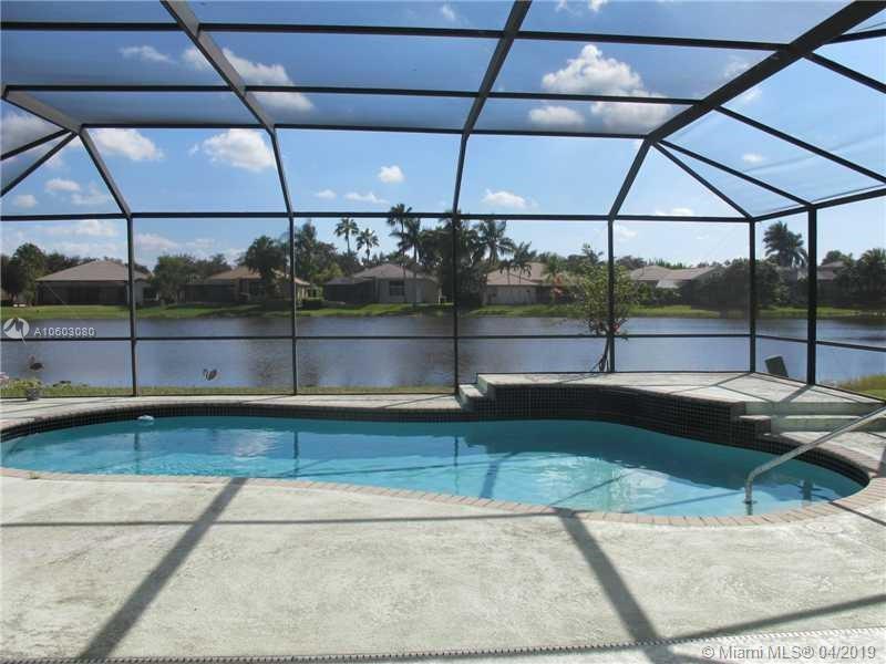Magnificent Waterfront 4 bed/3 bath residence Brand New Roof in prestigious Weston Hills Country Club community. A perfect open layout specially design for entertaining! Enjoy your morning coffee overlooking this attractive and serene pool-lake view. This property features split bedrooms- Kitchen with electric appliances about 4 years old. Washer-Dryer 3 years old- High Impact windows in the front of property and High Impact Glasses sliding doors in the back. Fully screened patio. The relaxing pool has being totally resurfaced and the pool electric equipment replaced 3-1/2 years ago, pavers surrounding the pool were replaced same time - A.C. Equipment 4 years- Great schools and easy access to I-75. Do not miss this opportunity!
