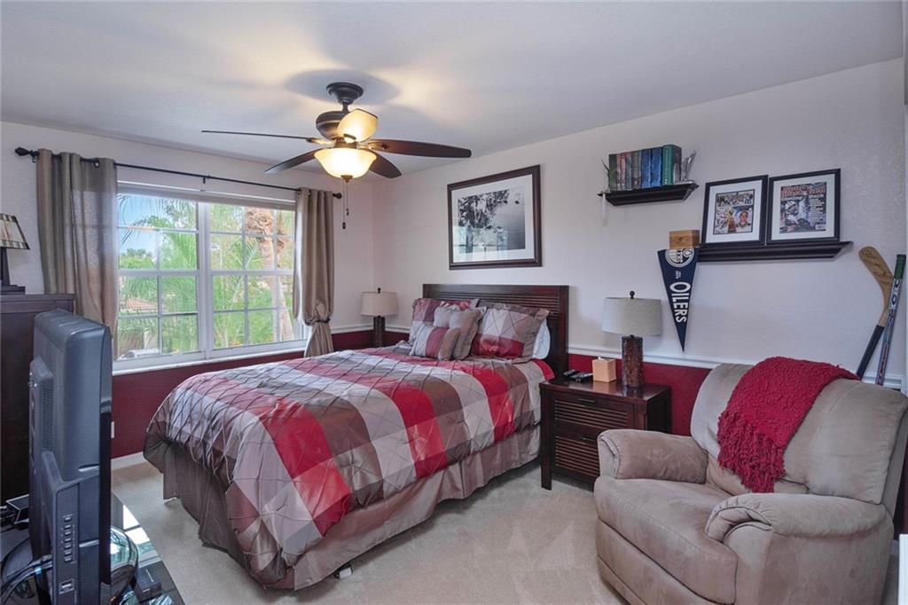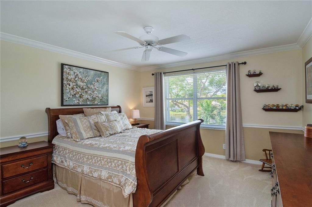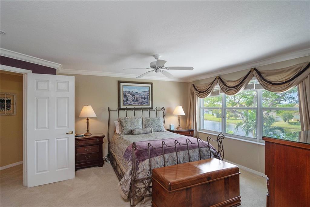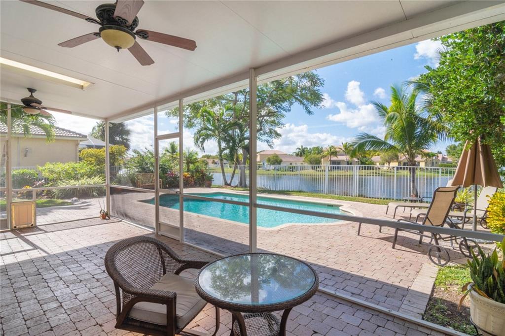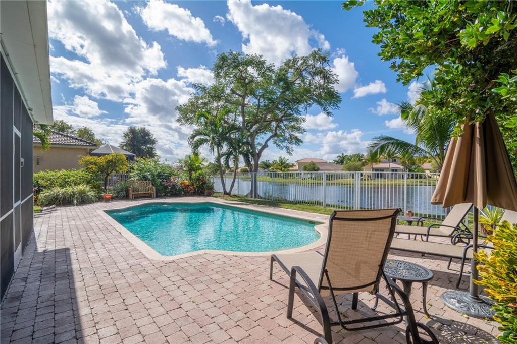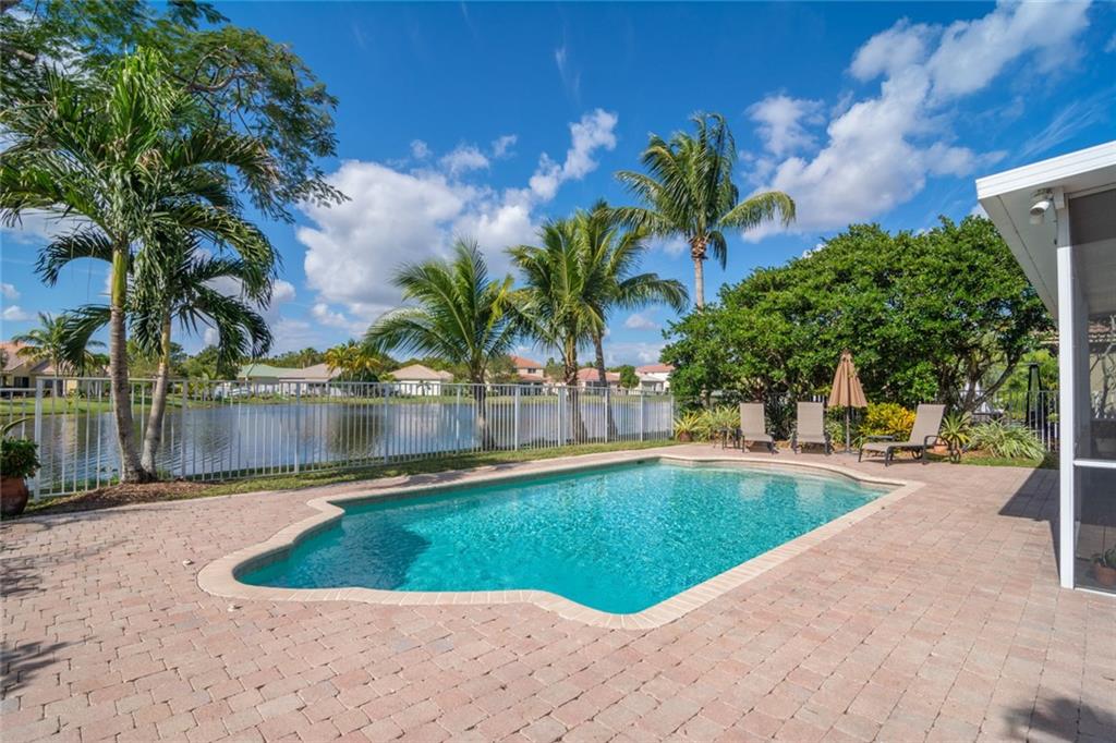 5 Br/3 Bath Pool/Lakefront Ritz Model w/3 car garage. Approx 2900 Sq Ft under A/C. Upgraded & reconfigured kitchen w/plenty of counter/eating space & Stainless Steel appliances. Upgraded marble flooring in main living area. 1 bedroom downstairs (could be Den) w/laminate floors & updated full bath - A perfect guest suite. Crown molding throughout w/volume ceilings. Laundry room w/additional storage. Loft space w/all generous size bedrooms and plenty of closet storage space. Master bedroom with en-suite and large walk in closet. Accordion shutters throughout. WIRED FOR GENERATOR! Screened/Covered patio leads to spacious pool patio-plenty of space for entertaining. Maint incl: Lawn & Sprinklers, Basic Cable-WiFi, Alarm Monitor, 24 hr guard gate, Exercise Rm & Community Pool.