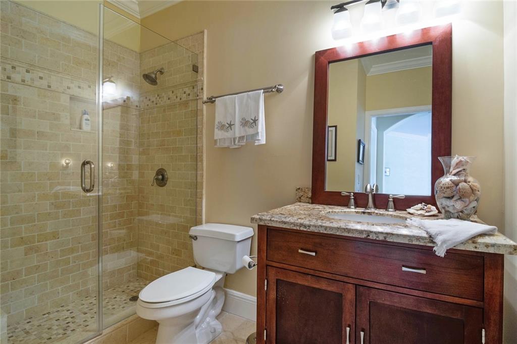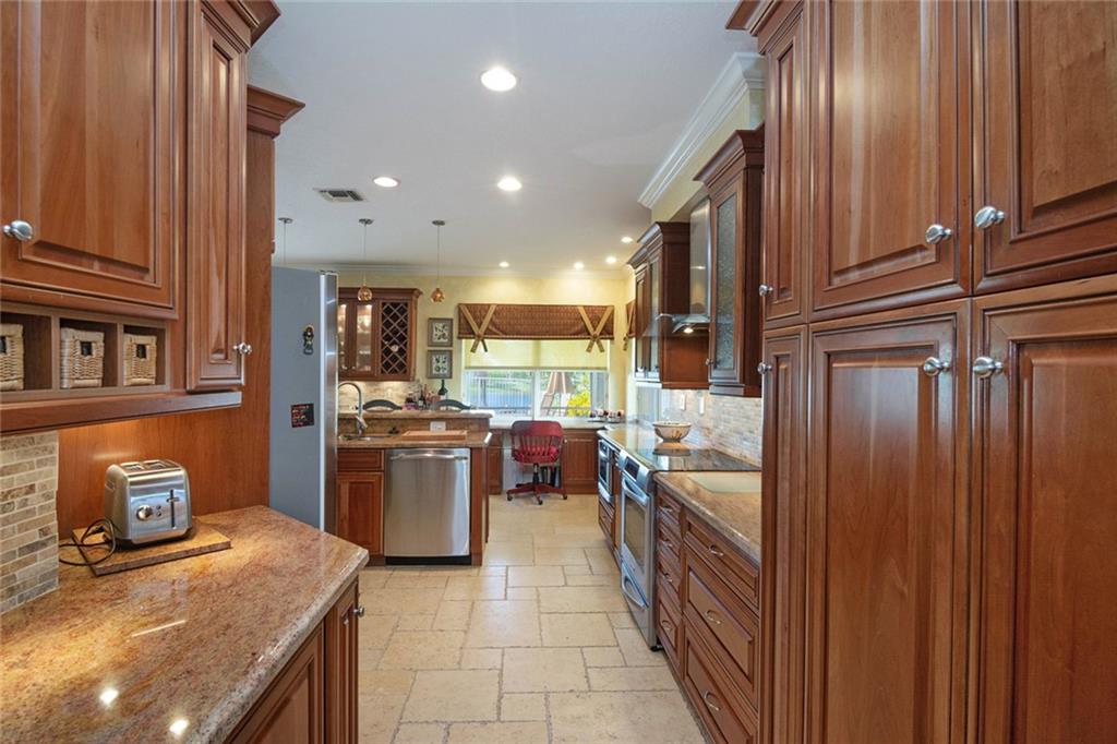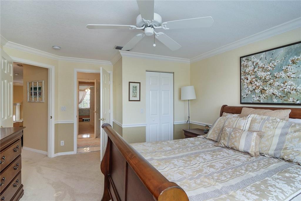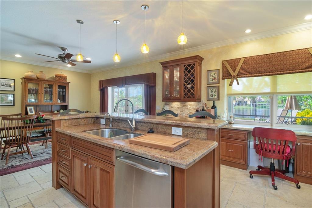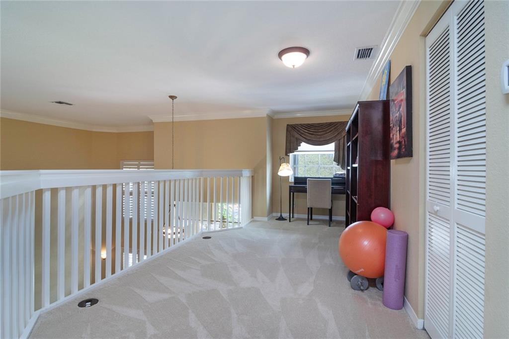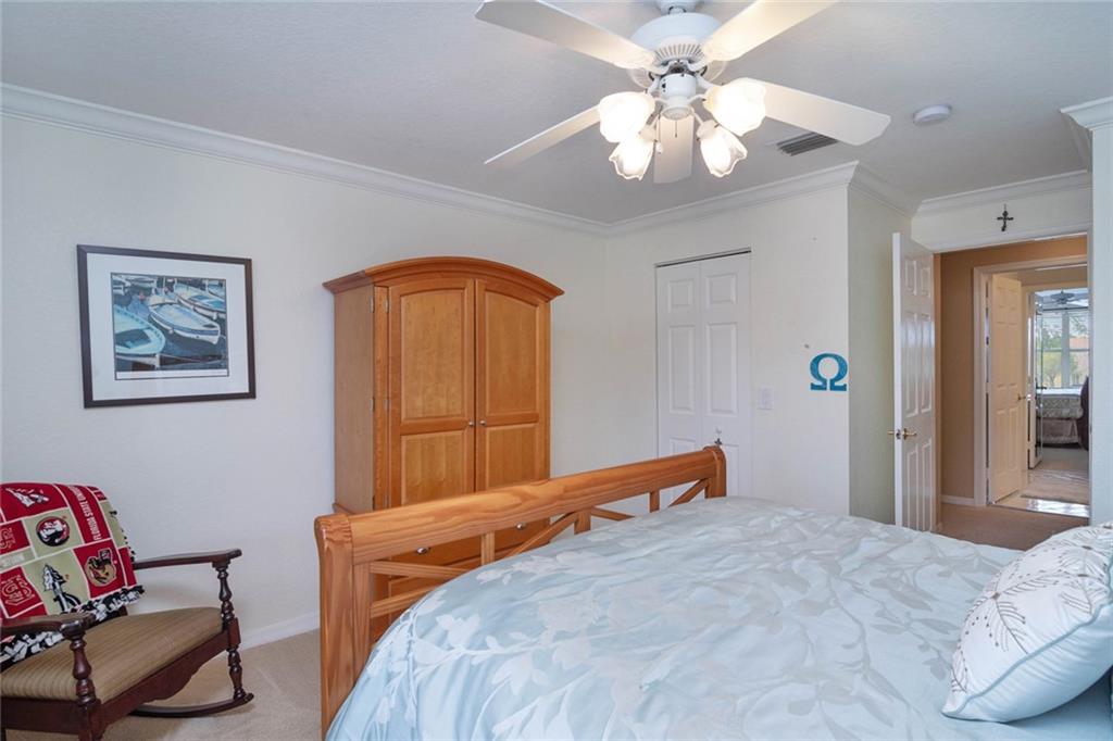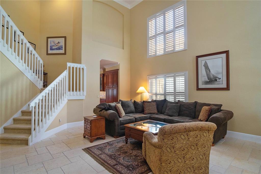 5 Br/3 Bath Pool/Lakefront Ritz Model w/3 car garage. Approx 2900 Sq Ft under A/C. Upgraded & reconfigured kitchen w/plenty of counter/eating space & Stainless Steel appliances. Upgraded marble flooring in main living area. 1 bedroom downstairs (could be Den) w/laminate floors & updated full bath - A perfect guest suite. Crown molding throughout w/volume ceilings. Laundry room w/additional storage. Loft space w/all generous size bedrooms and plenty of closet storage space. Master bedroom with en-suite and large walk in closet. Accordion shutters throughout. WIRED FOR GENERATOR! Screened/Covered patio leads to spacious pool patio-plenty of space for entertaining. Maint incl: Lawn & Sprinklers, Basic Cable-WiFi, Alarm Monitor, 24 hr guard gate, Exercise Rm & Community Pool.