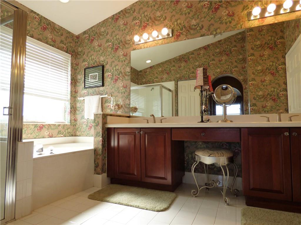 FANTASTIC 1STORY HOME WITH 3BED, 2BATH AND 2CAR GARAGE. WATERFRONT LOT WITH POOL AND ACCESS TO A 43 ACRES WILD PRESERVE LAKE. 24 HRS GUARD GATED COMMUNITY. VERY WELL KEPT, CERAMIC FLOORS IN LIVING AREAS & WOOD FLOORS IN BEDROOMS, UPGRADED KITCHEN CABINETS W/S-STEEL APPLIANCES, RENOVATED BATHROOMS, COLONIAL SHUTTERS, VAULTED CEILINGS, FRENCH DOORS, 1YR OLD A/C, DECORATORS ITEMS IN WALLS & WINDOWS, RAIN GUTTERS & EXTENDED COVERED PATIO AREA WITH TRAVERTINE MARBLE. NICE BACKYARD, FENCED AND WITH VERY PLEASANT VIEWS. SHOWS FANTASTIC, GREAT PROPERTY!