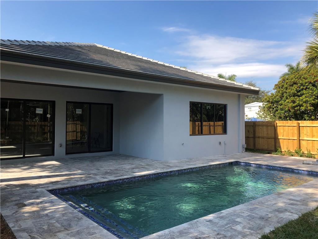 Modern New Construction Home by high-end luxury builder, Scott Douglas Homes. Modern, open single-story design; three spacious bedrooms; two lavish baths including frameless glass and upgraded body spray/shower combo in master; dream kitchen with upgraded Kitchen Aid stainless steel appliances, quartizite countertop with backsplash and custom waterfall, and walk-in pantry; large laundry/utility room; 2-car garage with custom epoxy floor covering; marble pavers; large, private, covered patio off pool; volume 10' ceilings; 8 ft solid doors; walk-in closets; custom cabinetry and hardware; porcelain flooring; pre-wired for smart home technology. Minutes from Brightline highspeed train, airport, & walking distance to downtown Fort Lauderdale's exciting shops and restaurants. Plans attached.