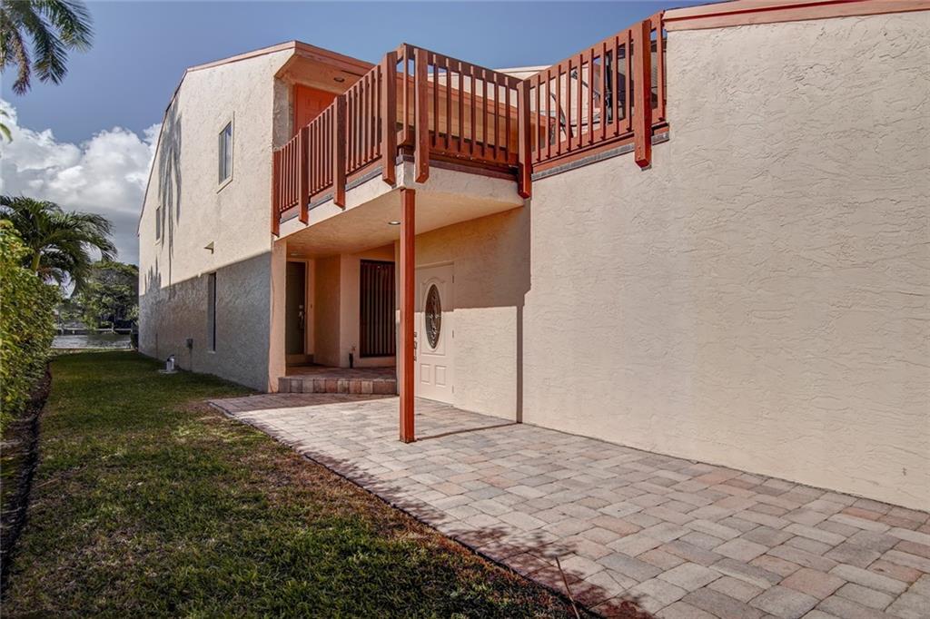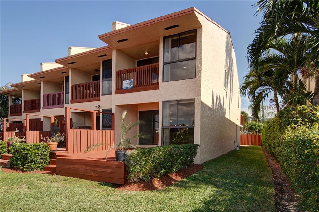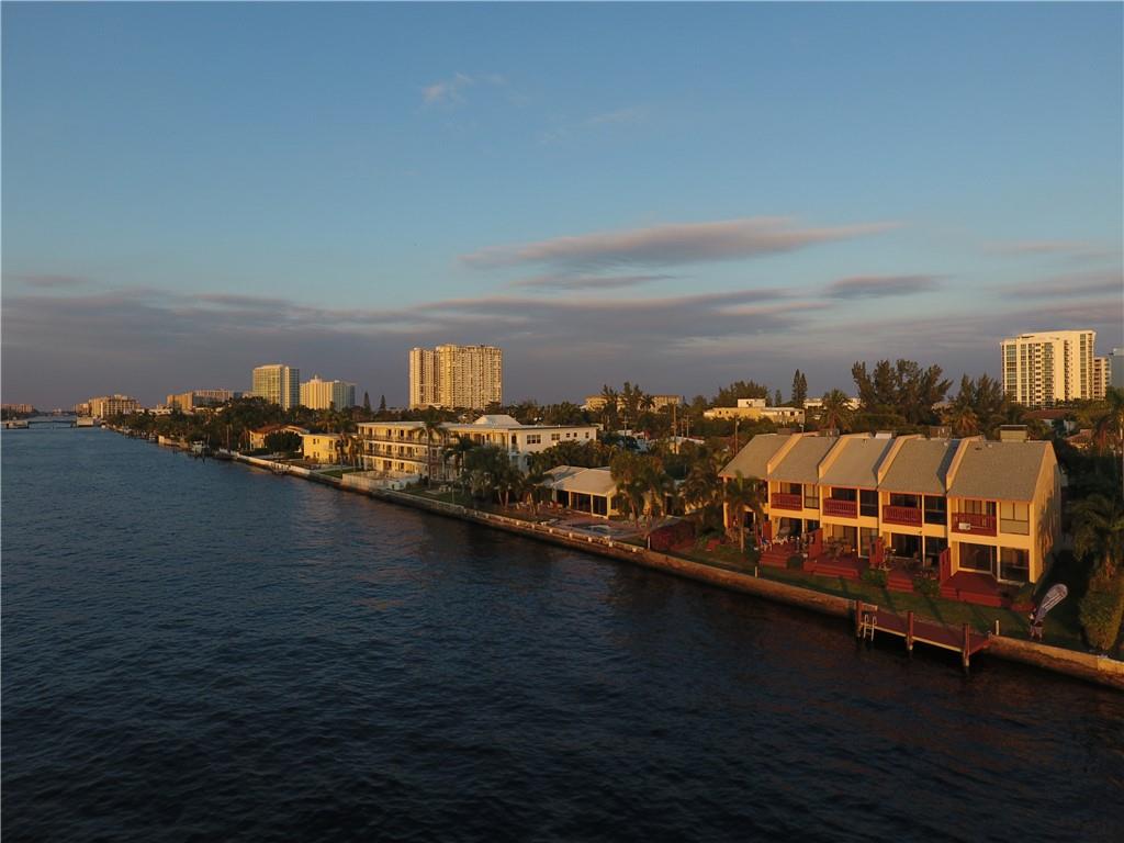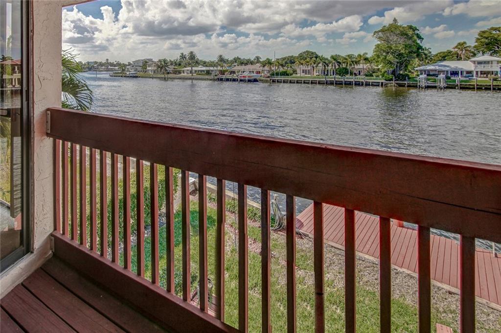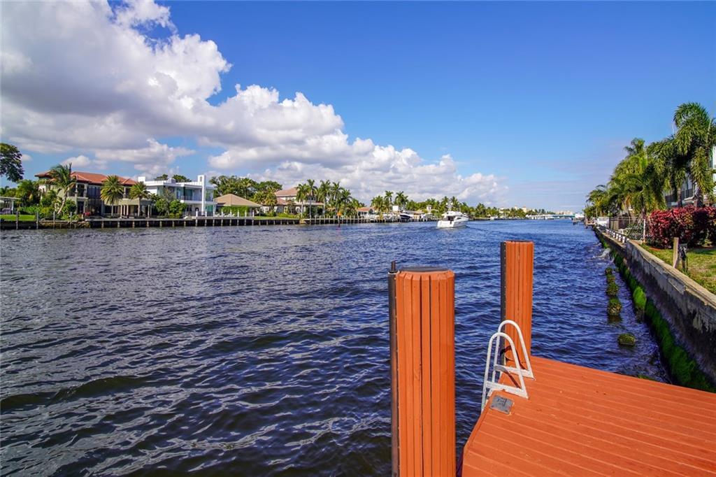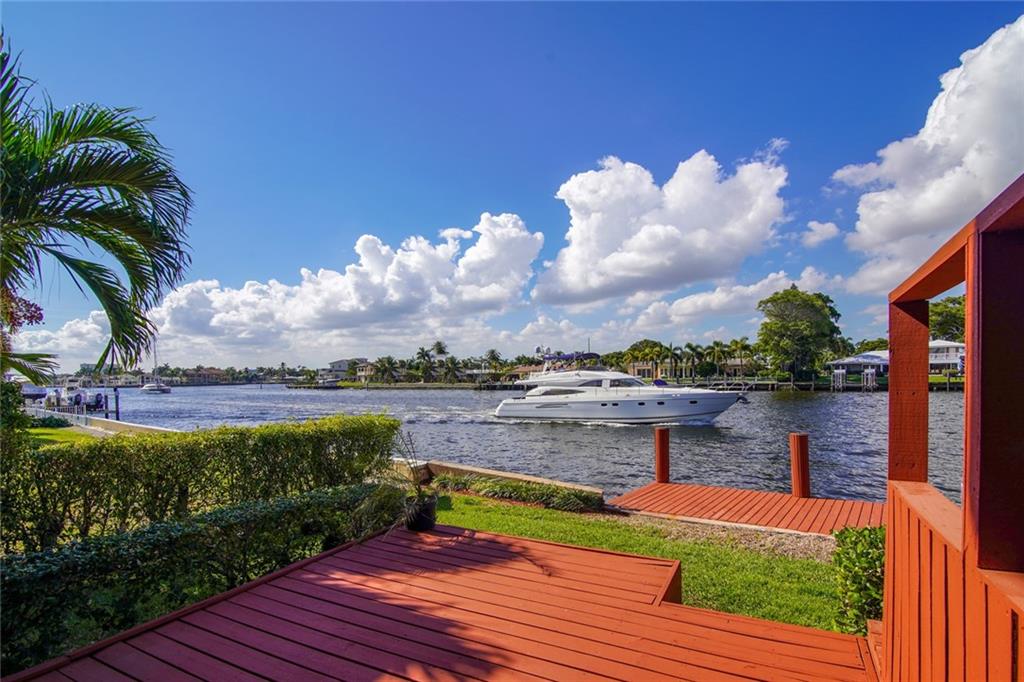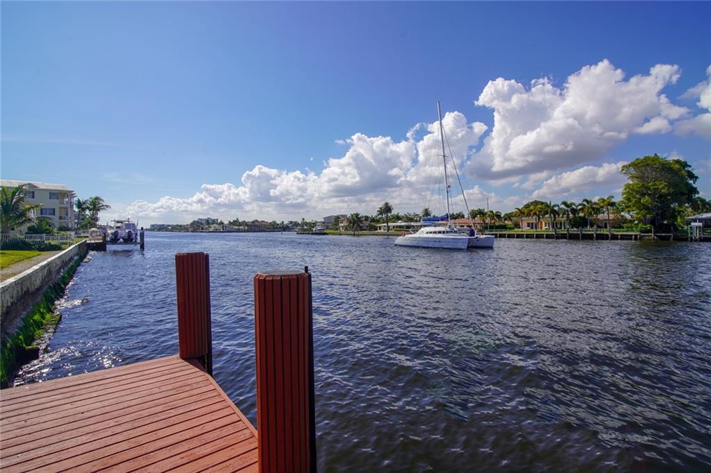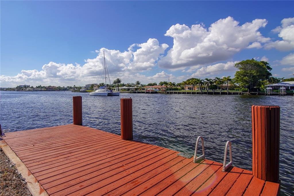 Spectacular direct Intracoastal Front property w/breathtaking Views and Sunsets. A Rare Find!! Tropical Breezes tease you as you enter the Private Paver Courtyard / Gardens, Hinting at the incredible waterfront experience that awaits you. Sparkling Interior w/ polished Floors and Mirrors, and an exciting Gourmet Kitchen w/ Breakfast Bar make you feel as if in a dream. Large Living and Dining Spaces and Wall of Glass reflect the movement of the Intracoastal Waterway. Walk out onto the covered Deck, take in the panoramic views, large Lawn and Dock, perhaps your friends will stop by on their boat later and pick you up... elegant Master suite w/private waterfront Balcony, NEW Modern Bath, X-Large 2nd Bedroom is Grand w/ NEW Modern Bath and Roof Top Terrace. The Best of Florida is Here for you