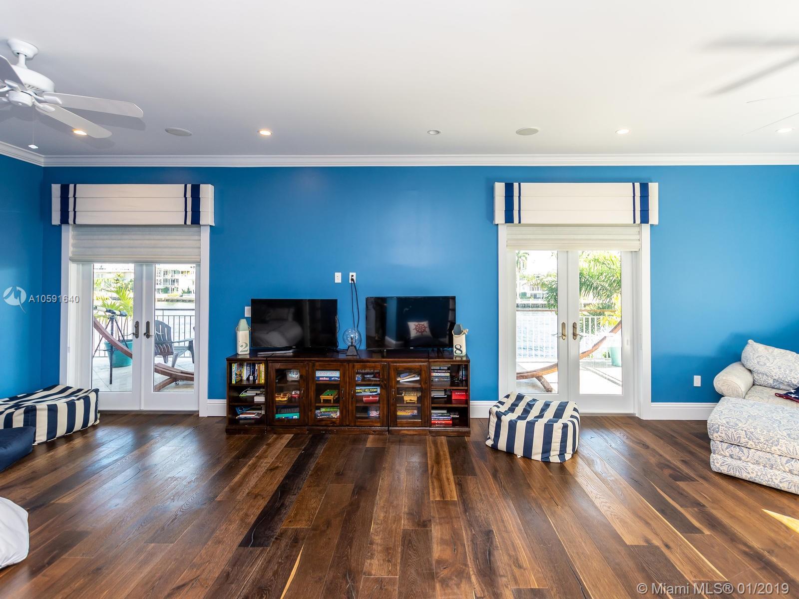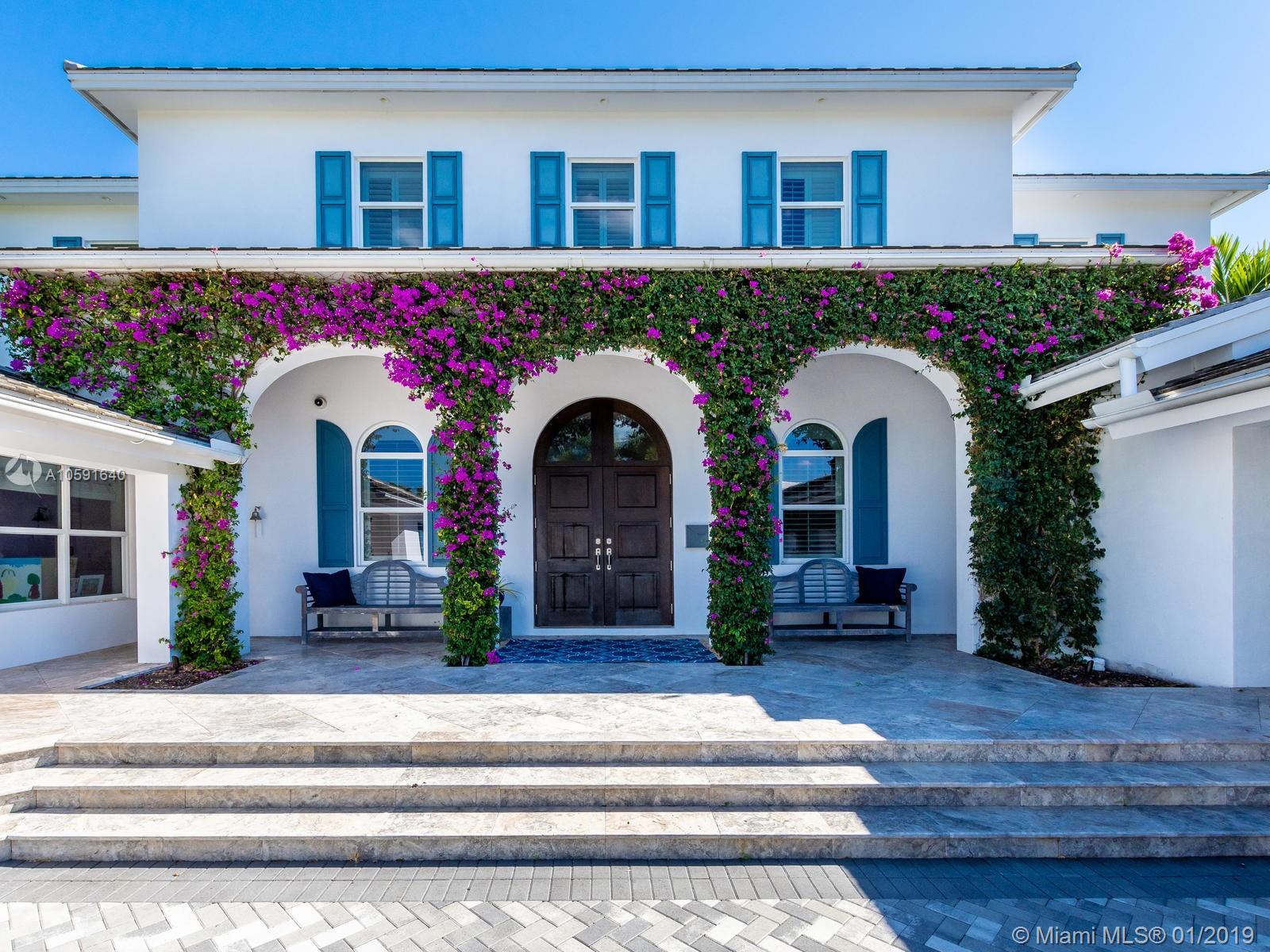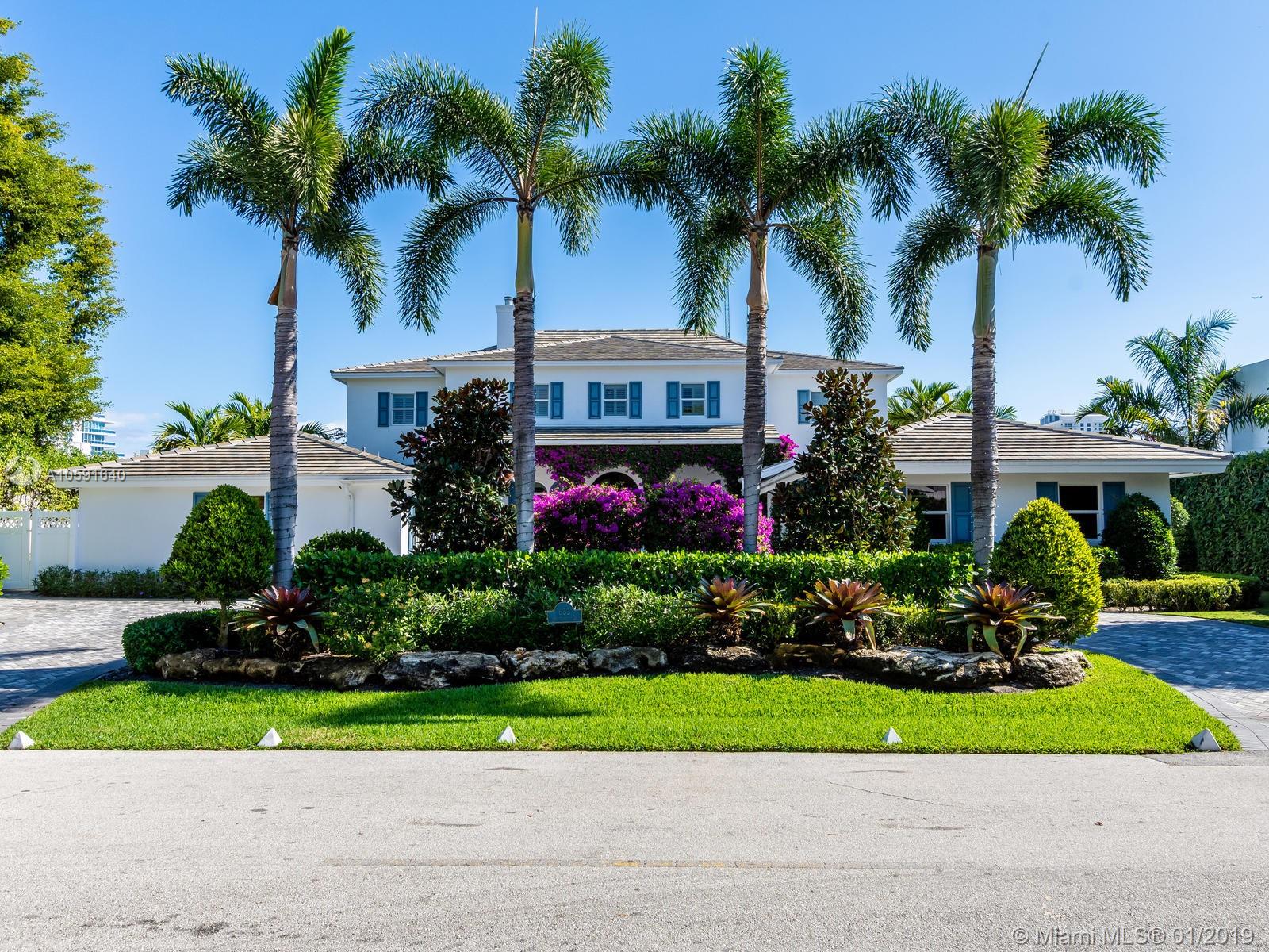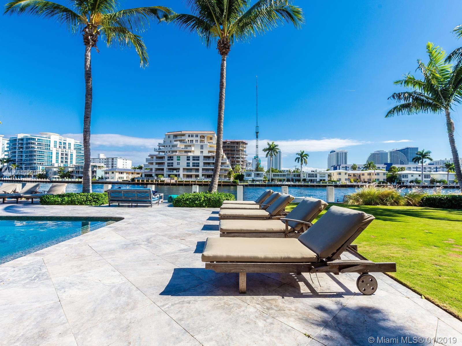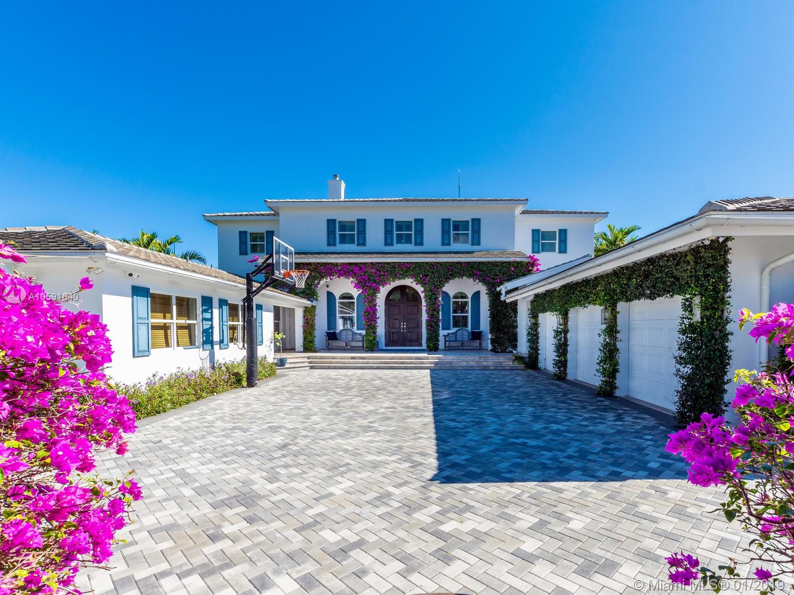 Exudes the feeling of "HOME" the minute you walk into this custom built designer British west indies style home which boasts 100' of Intracoastal Waterway, with an 80'X10' concrete dock. Complete with 6 FULL bathrooms in main house and 1 FULL bathroom in "Mother in Law Suite". Main house has 4 ensuite bedrooms, an office off of the kitchen and mudroom. The 4th bedroom has 2 bathrooms, "the bunk room", is 28'11" X 15' a total of 421.65 sqft designed to be converted into two bedrooms if needed. A wood burning fireplace in the upstairs family room. Custom built-ins. Open floor plan to maximize the Intracoastal Waterway views. Truly a unique home with top of the line kitchen and finishes throughout in the most sought out community in all of Fort Lauderdale, Sunrise Intracoastal.