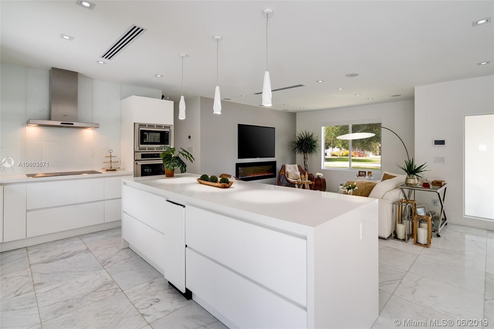 Completely remodeled home in an excellent location south of Coral Gables. Spectacular Kitchen with top of the line finishes and Quartz countertops. Open and spacious living spaces. Fully equipped smart home. It features Marble floors, Thermador appliances, impact windows, 8 foot tall interior doors, electric shades, and much more.