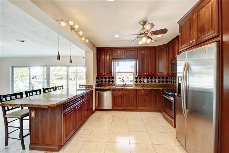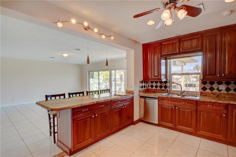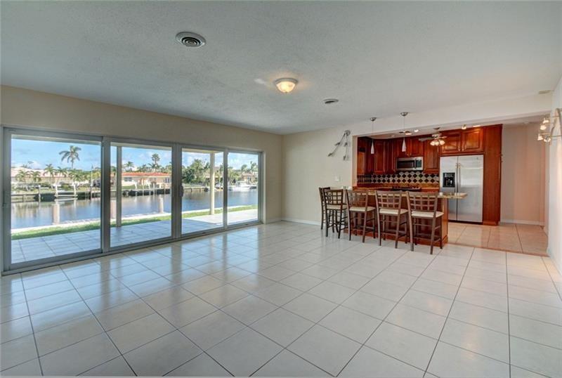 WIDE WATER VIEWS. The best deal for a waterfront home east of US1 in Fort Lauderdale. Two comparable homes on the same street recently sold for $150k higher than this price. Located on a turning basin this spacious waterfront home offers 85 ft of water frontage and lovely wide water views. The home has an updated kitchen with wood cabinetry, granite counters and stainless appliances overlooking the large family room. There is walls of glass across the rear of the home allowing plenty of natural light and picturesque water views. Other benefits include: new sea wall and dock, covered rear patio, interior laundry, tile floors throughout and some impact glass. Ideal location just over a mile to the beach and within walking distance to dining and nightlife.