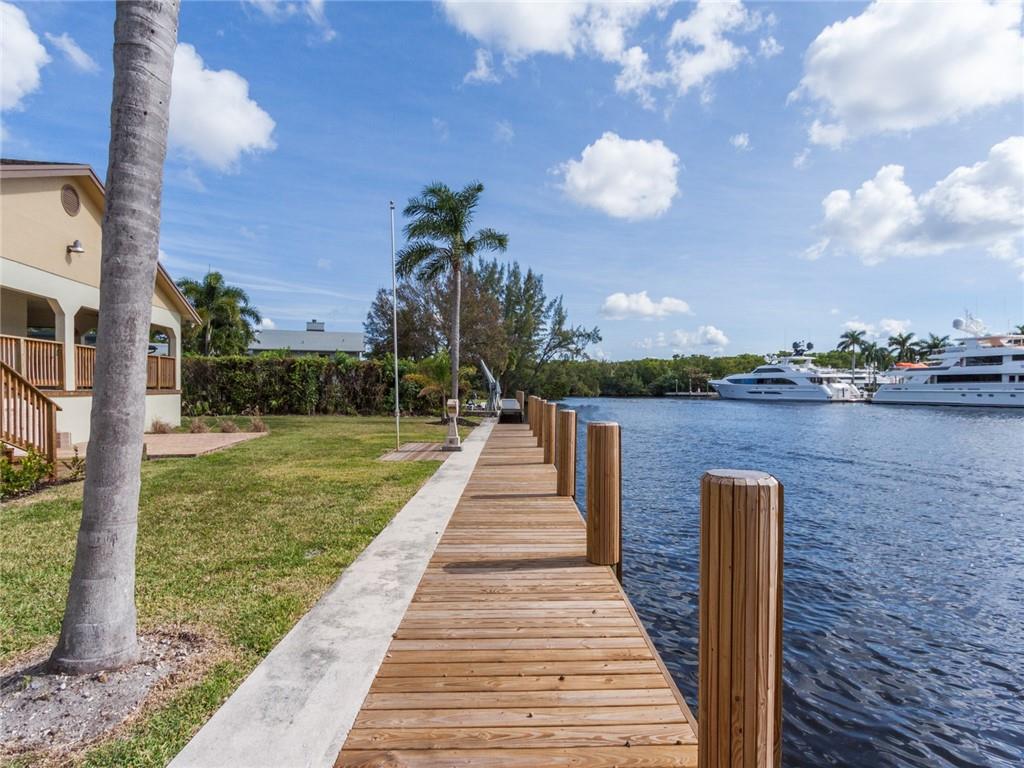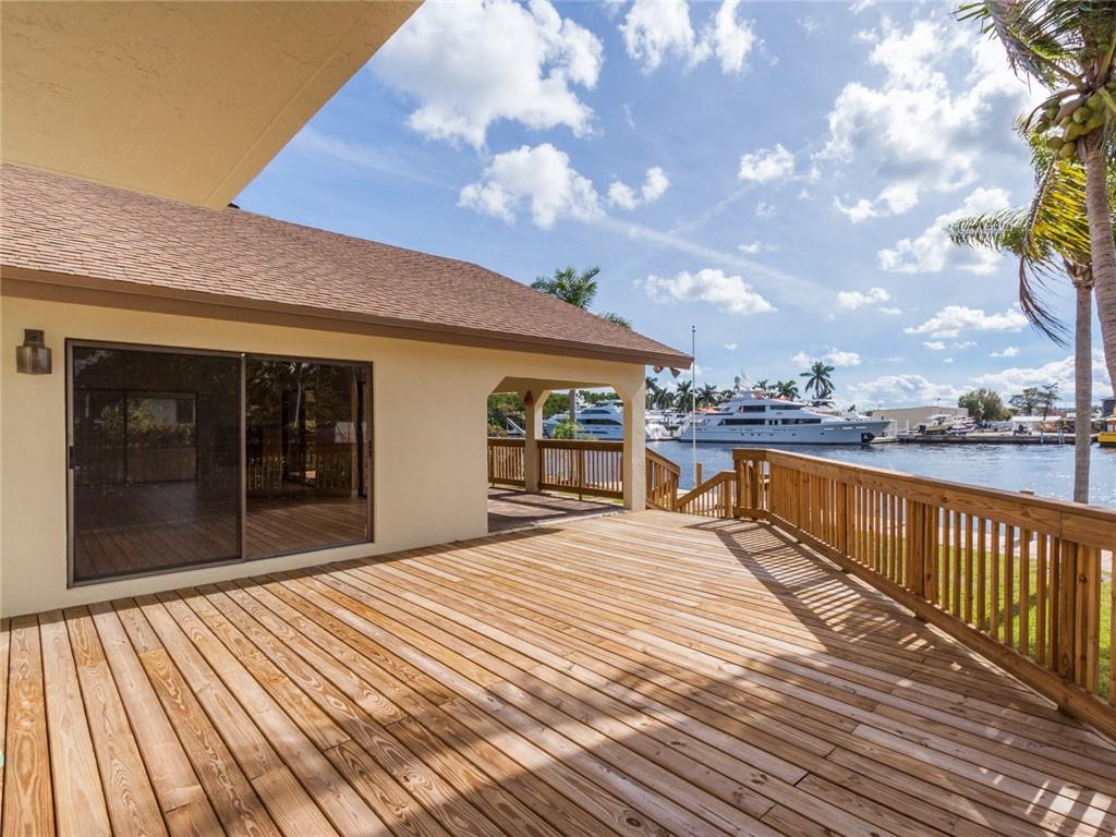 Magnificent two story home with captivating water views and boast 100' of waterfront directly on the New River with deep water dockage and shore power connections. Featuring 17,361 sqft cul-de-sac, 4,083 sq ft , 4 bed/3 bath/ 2 car gar and built above flood level . Living/dining area has a fireplace and water views from every angle, covered porch with summer kitchen perfect for outside dining or watching sunsets. Vaulted ceilings with skylights, gourmet eat-in kitchen with wall oven, and new stainless steel appliances. Spacious bedrooms with walk-in closets and lavish landscaping outside . Additional detached garage great for workshop or studio. Relax with a boat ride down to one of your favorite restaurants in Fort Lauderdale. Ocean access, no fixed bridges. $100k total Price Reduction!