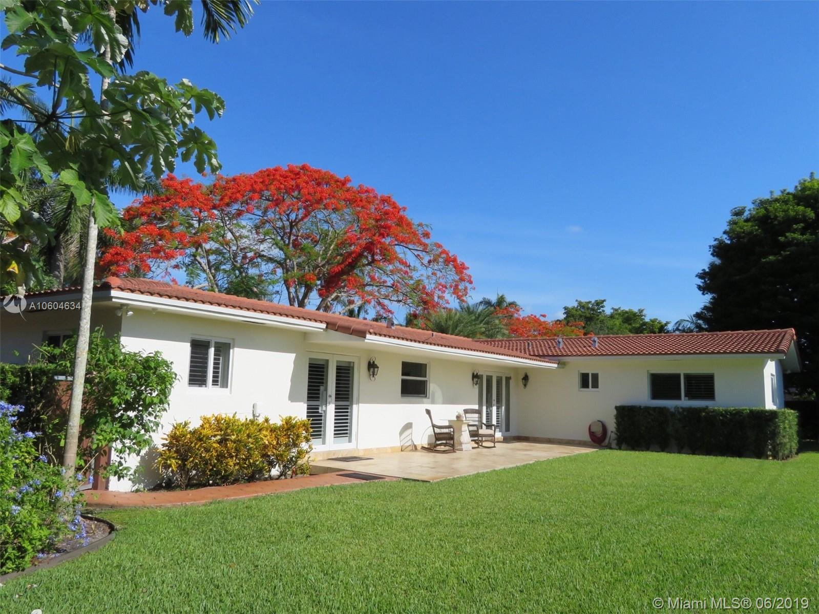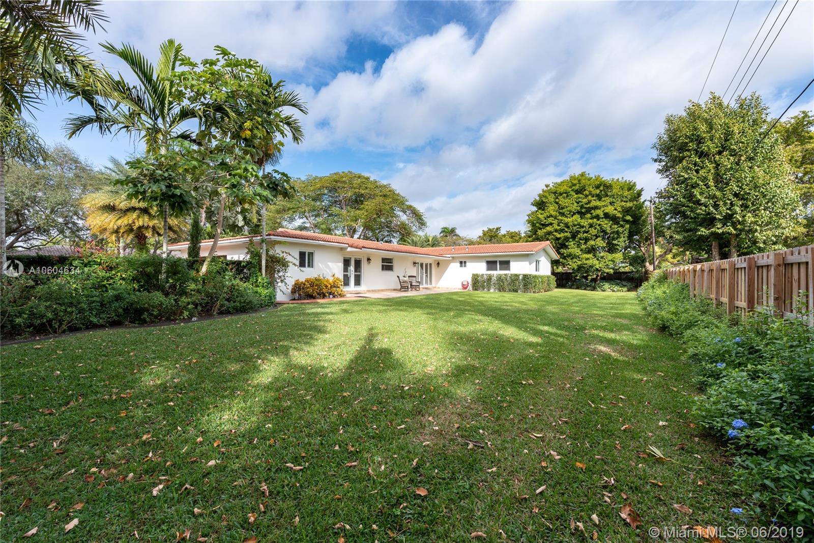 Impeccable, stylish and fully updated residence in North Pinecrest on quiet street!! Located just one block from Coral Pine Park to its south & one block from Royal Palm Tennis Club to its north. This pristine home has 4 bedrooms and 3 bathrooms with 3,103 SF. Featuring stunning marble floors, impact windows/doors, new dual-zone a/c, new alarm system, custom closet systems, built-in Restoration Hardware cabinetry, Plantation Shutters, new solid wood interior doors, sleek Hunter ceiling fans throughout and new roof. Comfortable 2 car garage. Manicured 16,300 SF lot. The oversized backyard offers privacy with new fence and sprinkler system & plenty of room for a pool. Enjoy the relaxing Butterfly Garden. Per Tax Roll the Adjusted SF is 2,645 and the Living SF is 2,303.