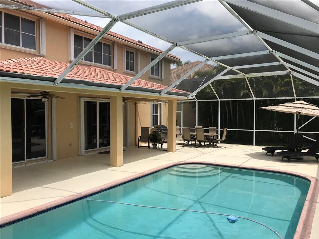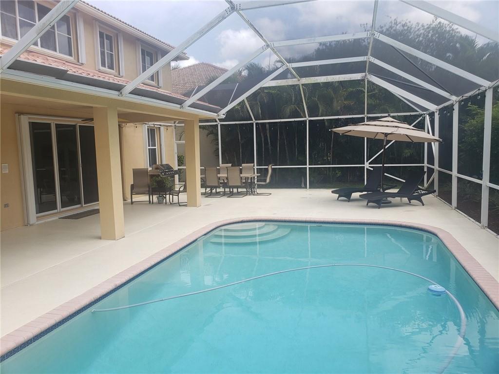 This beautiful 5 bedroom 4 bath is in truly immaculate condition. Pride of ownership, is ready to move in. Formal living and dining room + a huge family room. Among many features this elegant open floor plan offers a media room downstairs that can be converted into a 6th bedroom. Full bathroom downstairs. Spacious kitchen with granite countertop and stainless steel appliances. Master suite has a separate den/office. Walk-in closets custom made. 3 bathrooms beautifully remodeled. Covered patio and heated pool and spa are ready for your enjoyment and entertainment. Accordian shutters, 3 car garage. Guard gated community with pool, playgrounds and plenty of outdoor areas for the family.