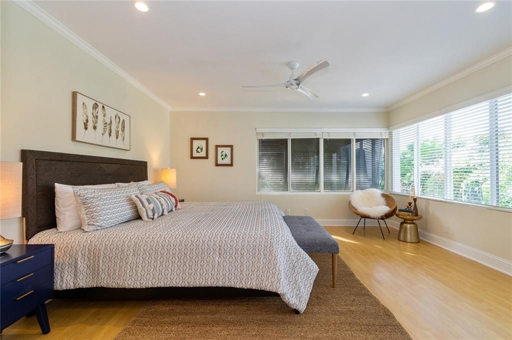 MJUST SEE, MOVE IN READY HOME IN DESIRABLE POINSETTIA HEIGHTS! A single story mid-century modern 2 BR/1 BA home, with the original third bedroom tastefully converted to a dining room, features impeccable renovations throughout. Today's modern finishes with original charm maintained. Top of the line stainless steel appliances in completely expanded kitchen, with open bar to living room, perfect for entertaining. Handcrafted built-in media center/library includes wall mounted SmartTV with no visible wires and custom cedar closets throuhout. MBR boasts sitting/dressing/home office area, with private access to deck and lush gardens. Landscaping is meticulously maintained and creates a private oasis to enjoy year round. SEE IT TODAY, MOVE IN TOMORROW!