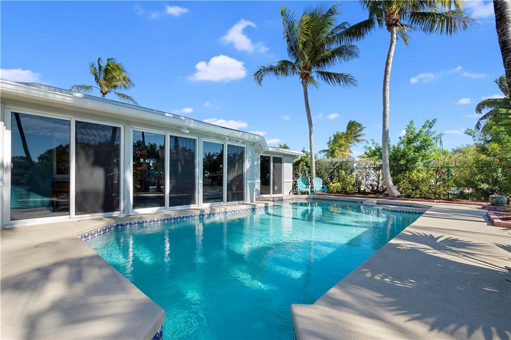 Waterfront Beauty! Lovely four bedroom 3 bathroom pool home offering lots of light with granite island kitchen and stainless appliances and new tankless water heater. Newer impact windows and doors throughout. Florida room looks out over the heated pool to the pristine waterway with dock. Fully fenced yard, bring the dog.