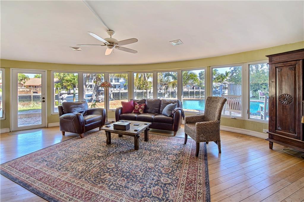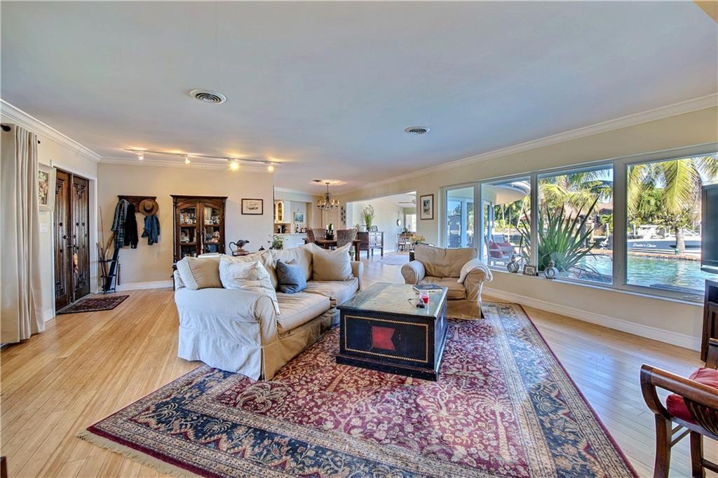 Coral Ridge single story home offering 100' waterfront on a 115' wide canal & deep water. Direct ocean access. No fixed bridges. Home nicely maintained and upgraded including impact windows and new roof. Home has open, informal floorplan for relaxed entertaining & wonderful cross breezes. Nice pool w/ large patio area. Bayview School District. Close to Galleria Mall shops & restaurants and the gorgeous Fort Lauderdale beaches.