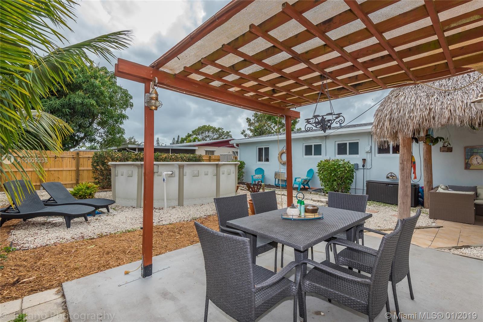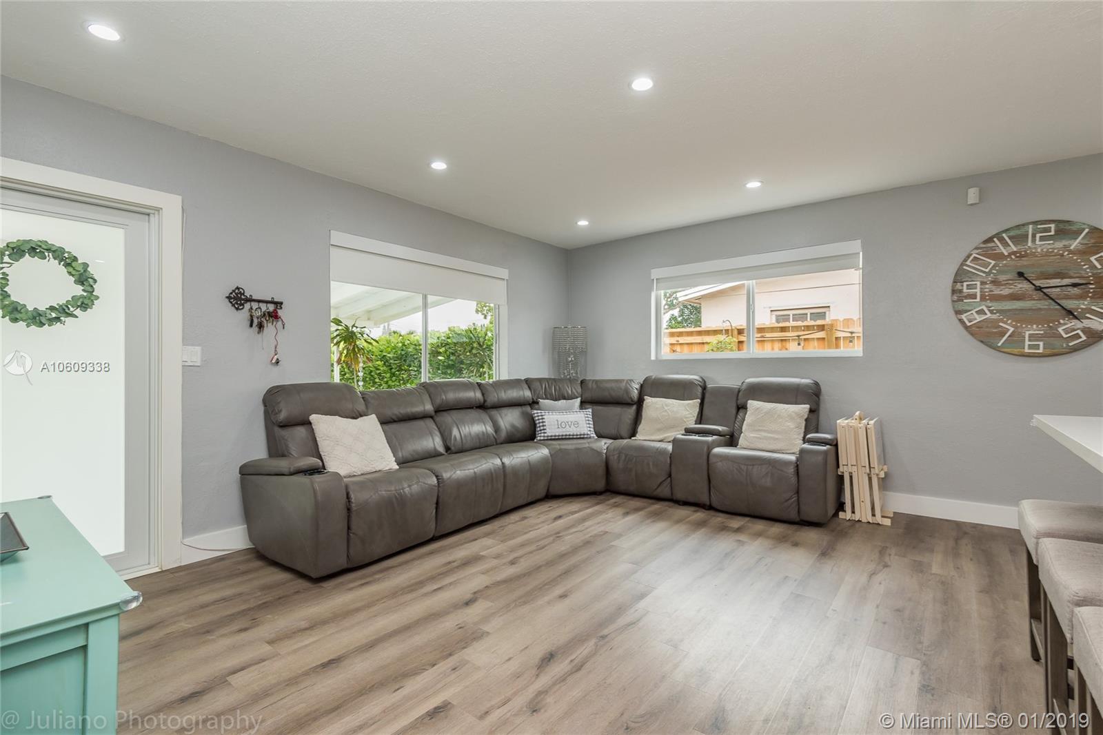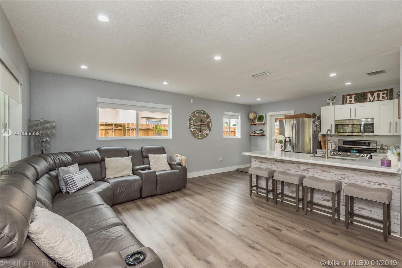 Absolutely spectacular HGTV inspired, remodeled 3 bed 2 bath house in Hollywood. The home features a remodeled kitchen with quartz counters, wood cabinets, and a top of the line stainless steel appliance package. Additional features included are an LG front loading washer and dryer, LED recessed lighting, New Roof, Impact Windows, New A/C, tankless water heater a water filtration system, expanded stamped concrete driveway, and an amazing fenced back yard, perfect for entertaining family and friends. Relax, enjoy and entertain family and friends in your spacious and private back yard with an above ground pool, large Tiki hut as well as additional covered patio area and much, much more.