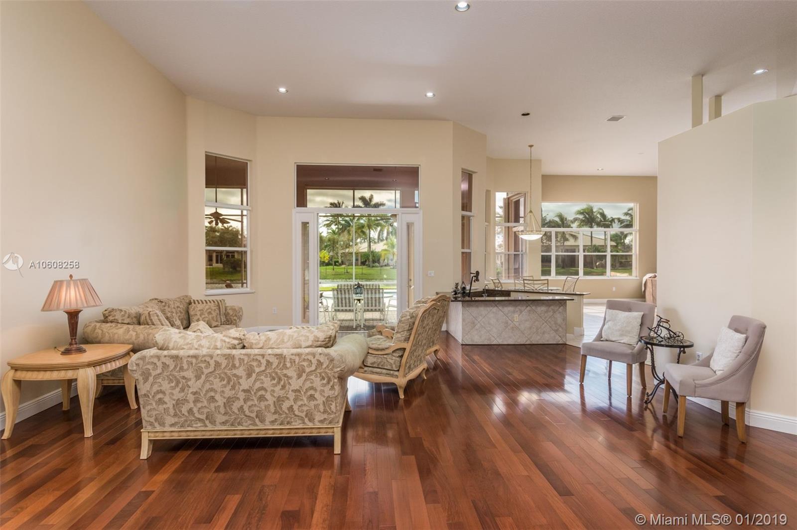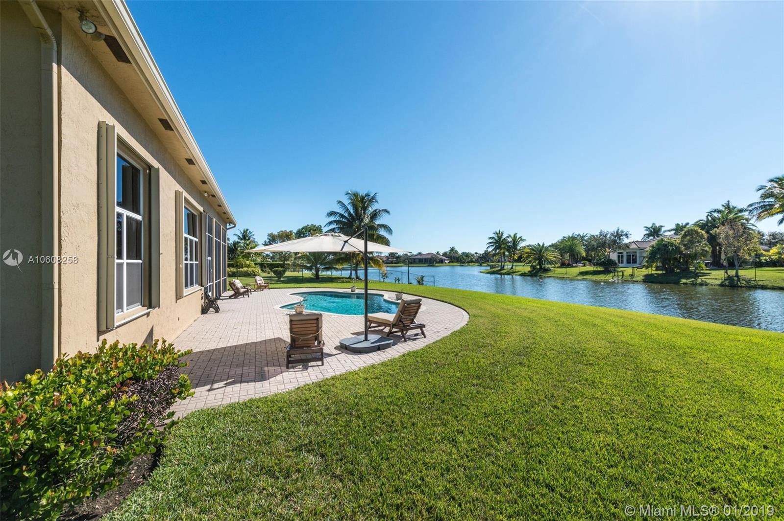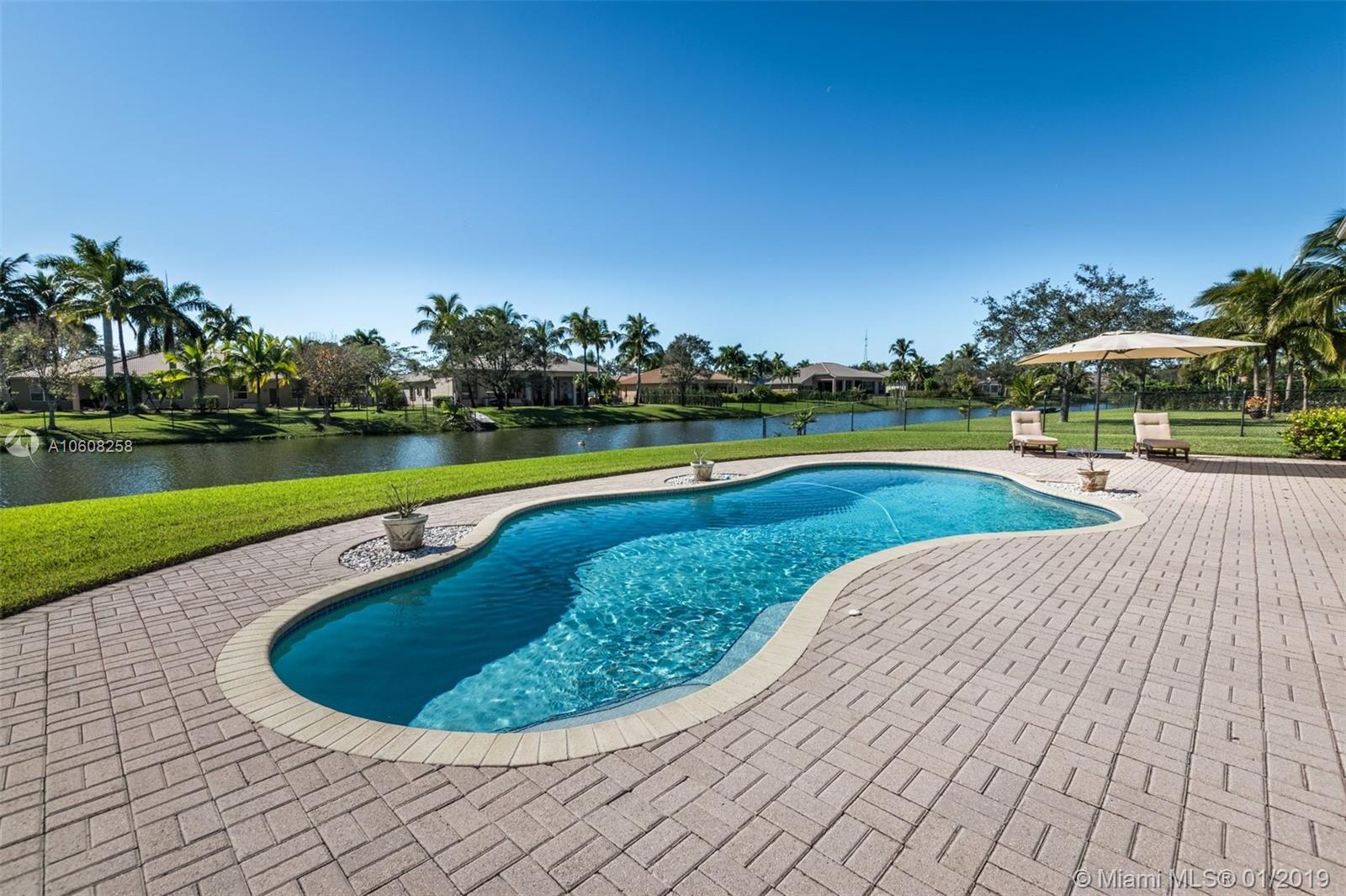 Imagination Farms is a west Davie outstanding community. On the NE corner of I75 and Griffin Rd, major highway access is a huge bonus. "Waterfront Oasis" is situated on a half acre lot. Your family will greatly enjoy this amazing space. Views of water and pool are abundant and breathtaking. Architectural features of the home are 14' and 10' ceilings, 8' door heights, cooper plumbing, an 8 year old roof, 3 HVACs and accordian hurricane shutters. Professional kitchen with double convection ovens, microwave, dishwasher, water filtration and single bowl sink topped with granite. Towering wall unit, 9 ceiling fans, light fixtures, ceiling speakers, intercom, pool equipment, front load washer, dryer and garage openers all remain. Well maintained. Great schools, great community, great home.