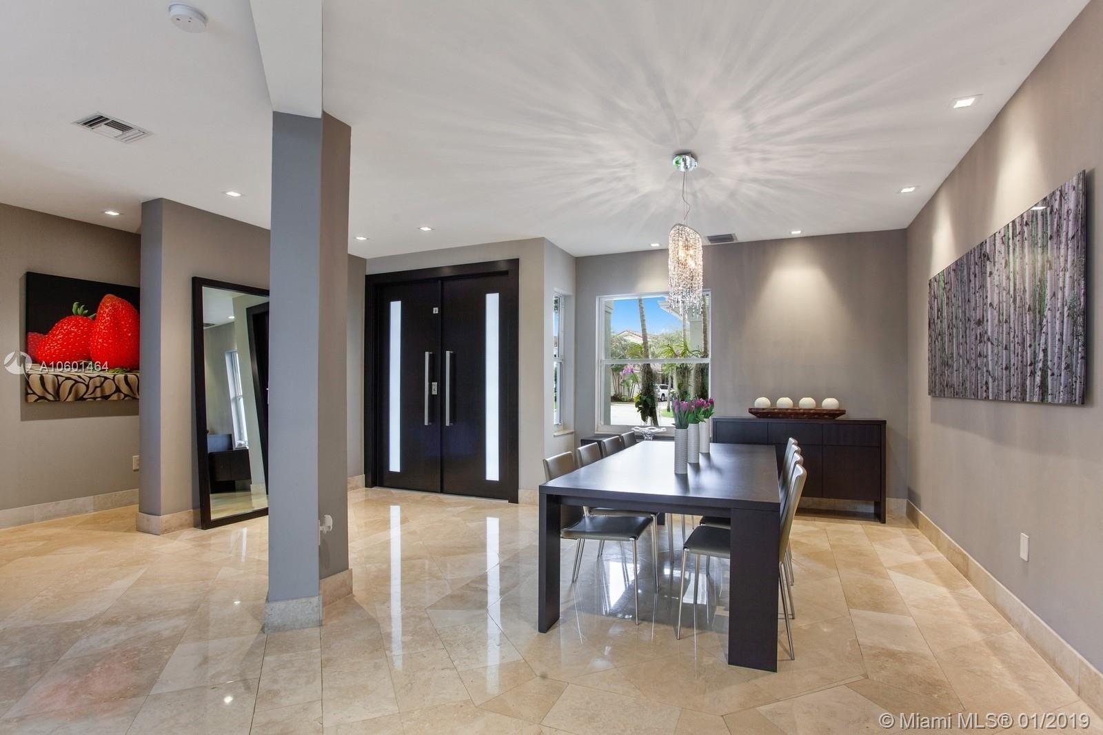 Magnificent contemporary home in Presidential Estates. This home is the Garland model, the most desired floor plan in Presidential, it features 5 bedrooms, plus a beautiful office and large den (4220 SF+). It has been completely remodeled, with marble flooring, custom ceiling plan and gorgeous new glass staircase and doors. All bathrooms are brand new with modern appointments, it has a magnificent new kitchen with top of the line appliances and sound system. The outdoor area is perfect for entertaining with a summer kitchen and beautiful green areas and pool. The home has a renovated laundry room and two car garage and many other amazing details throughout. Begin enjoying the beautiful family lifestyle of Presidential Estates! Close to top rated schools with easy access to I95.