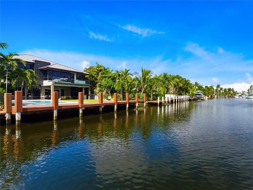 The Hottest House on the Block! Recently built Tropical Modern Waterfront home with stunning architecture and curb appeal. Nestled on a quiet street, yet only steps away from Las Olas! This 6 BR / 5.5 BA, has over 6k sq ft of total space flooded with natural light. Perfect for entertaining family and friends with impeccably curated interiors, Italian porcelain and real hardwood compliment effortlessly, a glass sky bridge floats amid 25' ceilings. Chefs kitchen with Wolf, SubZero, quartz countertops with waterfall edging and custom cabinetry. One-of-a-kind master suite with a closet to die for, pocketed glass walls provide seamless indoor/outdoor living, huge loggia with summer kitchen and a Real backyard! Relax in the heated, saltwater, LED-lit pool and spa...but hurry, Priced to Sell!