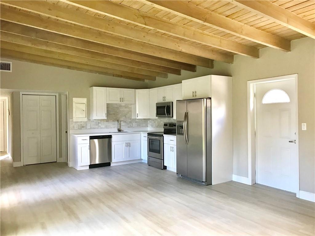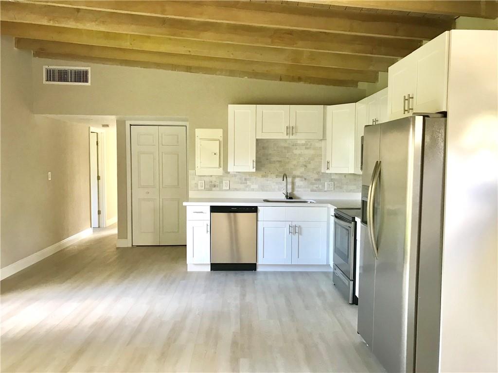 This beautiful totally upgraded house located in the heart of Riverland features a great floorplan layout entry with high beam wood ceilings. Custom made open kitchen with quartz countertops and stainless steel appliances opens to a living dining area with a loft concept feel. 3 bedrooms 2 full baths. Interior is brand new and to perfection. Wood floors throughout. French doors & windows allow lots of natural light. Huge fenced in private backyard with room for a pool. No HOAs. No restrictions. Clean & quiet street. Plenty of parking space. Bring your boat/RV. Covered parking. Close to major highways. New landscaping. This home wont last !!