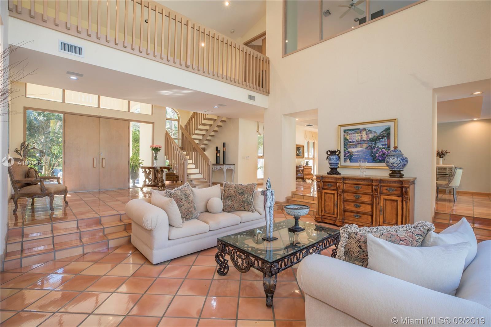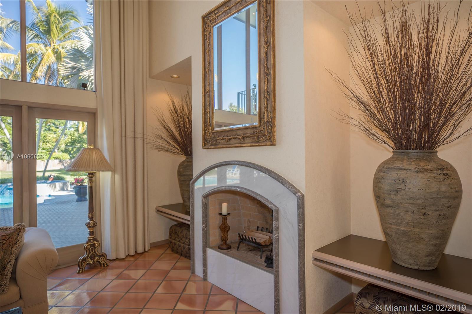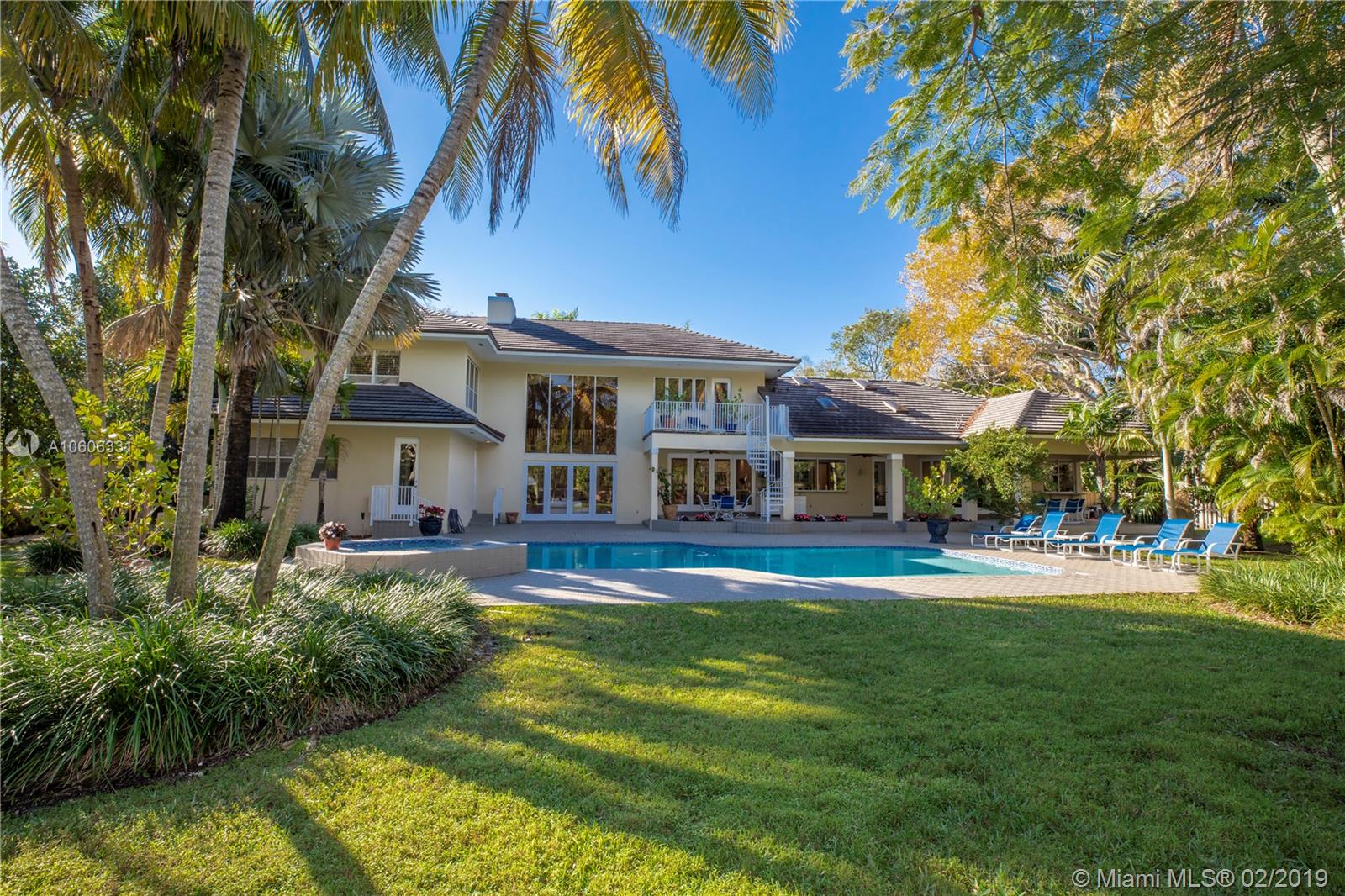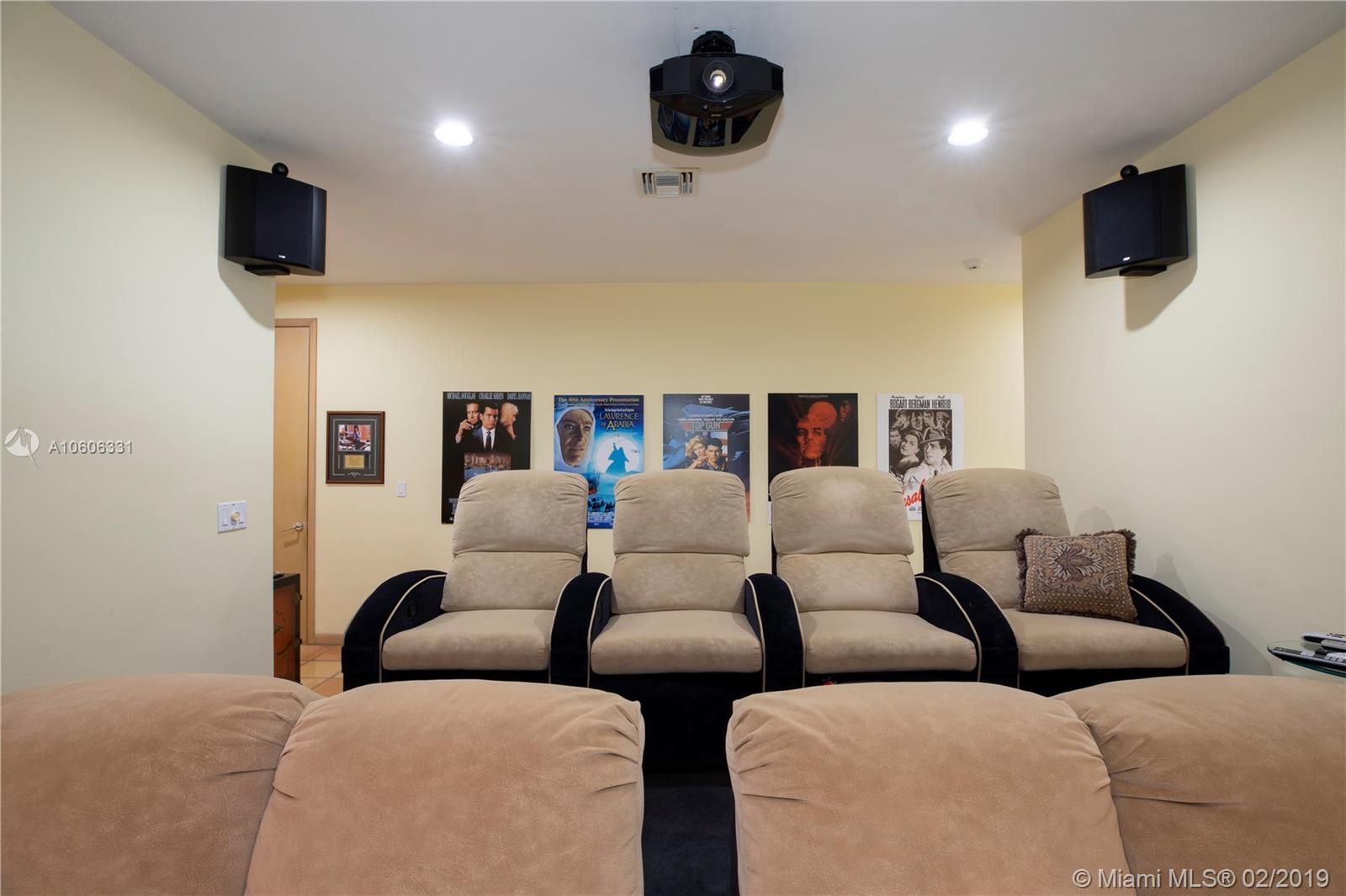 Welcome home to North Pinecrest! Valuable location on quiet street. Pinecrest schools and parks. Custom built in 1990, first time on the market. Walk into the foyer and formal living room, and view the patio, pool and yard through the incredible two-story wall of windows. Room for tennis court on 1+ acre. Spacious home offers 6,236 sq. ft. living area. 4 en-suite bedrooms (theater could be 5th) including a maid's/guest room. Private master suite with sitting area, large master bath, 2 walk-in closets, whirlpool bath. 8' door height throughout home. Sunny kitchen with huge island and breakfast nook. Special features include custom marble fireplace, bright office or library w/ 1/2 bath and private terrace, great family room w/ wet bar, 3-car garage, and 8-seat theater room. A must-see!