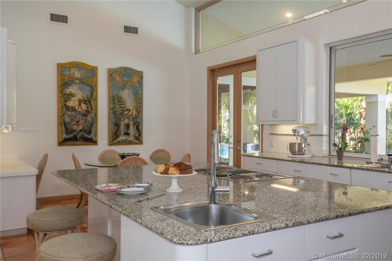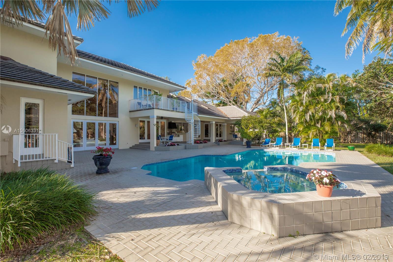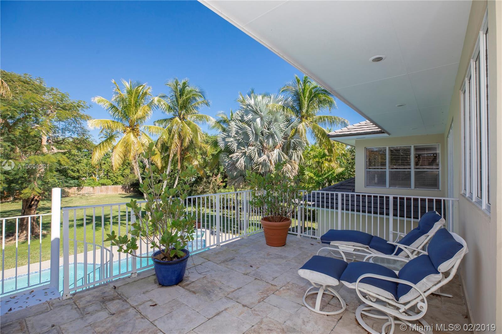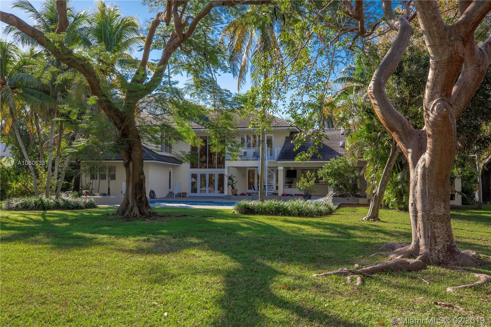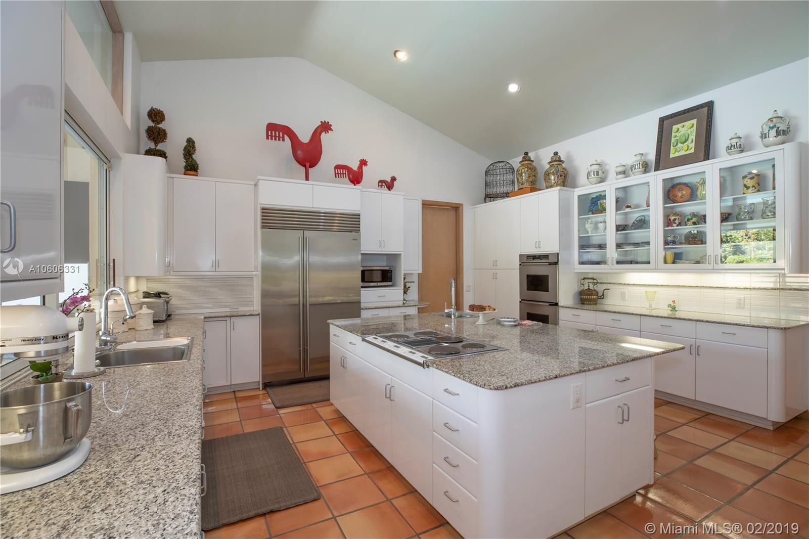 Welcome home to North Pinecrest! Valuable location on quiet street. Pinecrest schools and parks. Custom built in 1990, first time on the market. Walk into the foyer and formal living room, and view the patio, pool and yard through the incredible two-story wall of windows. Room for tennis court on 1+ acre. Spacious home offers 6,236 sq. ft. living area. 4 en-suite bedrooms (theater could be 5th) including a maid's/guest room. Private master suite with sitting area, large master bath, 2 walk-in closets, whirlpool bath. 8' door height throughout home. Sunny kitchen with huge island and breakfast nook. Special features include custom marble fireplace, bright office or library w/ 1/2 bath and private terrace, great family room w/ wet bar, 3-car garage, and 8-seat theater room. A must-see!