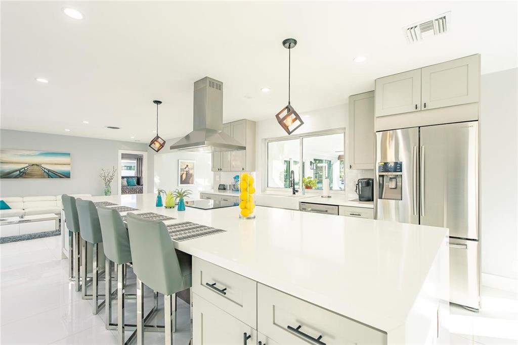 Imagine living in this spectacular waterfront pool home w/a drop dead view looking straight down a wide canal in a friendly, neighborly & quiet part of prestigious Imperial Point. This home has upgrades galore w/a fully-equipped gourmet chef SS kitchen & a gigantic quartz island perfect for entertaining friends & family. There are 2 luxurious bathrooms, cement tile roof, new electrical & plumbing, impact windows/doors, new HVAC system, irrigation system, surveillance, custom closets throughout & a 2-car garage. Beautifully landscaped w/a private backyard opening up to an expansive, breathtaking solar heated saltwater pool & peaceful intersecting canal water views. Dock your boat at home. Watch beautiful evening sunset views. This is a one-of-a-kind residence. Bring your fussiest buyers.