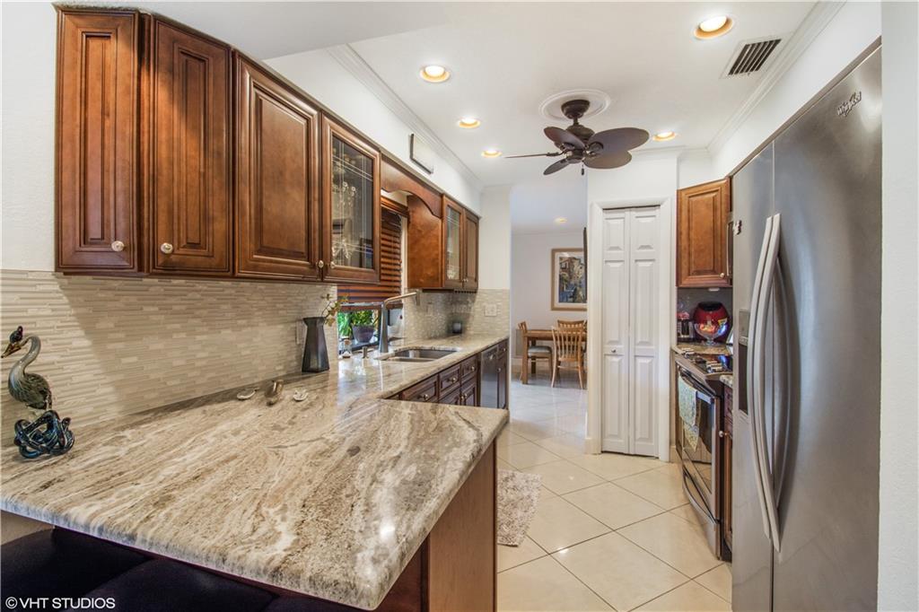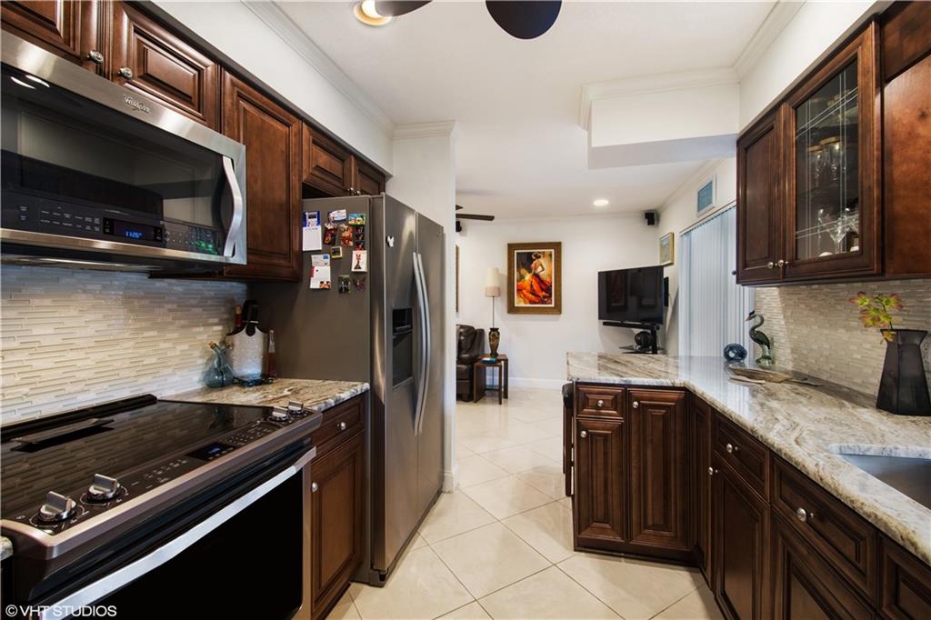 If you have a buyer that wants to move in and have to do nothing but relax by their new resort style pool then this might just be their new home. This 3/2 pool home with a spacious garage will pleasantly surprise you from the minute you drive up and see the curb appeal which invites you to want to come inside to see more. Walk in to see the pride of ownership everywhere. Love how modern the home looks and feels with the living and dining areas open and bright. Walk around to either side of the amazing kitchen to find double sliders that open up to a large covered and screened outdoor living space perfect for entertaining. If the house has not won you over yet, step out to one of the best backyard pool areas in town. Beautiful new chef's kitchen with views of the pool and outdoor beauty.