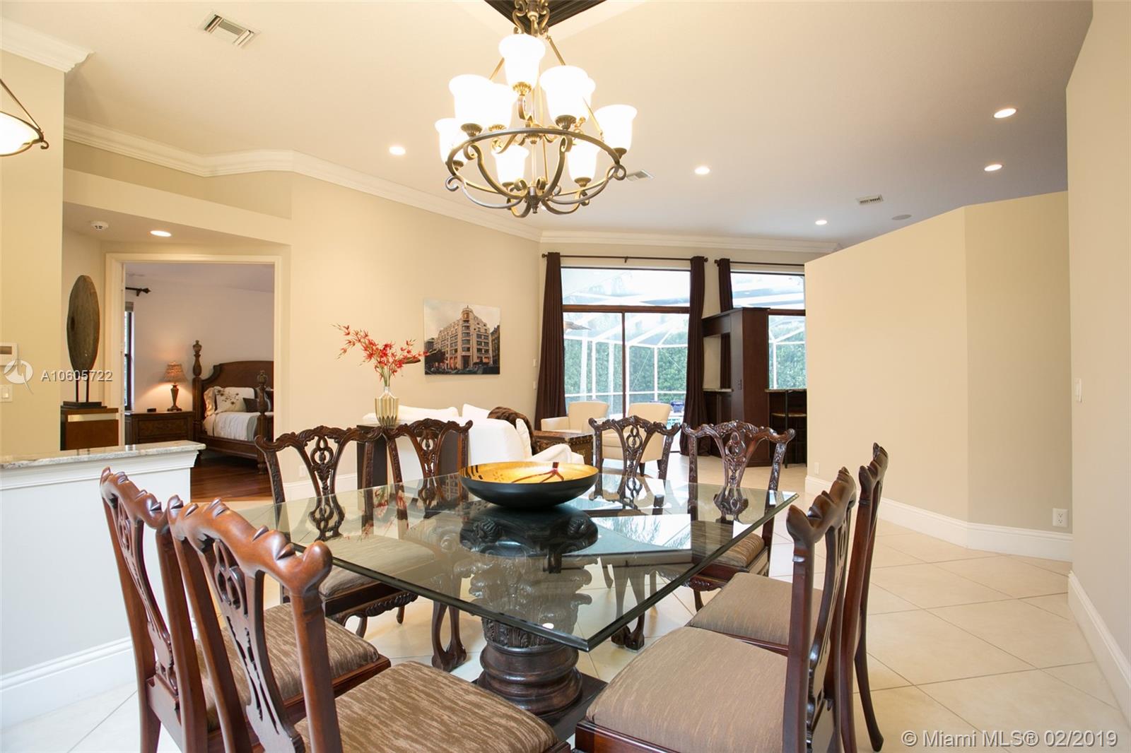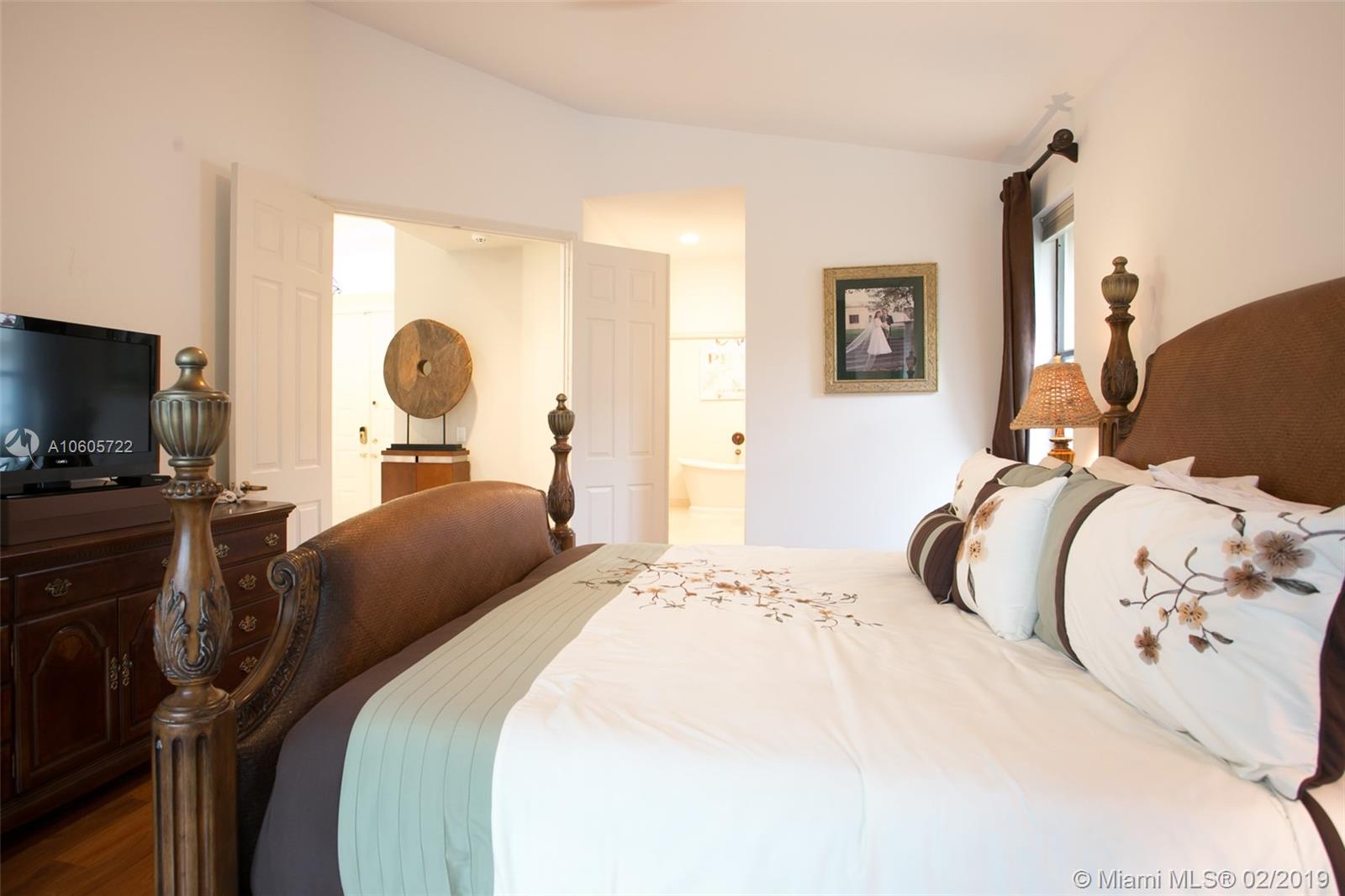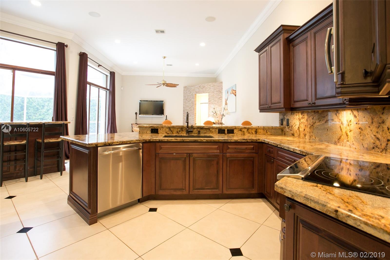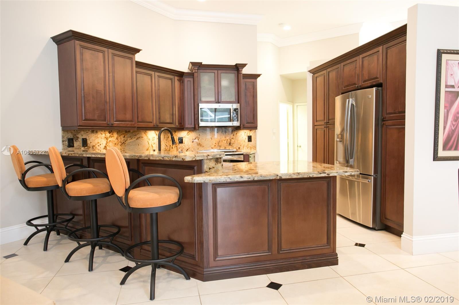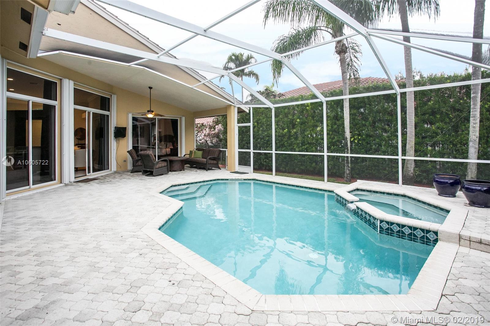 Move in Ready! Set in Weston Hills Country Club, this stunning 4 bedroom 3 bathroom home features a sparkling screened pool, raised spa and paver patio, perfect for enjoying Florida outdoor living! The yard is fully fenced and lushly landscaped for complete privacy! Updated kitchen boasts detailed custom wood cabinets, stainless steel appliances and unique granite counter tops. Tastefully remodeled master bathroom has custom wood cabinets, lighted onyx counters, slipper tub marble tile and flooring. Large neutral tile in living areas and wood flooring in bedrooms. Interior is freshly painted. Impact front windows, accordion shutters and new garage door for hurricane protection. Furnishings available!