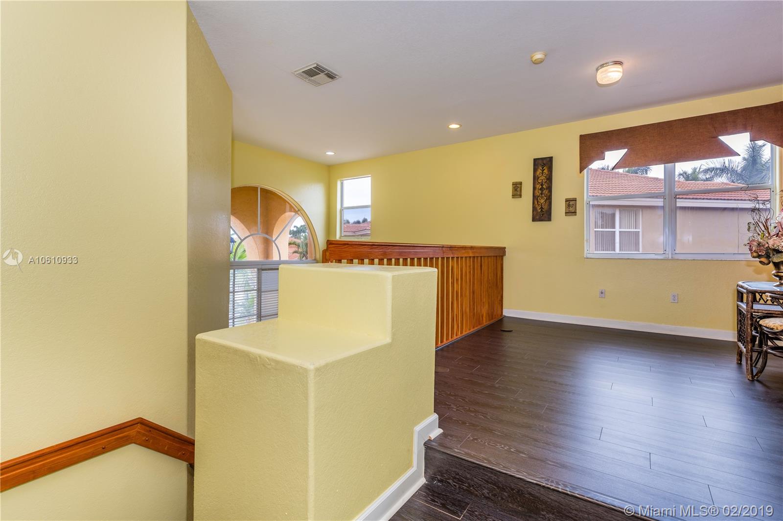 HUGE home ready and waiting for buyer who needs some space! 5 BIG bedrooms PLUS loft PLUS master sitting room. Natural lighting from soaring 20 ft ceilings and abundant windows. Open layout of family room and kitchen, formal dining and elegant living room provide lots of opportunity for entertaining and family gatherings. Bedroom and full bath downstairs, perfect for in-law quarters. Beautiful laminate floors upstairs. Loft can be used as kids family room, office or playroom. Master retreat includes bedroom with sitting area AND sitting room. Enjoy morning coffee or stargazing from the open balcony. Covered patio and GIGANTIC 11,759 back yard. Plenty of room for pool, sports and garden. Lovely gated community with community pool/spa. 3 car garage and hurricane panels.