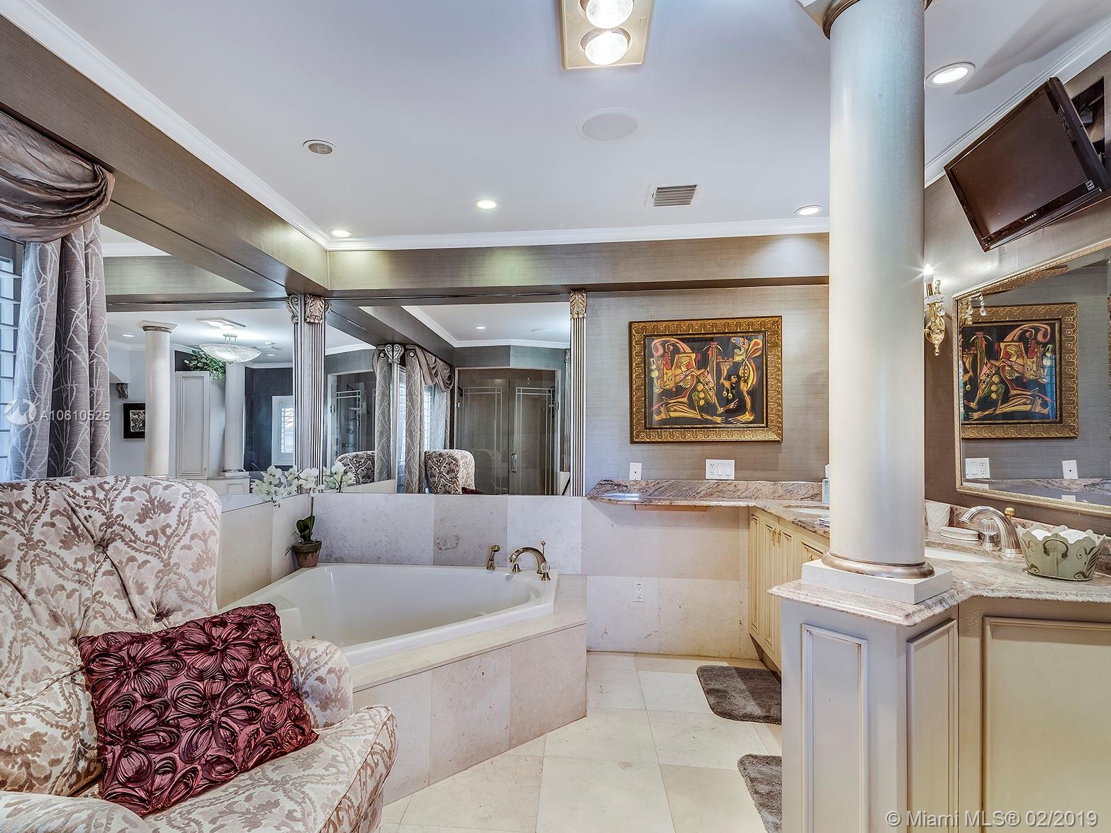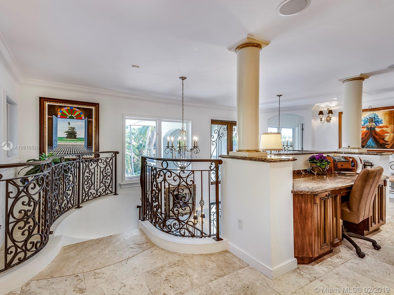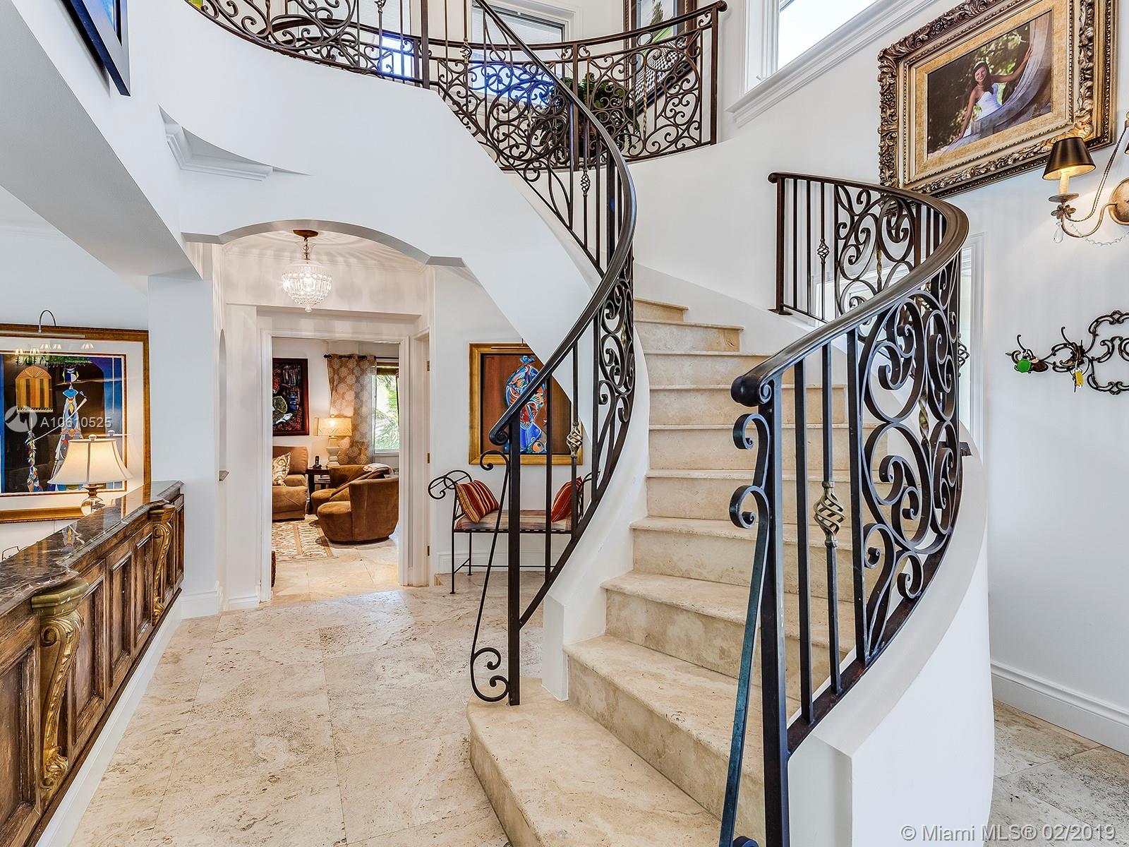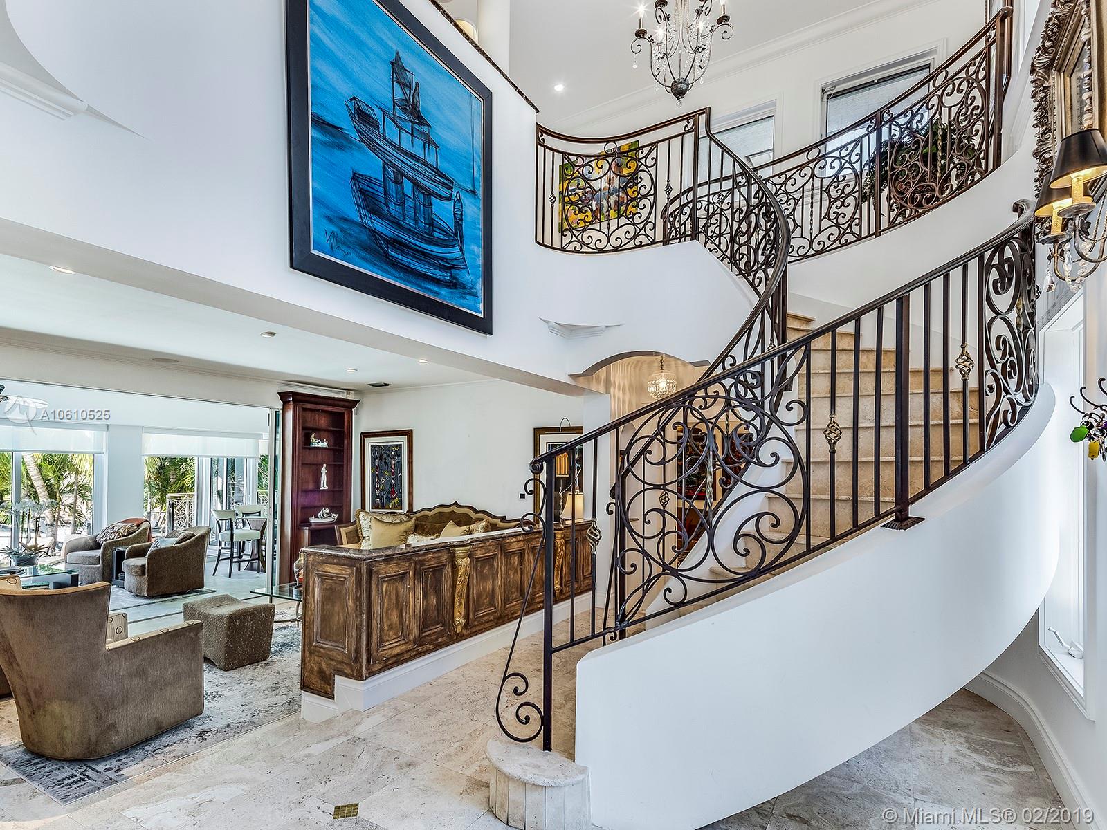 Mediterranean inspired Two story Waterfront Estate home with ocean access and no bridges to the bay with great curb appeal in guard gated community. Spacious luxury home with plenty of room for the serious entertainer! Multiple living areas accommodate a large family. This Gables Residence offers a dramatic stairway, elegant finishes, custom crafted carpentry, commercial grade appliances and impressive ironwork among other amenities. Classic features abound throughout this elegant masterpiece with bonus well thought out spaces. Enclosed Solarium brings the outside in with floor to ceiling glass and spectacular views. Don't miss out on this beauty! lol