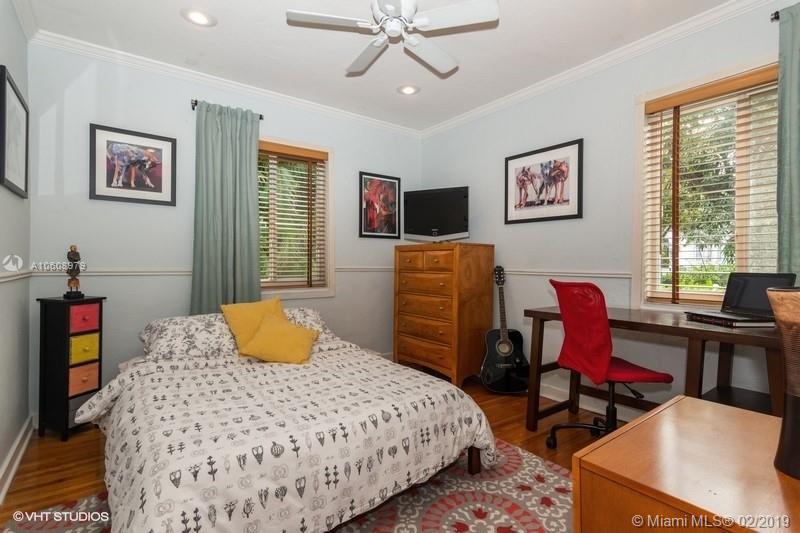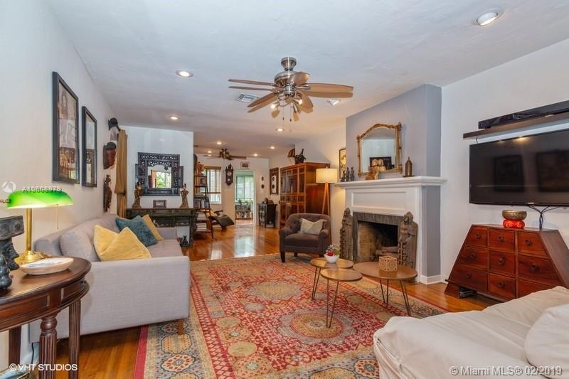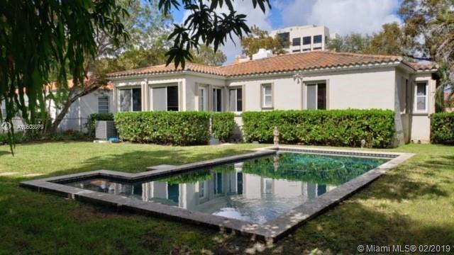 Location and Charm. Fantastic opportunity to live on a quiet tree-lined street in walking distance to downtown Coral Gables restaurants, shops, Country Clubs & more. 1940's home on 8250 SF lot, with new saline pool, all new plumbing, beautiful spacious yard, hardwood floors, & wood burning fireplace. Great one story floor plan, with separate dining room & family room, and plenty of space for an addition if desired. Enjoy the Gables at an affordable price and walk to dinner without the hassle of parking!