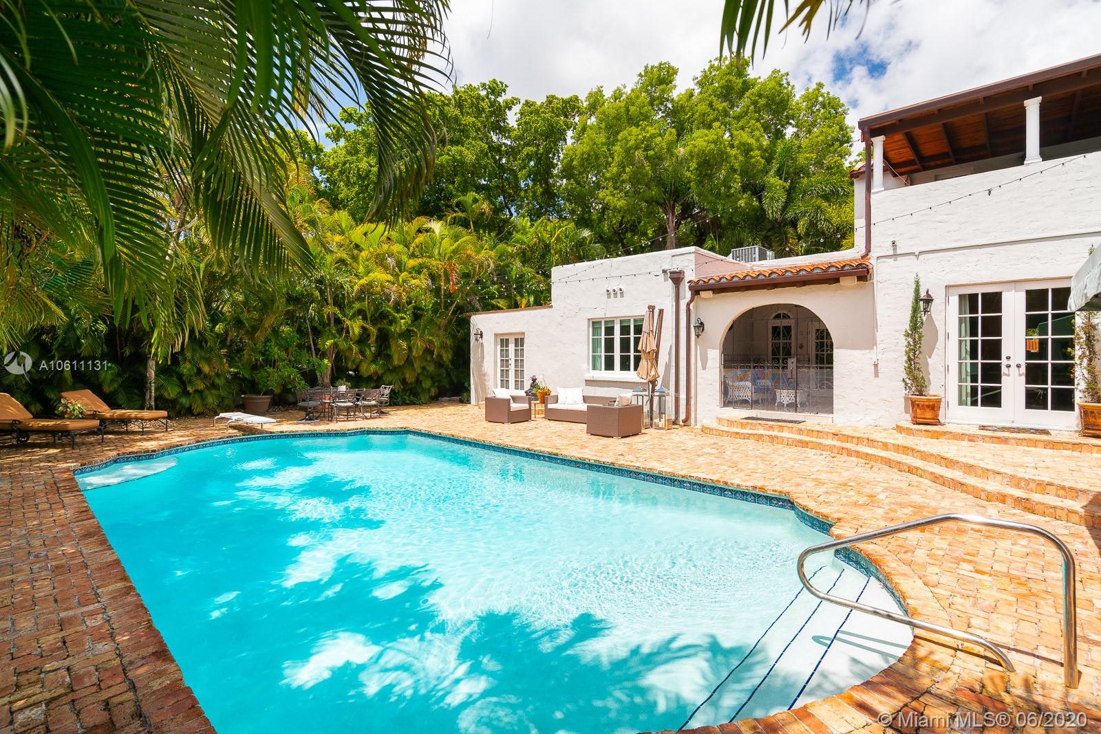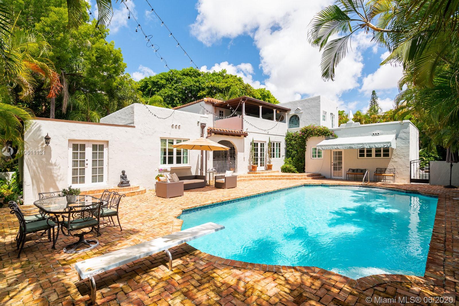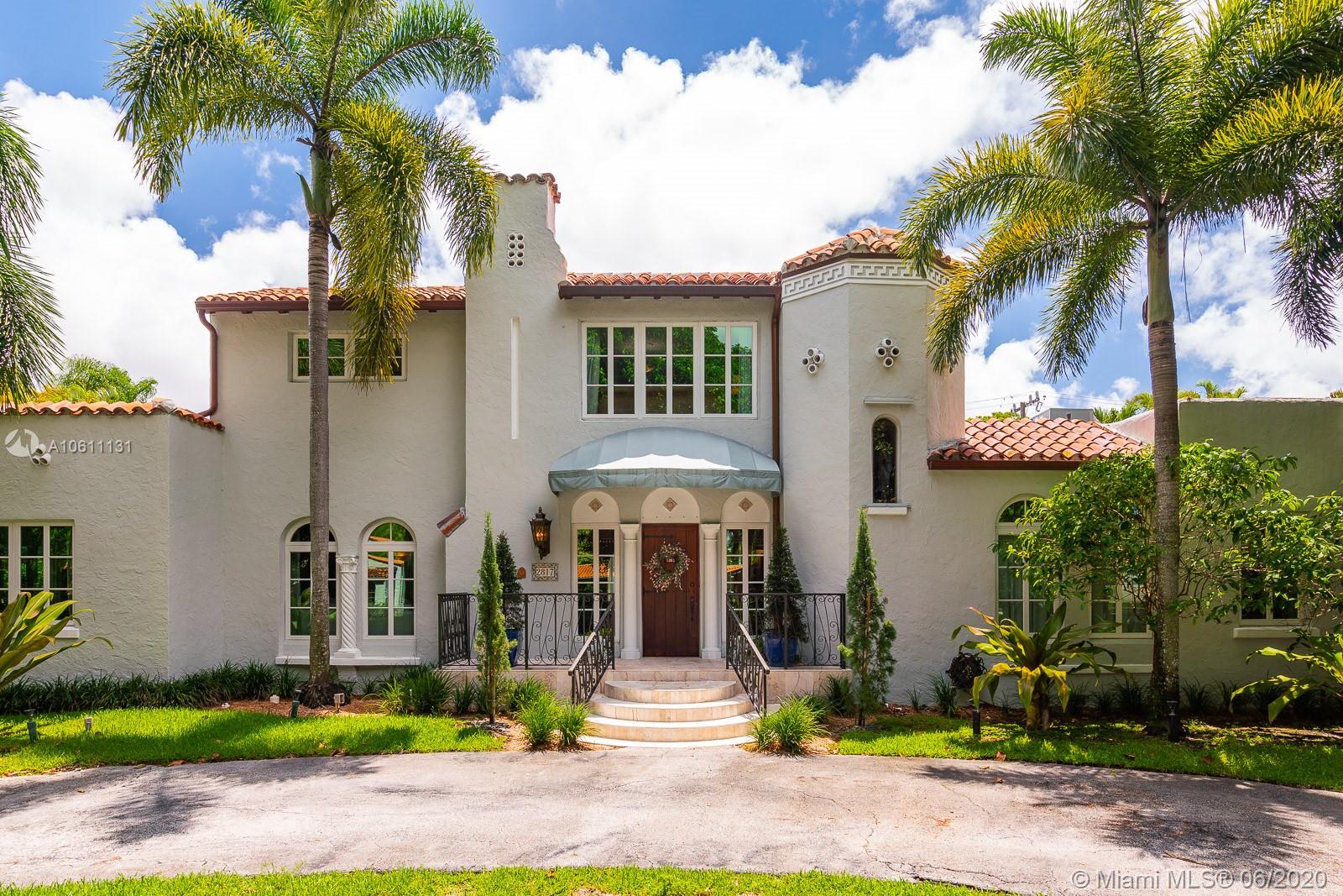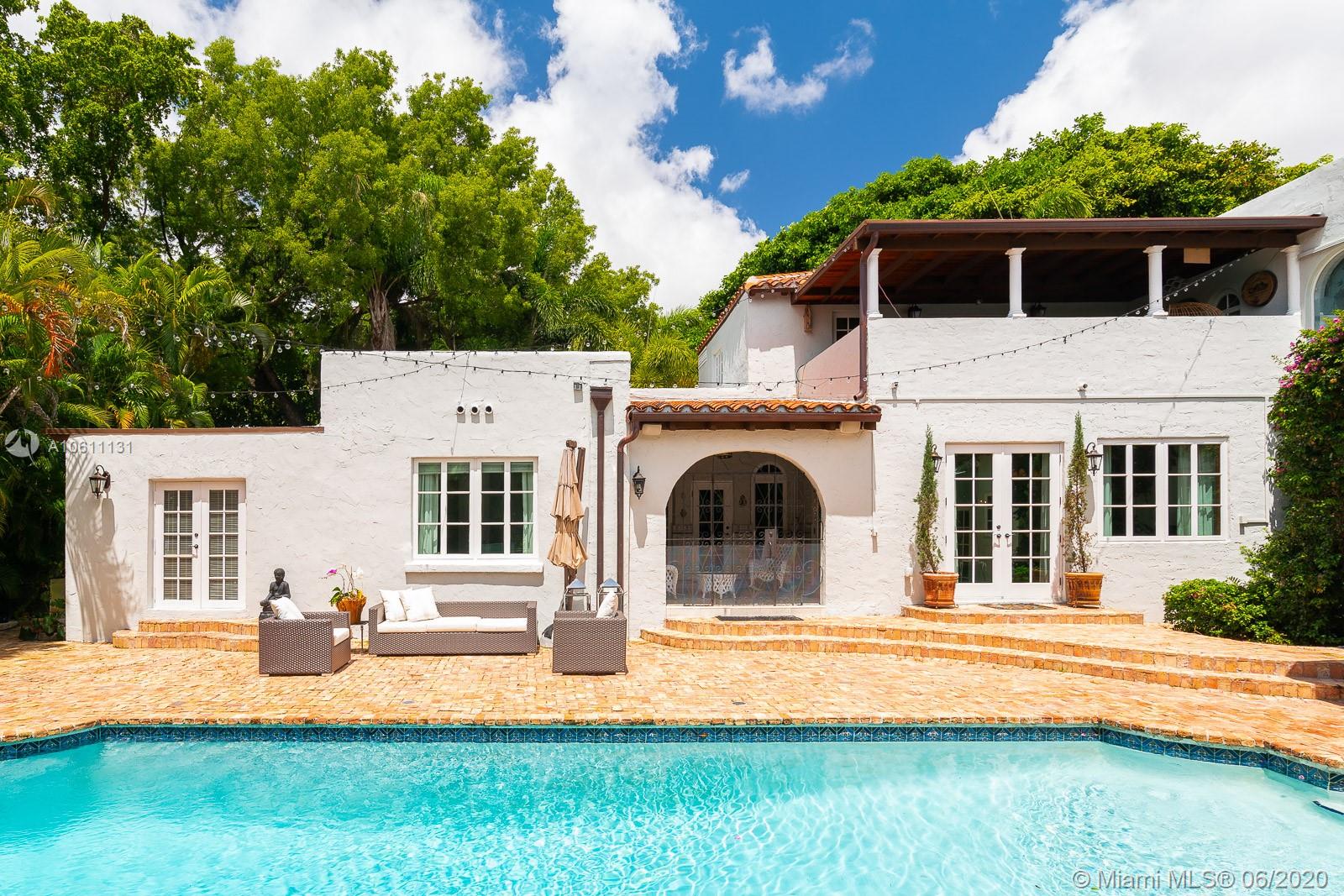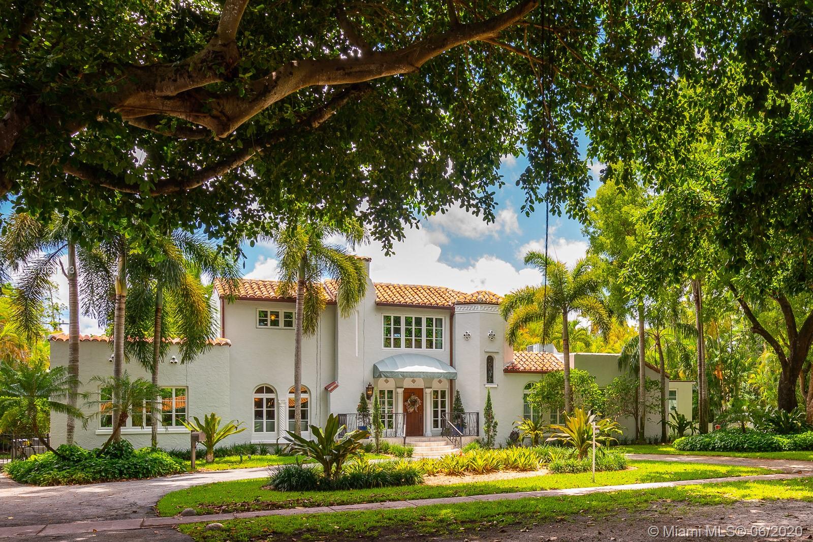 Mediterranean Revival with Style & Grace Elegantly updated in 2017, historic architectural landmark commissioned by George Merrick and designed by L.D. Brumm in 1924. Upon entering the mahogany front door, you're welcomed into an open foyer with a wood burning fireplace, solid h/wood floors and generous natural light flooding in from the dining room doors. Highlights include eat-in kitchen, industrial-sized Vulcan gas stove/ovens, private upstairs master suite with custom etched glass window and rear balcony, impact windows and doors, over sized pool and handmade Colombian barrel tile roof. Every room has ample closet space and en-suite bathrooms. Fully landscaped grounds compliment the breathtaking canopy of banyan trees along Columbus Blvd. 4330 sq ft. and 16,000 sq. ft. lot.