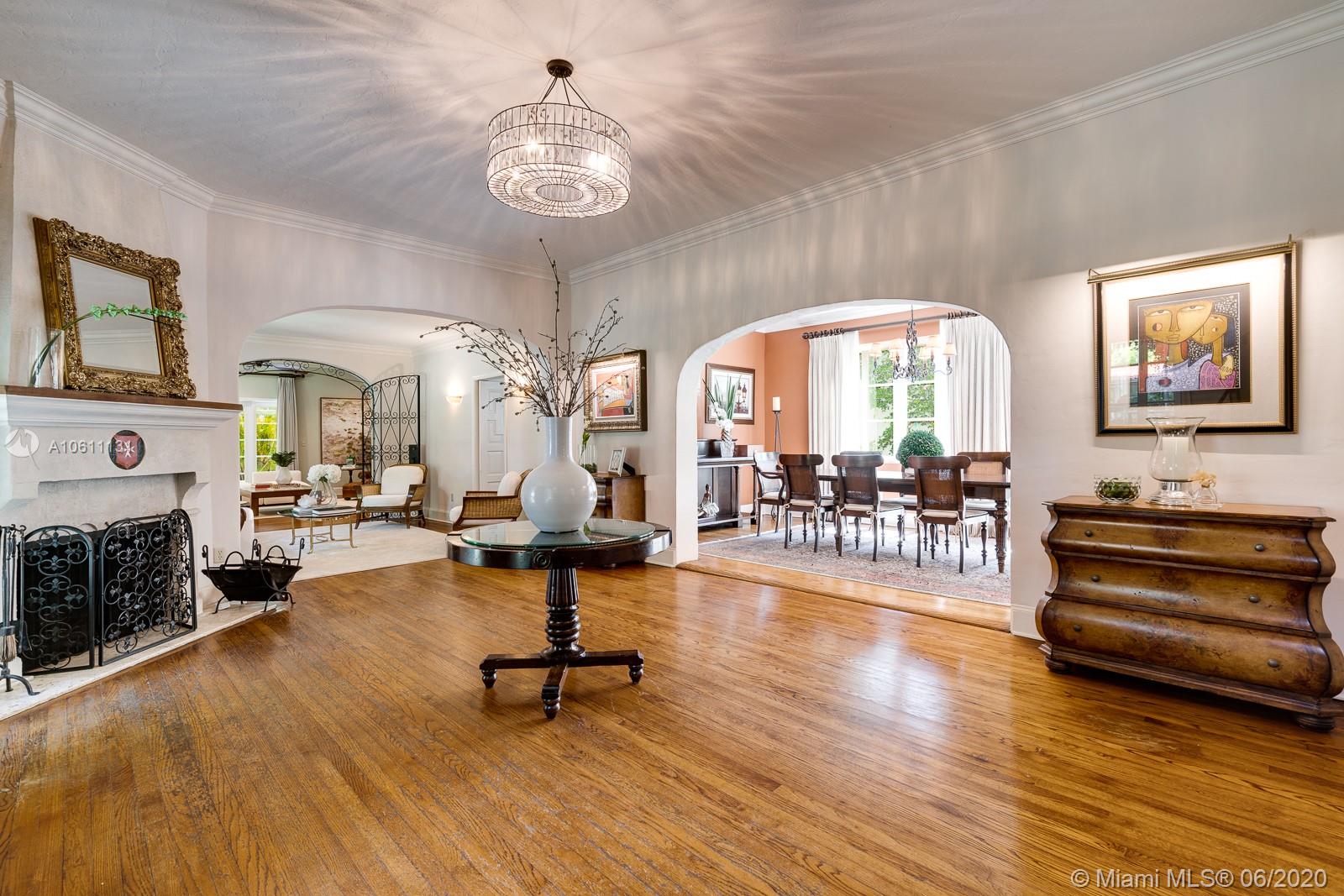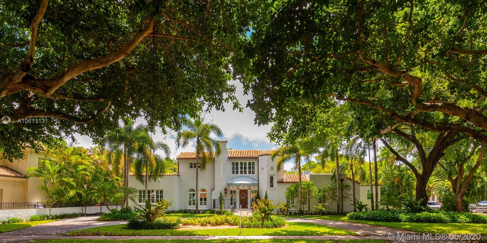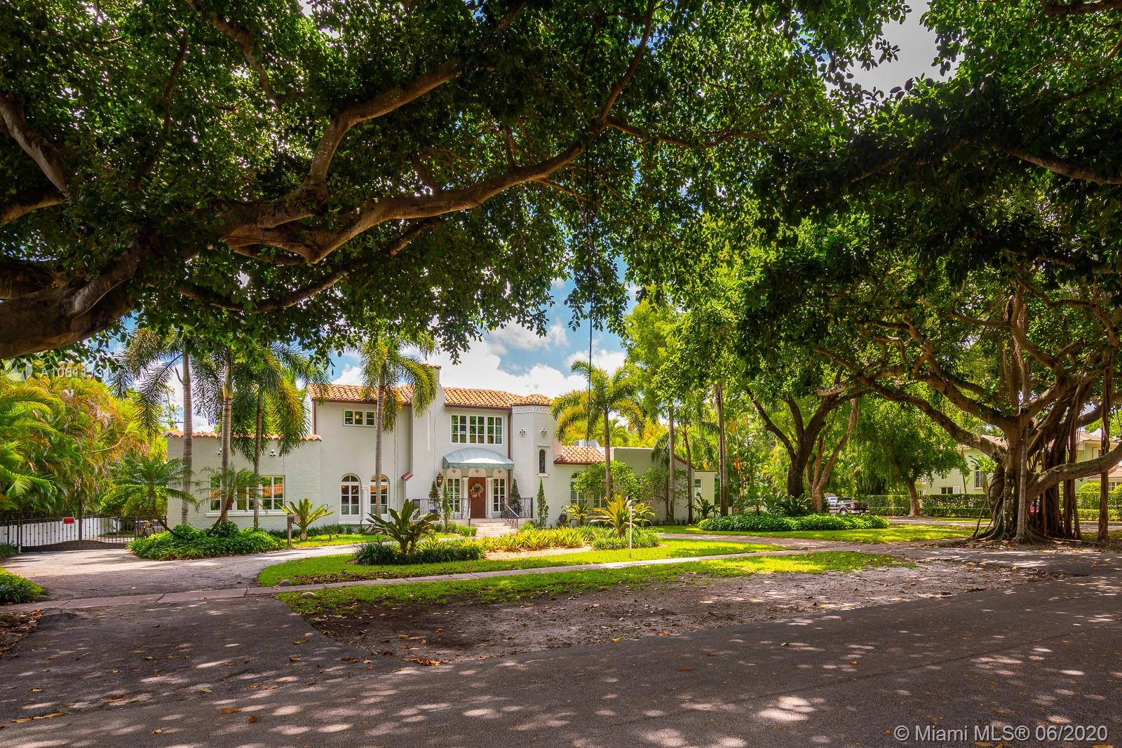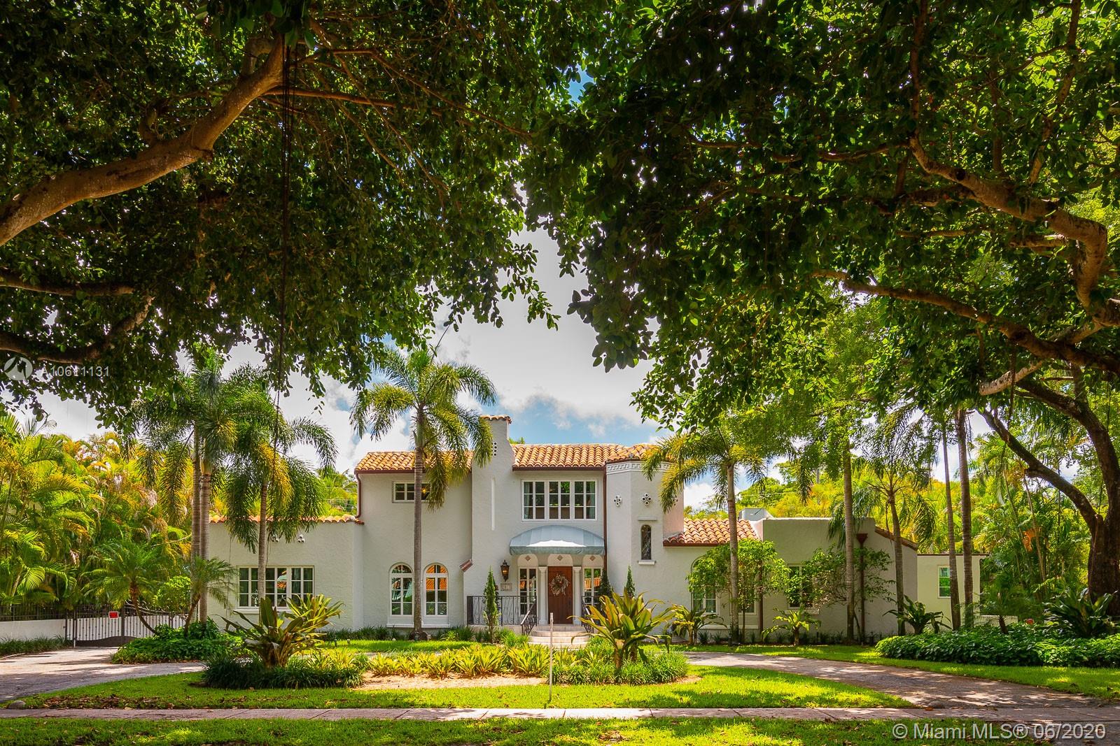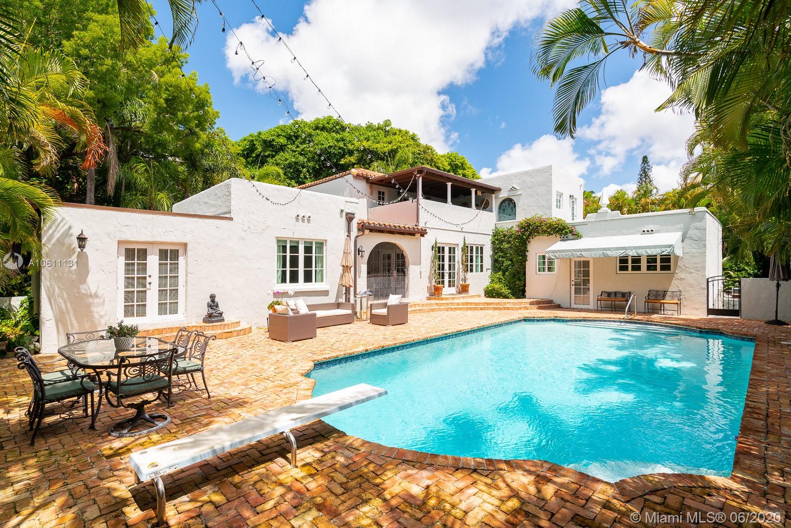 Mediterranean Revival with Style & Grace Elegantly updated in 2017, historic architectural landmark commissioned by George Merrick and designed by L.D. Brumm in 1924. Upon entering the mahogany front door, you're welcomed into an open foyer with a wood burning fireplace, solid h/wood floors and generous natural light flooding in from the dining room doors. Highlights include eat-in kitchen, industrial-sized Vulcan gas stove/ovens, private upstairs master suite with custom etched glass window and rear balcony, impact windows and doors, over sized pool and handmade Colombian barrel tile roof. Every room has ample closet space and en-suite bathrooms. Fully landscaped grounds compliment the breathtaking canopy of banyan trees along Columbus Blvd. 4330 sq ft. and 16,000 sq. ft. lot.