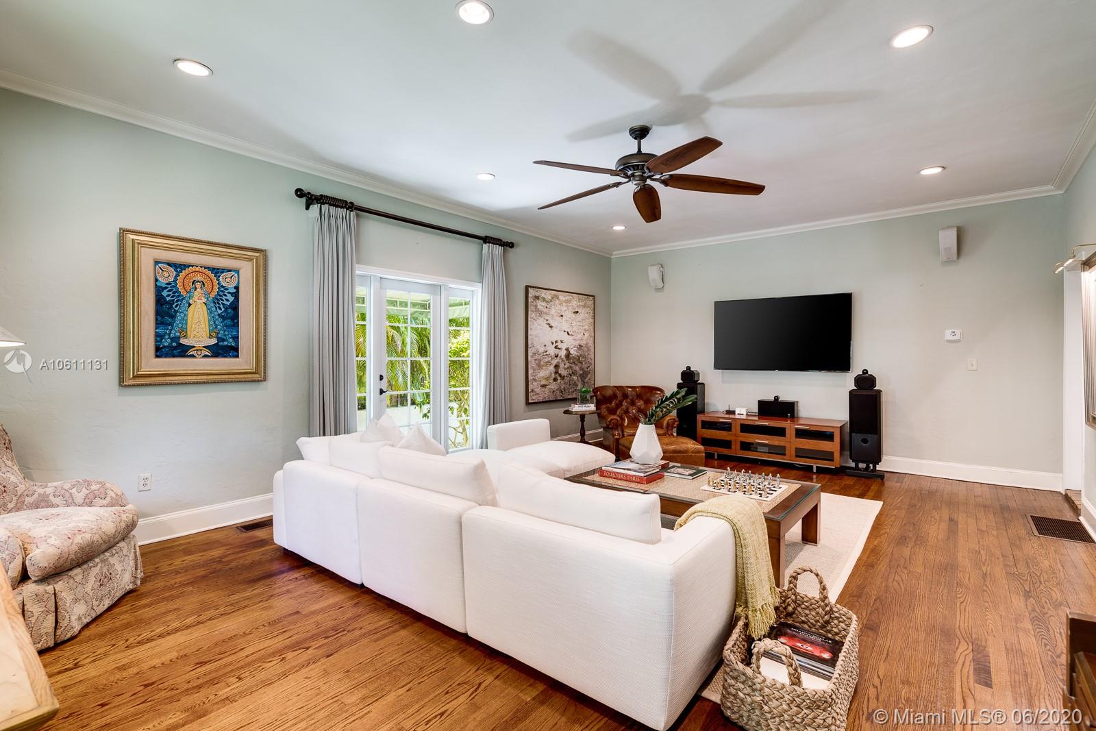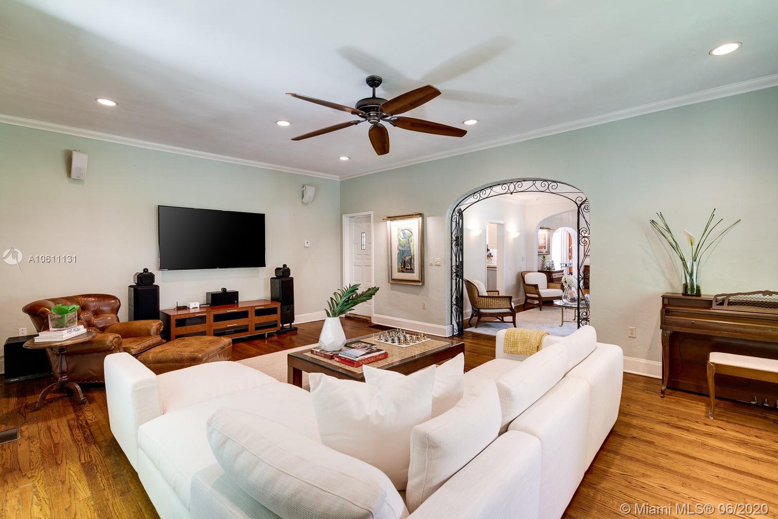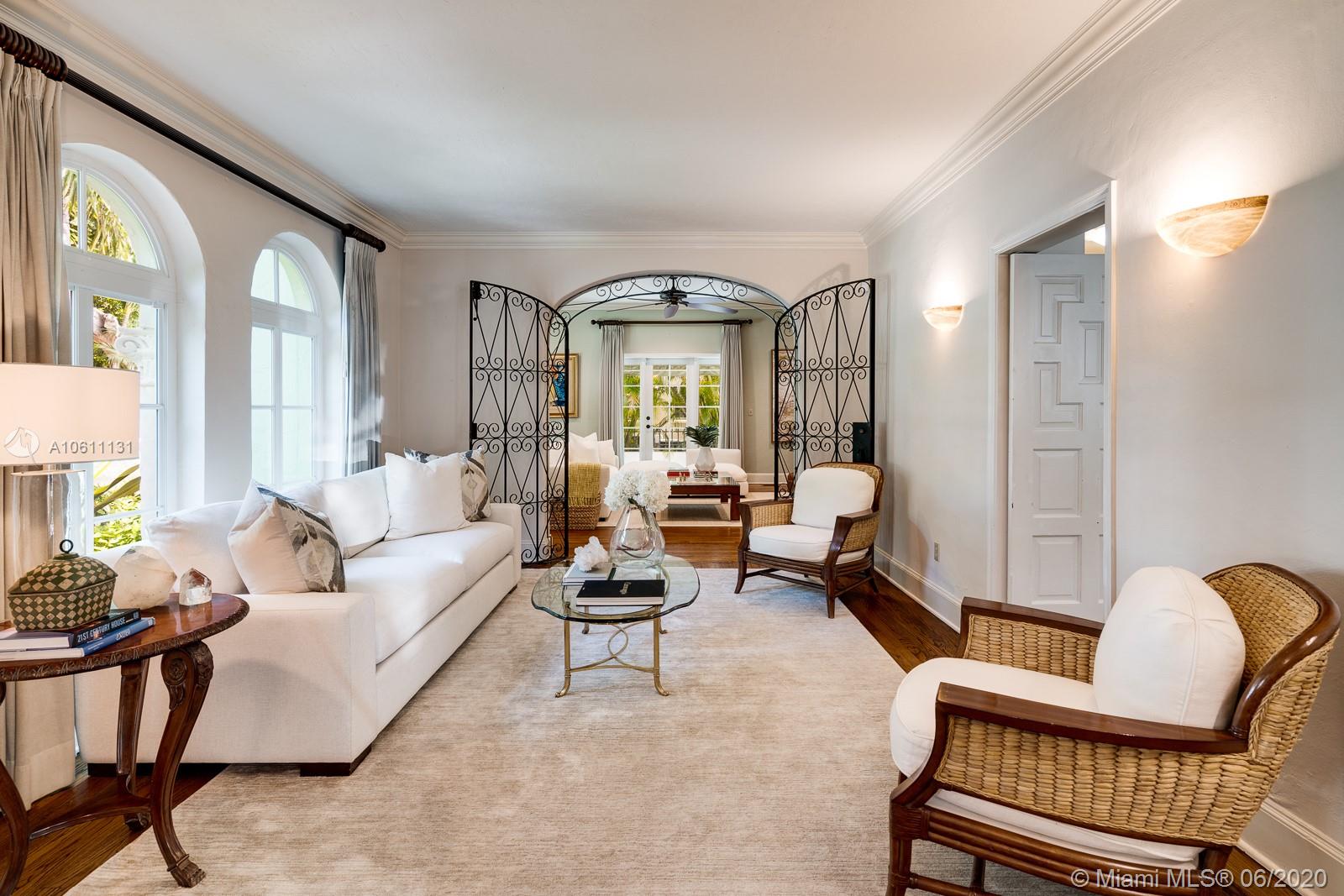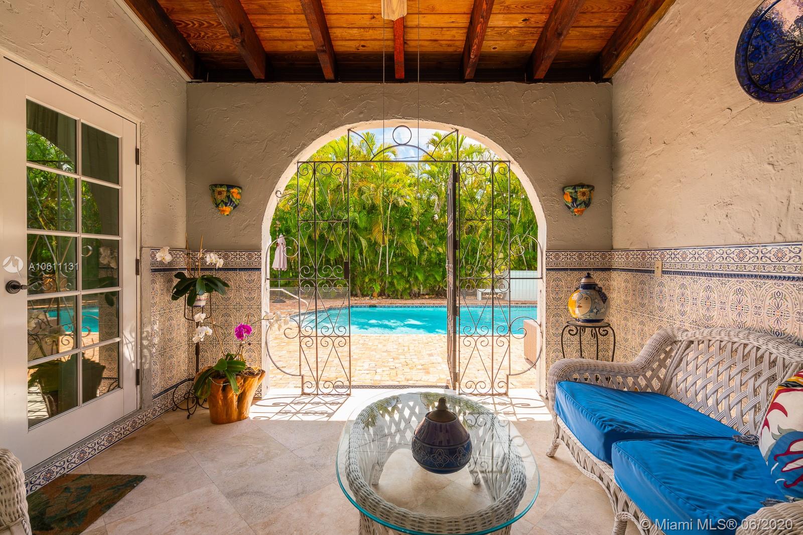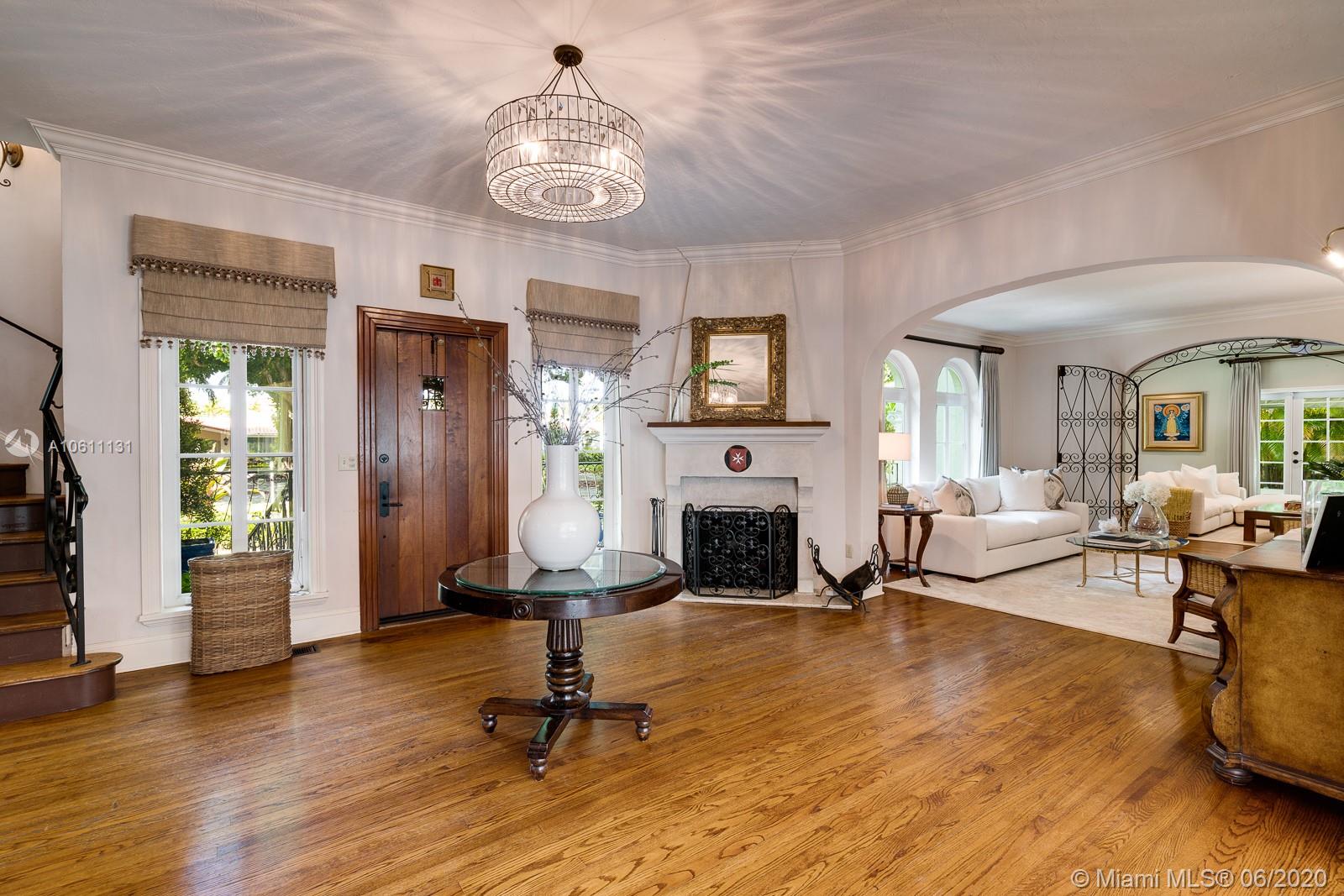 Mediterranean Revival with Style & Grace Elegantly updated in 2017, historic architectural landmark commissioned by George Merrick and designed by L.D. Brumm in 1924. Upon entering the mahogany front door, you're welcomed into an open foyer with a wood burning fireplace, solid h/wood floors and generous natural light flooding in from the dining room doors. Highlights include eat-in kitchen, industrial-sized Vulcan gas stove/ovens, private upstairs master suite with custom etched glass window and rear balcony, impact windows and doors, over sized pool and handmade Colombian barrel tile roof. Every room has ample closet space and en-suite bathrooms. Fully landscaped grounds compliment the breathtaking canopy of banyan trees along Columbus Blvd. 4330 sq ft. and 16,000 sq. ft. lot.