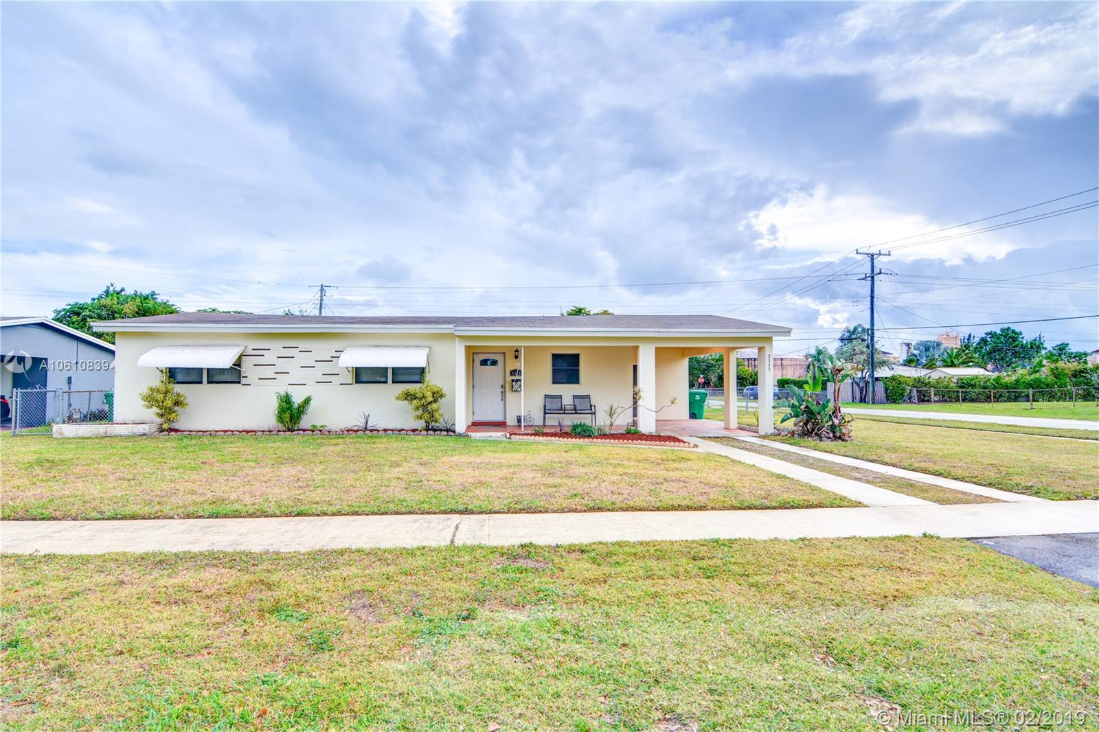 Come and see this beautiful corner home located within a great neighborhood in the heart of Miramar. Upgraded kitchen, bathrooms, fixtures, large tile throughout. The home also has a laundry room and enough room in the backyard to build a pool or just watch the children running and enjoying it. This home is well kept, from the floors, bathrooms to the serviced A/C. If you decide to wait on seeing this one, you will miss a great opportunity to own a great home.