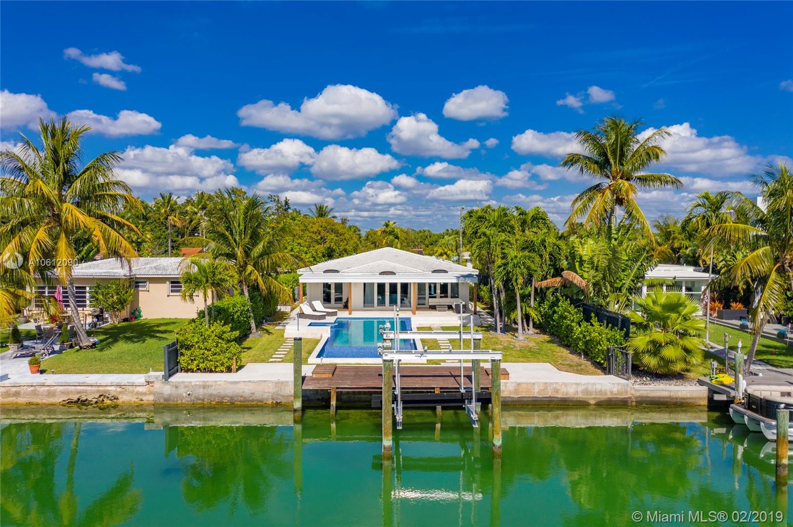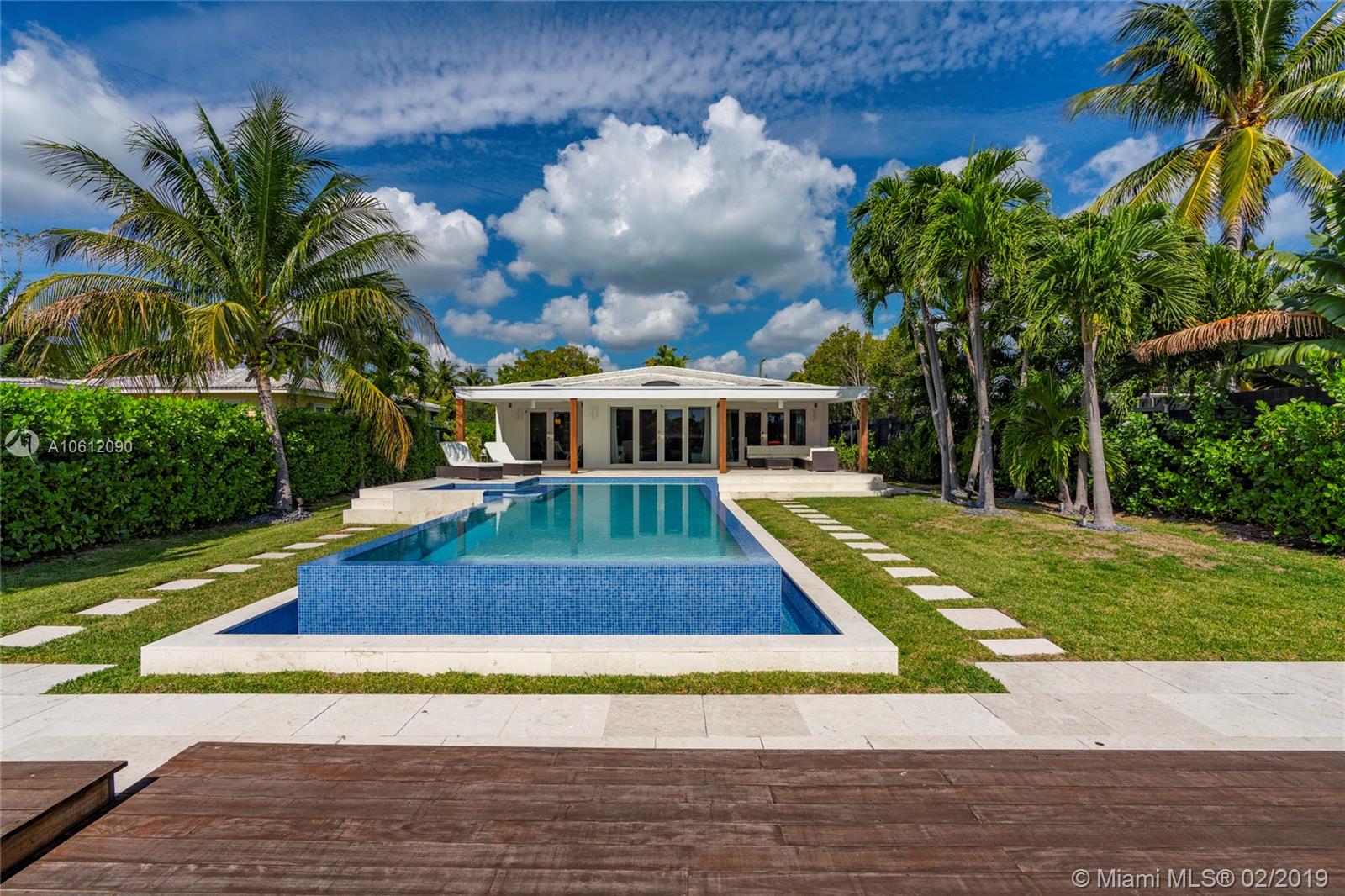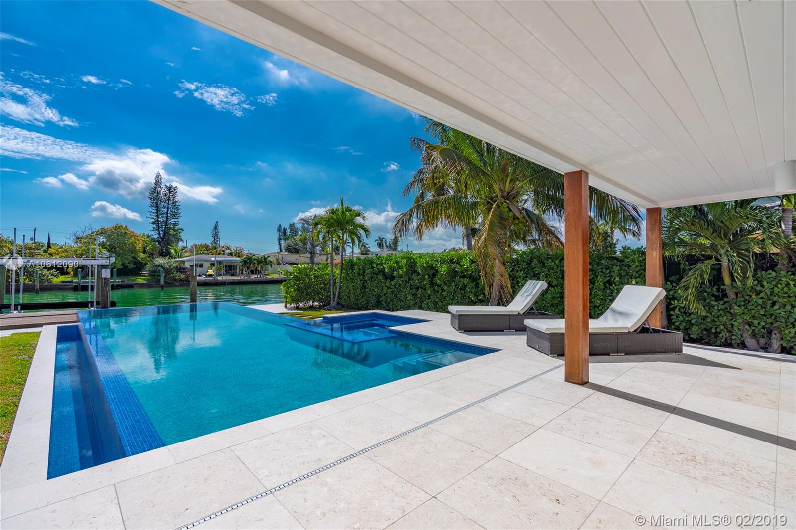 Captivating 3 bedroom 3.5 bathroom waterfront home sitting on 10,200 sq foot lot located in the highly sought-after Normandy Golf Club! Sunlight pours in the living room through beautiful French doors welcoming you inside. Renovated state of the art Kitchen with stainless steel appliances and tasteful finishes including built-in wine cooler and wall range hood. Home features infinity pool and 60 ft water frontage with dock and easy access to the bay/ocean. This home is in excellent condition turn key ready.