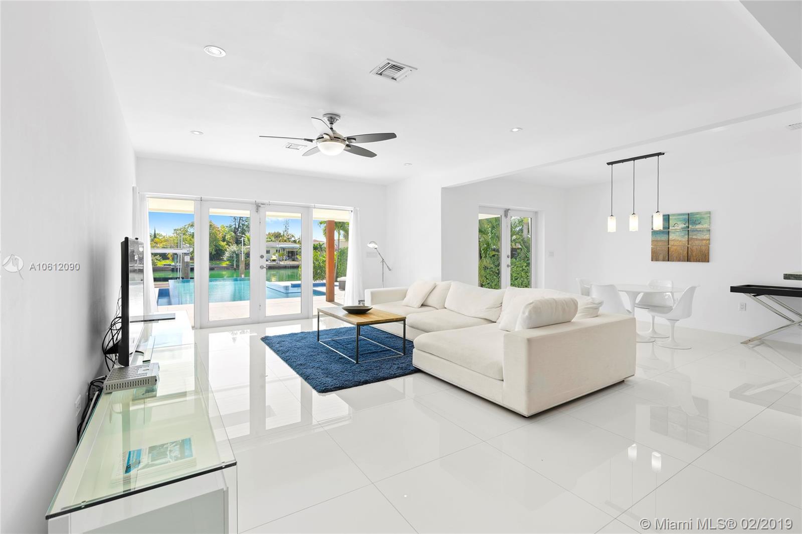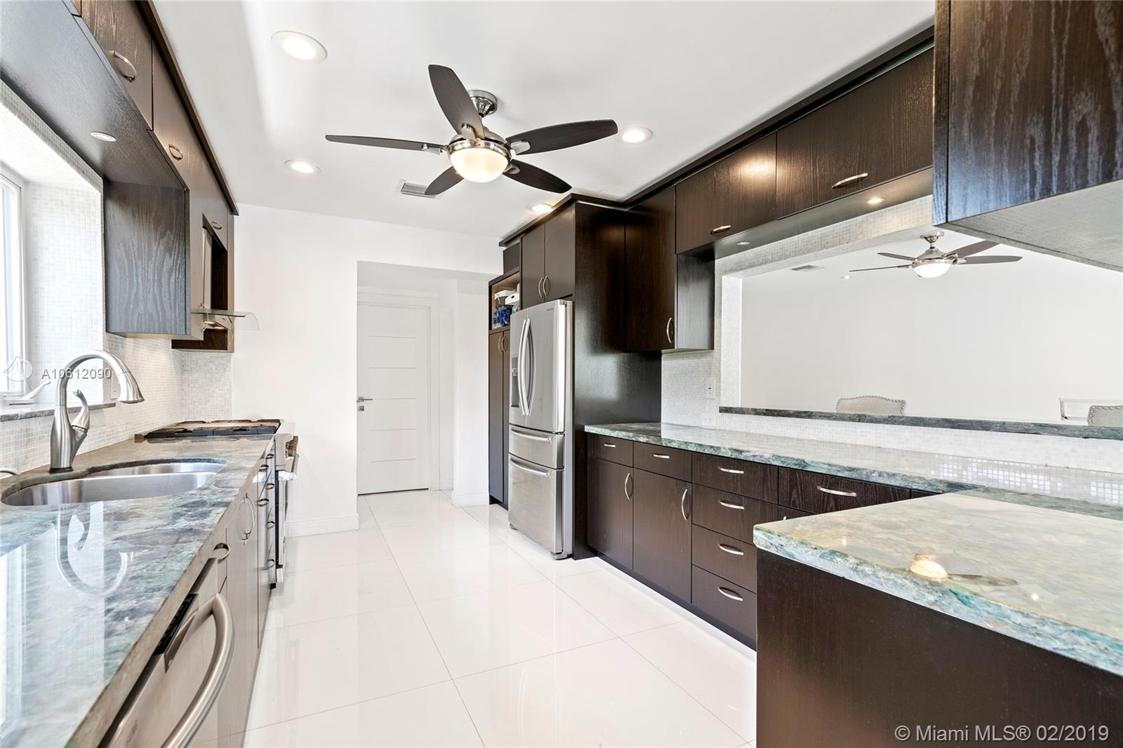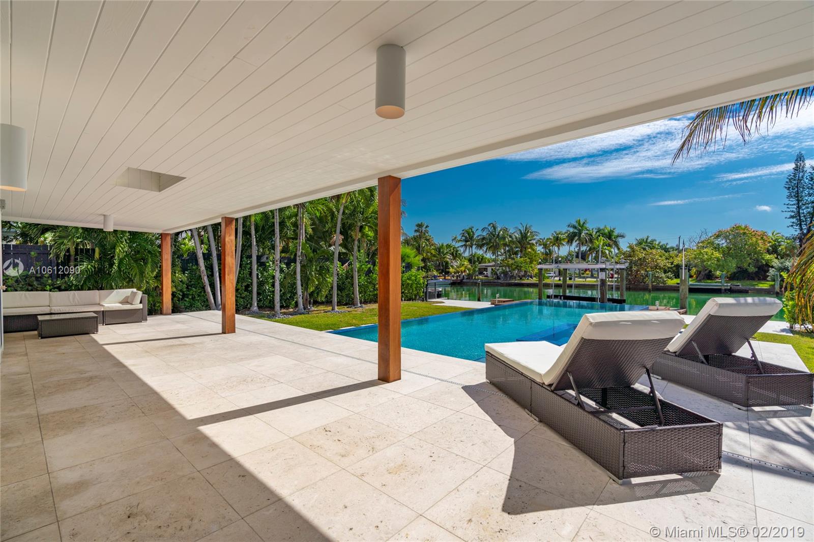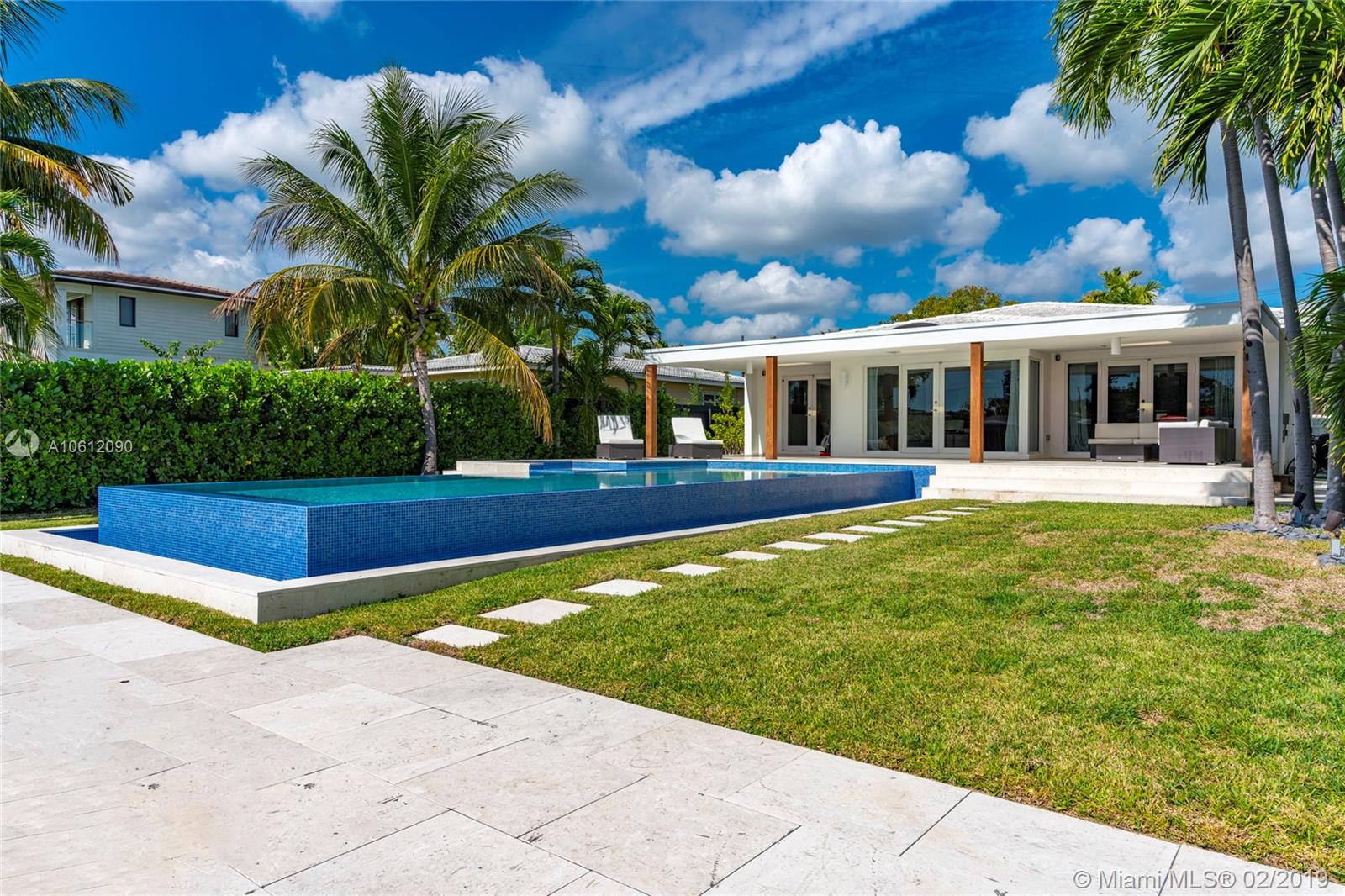 Captivating 3 bedroom 3.5 bathroom waterfront home sitting on 10,200 sq foot lot located in the highly sought-after Normandy Golf Club! Sunlight pours in the living room through beautiful French doors welcoming you inside. Renovated state of the art Kitchen with stainless steel appliances and tasteful finishes including built-in wine cooler and wall range hood. Home features infinity pool and 60 ft water frontage with dock and easy access to the bay/ocean. This home is in excellent condition turn key ready.