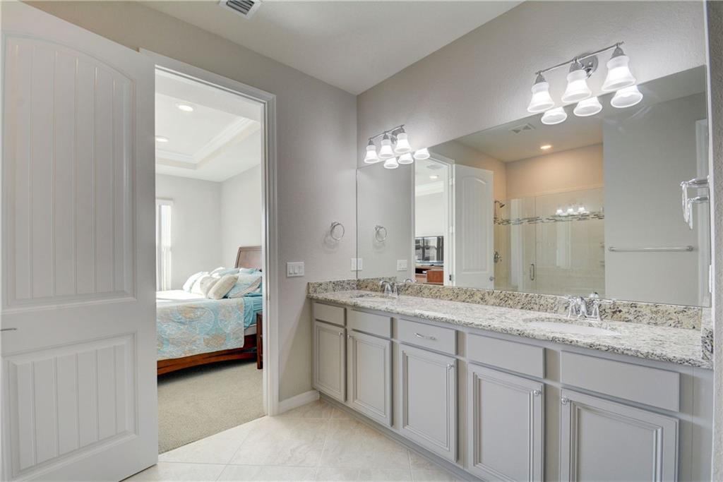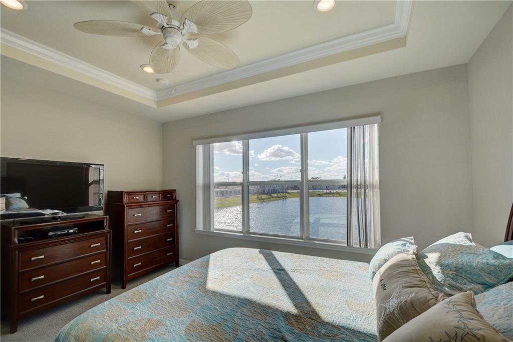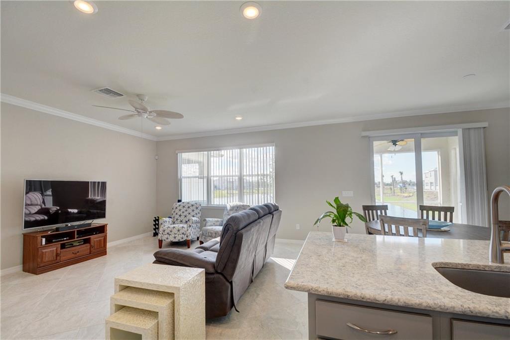 This Raritan Model by Pulte homes has over $36,000 in interior improvements including the screened in lanai! Enjoy the sunsets over the long view of the lake. Also added were 8' doors, crown molding, impact windows, upgraded tile, carpet and Sherwin Williams grey paint throughout. New ceiling fans and blinds have been added. Vivint smart home security and technology is already set up. Includes smart panel, motion detector, seven door and window sensors, doorbell camera, smart locks and smart home thermostat. Upgrades and floor plan in attachments.