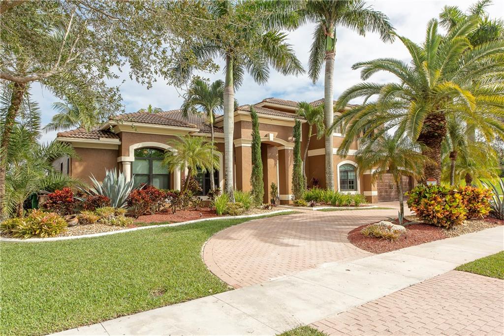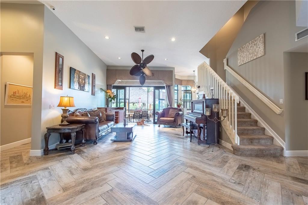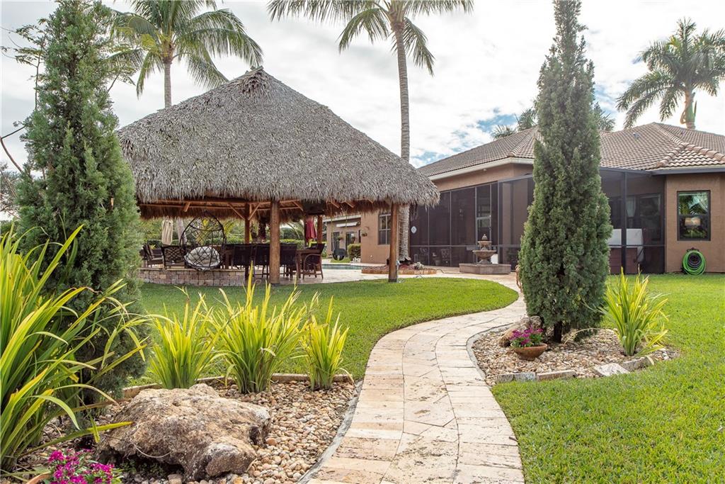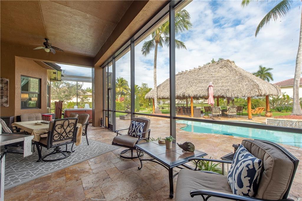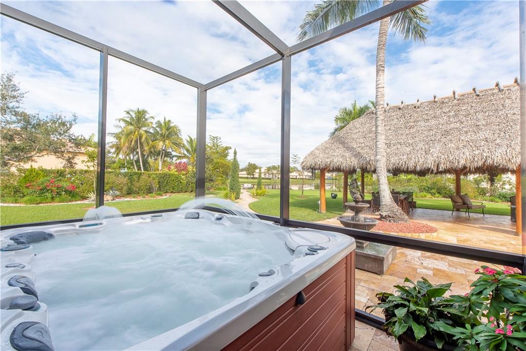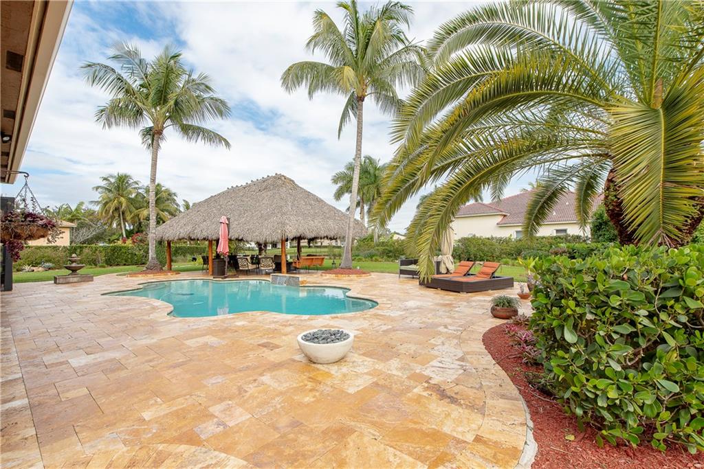 Expansive 7 beds 6 bath on private corner resort style 1 acre lot in gated community including a fully independent 2bed/1 bath guest house w/private entrance. 1st floor has formal living & formal dining room, large family room, open kitchen w/new appliances & eat in area, walk in pantry & beautiful new herringbone tile floors thru-out. Large Master suite distanced for privacy,2 bonus rooms one dedicated to gym & TV room all on entry level. Upstairs secluded area with 3beds 2 bath. Home secured with new impact windows, security system & cameras. Large screened patio with 8 person spa. Huge Tiki hut creates perfect outdoor year round living with heated pool extensive stone tiled patio, gorgeous lush landscaping with mature hedge for privacy. Unique home in the area in this price range.