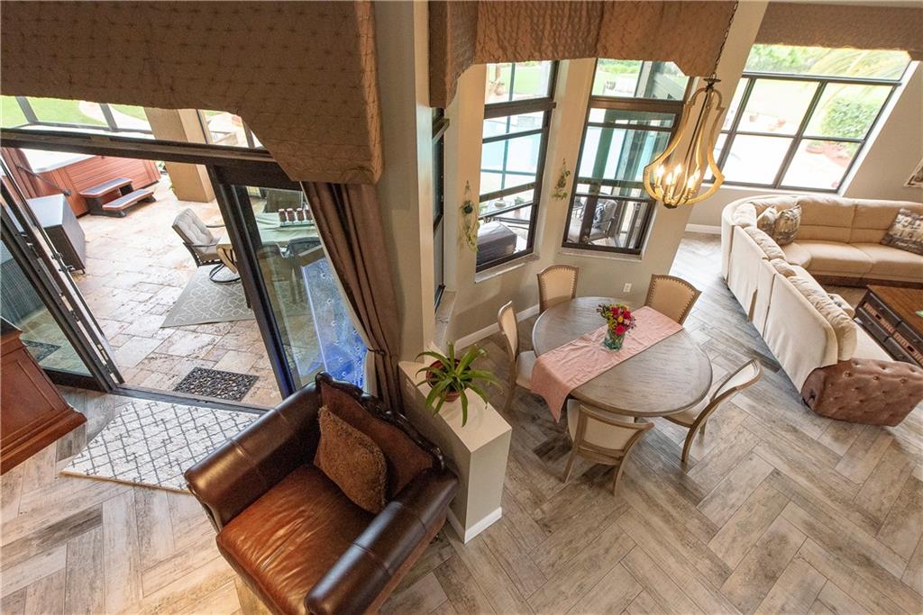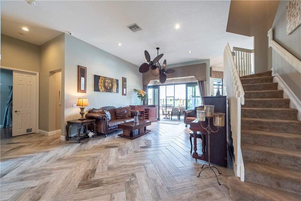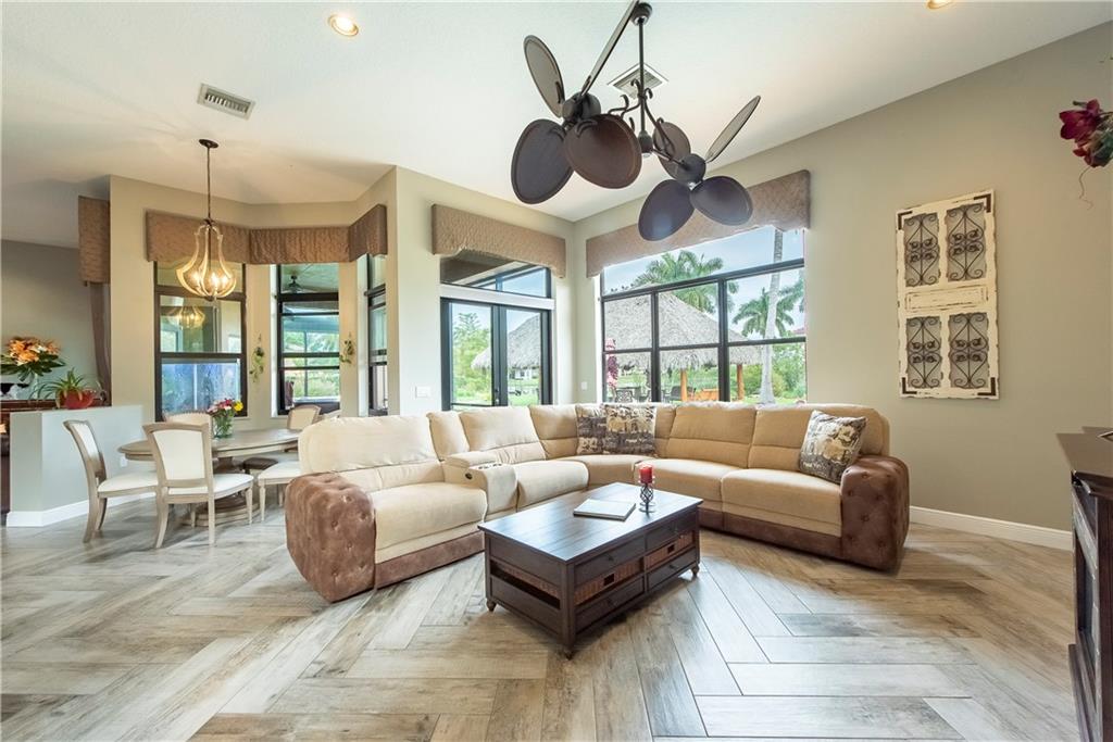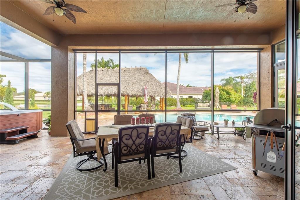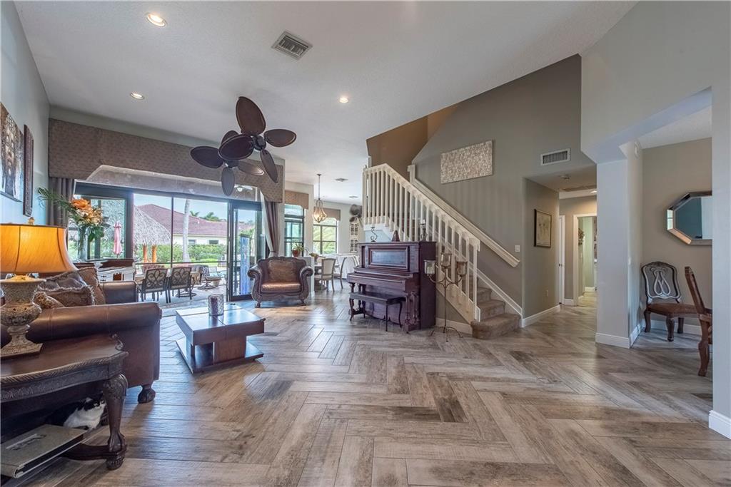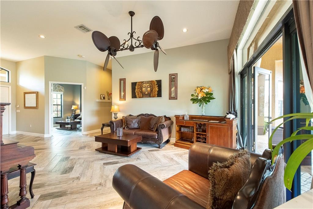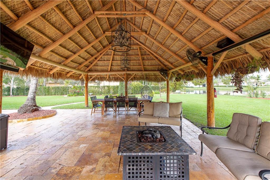 Expansive 7 beds 6 bath on private corner resort style 1 acre lot in gated community including a fully independent 2bed/1 bath guest house w/private entrance. 1st floor has formal living & formal dining room, large family room, open kitchen w/new appliances & eat in area, walk in pantry & beautiful new herringbone tile floors thru-out. Large Master suite distanced for privacy,2 bonus rooms one dedicated to gym & TV room all on entry level. Upstairs secluded area with 3beds 2 bath. Home secured with new impact windows, security system & cameras. Large screened patio with 8 person spa. Huge Tiki hut creates perfect outdoor year round living with heated pool extensive stone tiled patio, gorgeous lush landscaping with mature hedge for privacy. Unique home in the area in this price range.