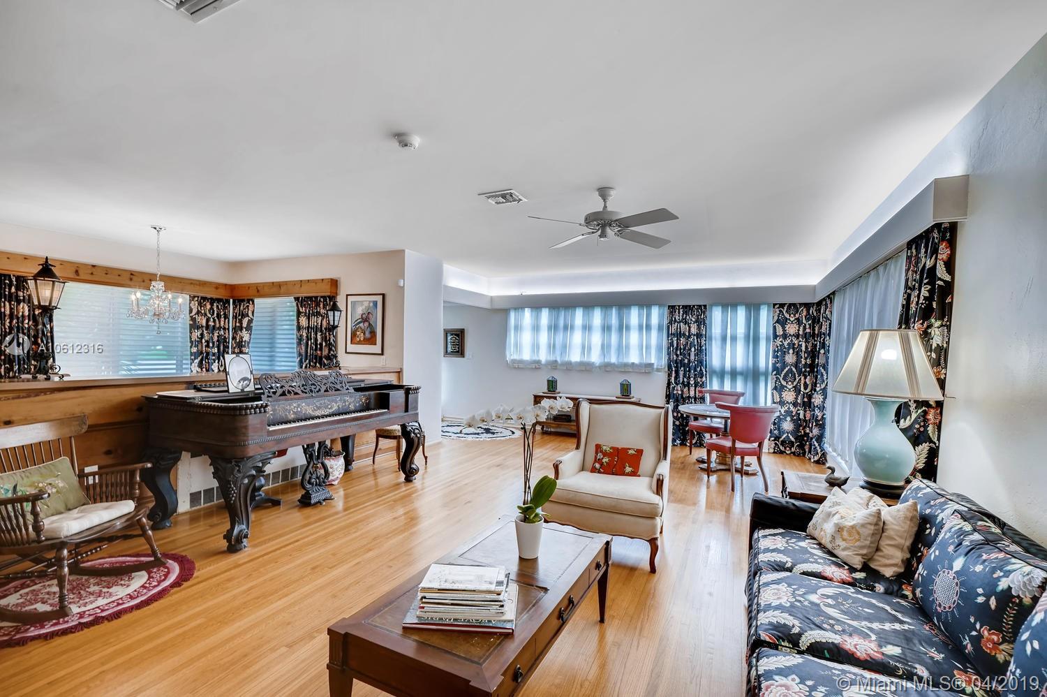 MID CENTURY 4 BED/3.5 BATH HOME IN PRIME MIAMI SHORES LOCATION ONE BLOCK FROM THE BAY. CUSTOM BUILT IN 1951, THE SPACIOUS AND OPEN FLOOR PLAN IS GREAT FOR ENTERTAINING. ORIGINAL RED OAK HARDWOOD FLOORS. 2 BEDROOMS/2 BATHS ON ENTRY LEVEL AND 2 BEDROOMS WITH JACK/JILL BATHROOM ON SECOND FLOOR. LARGE FLORIDA ROOM ACCESS SCREENED PORCH/PATIO WITH ROOM FOR A POOL. NEW CENTRAL A/C SYSTEM ON FIRST FLOOR LEVEL. VERY LARGE KITCHEN WITH STAINLESS STEEL APPLIANCES & COOKING ISLAND. ATTACHED 2 CAR GARAGE. GENERAC GENERATOR. UPDATED ELECTRIC SERVICE. ACCORDION STORM SHUTTERS + SOME IMPACT WINDOWS. LOTS OF EXTRA STORAGE SPACE. FULL SECURITY ALARM SYSTEM.