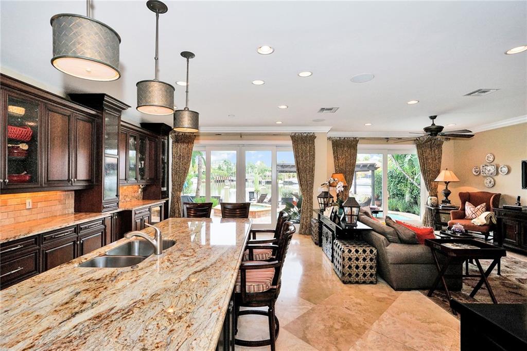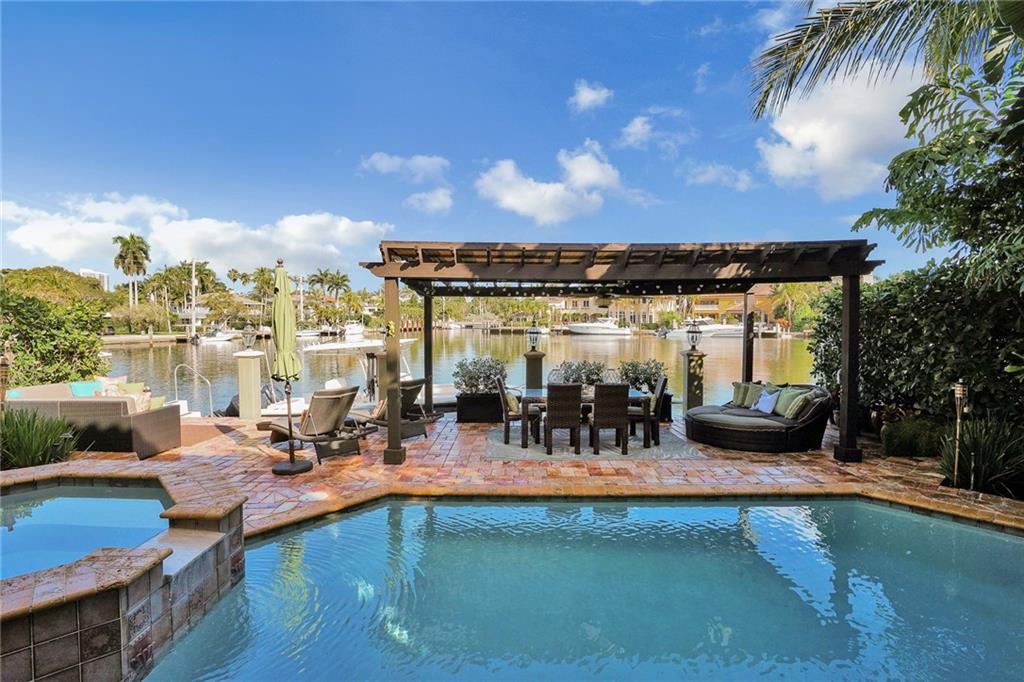 EXCEPTIONAL newer 5 bed 5 bath home - ABSOLUTE MOVE-IN CONDITION, on one of the nicest waterfront Rio Vista Isles. GORGEOUS wide water views & quick ocean access. IMMACULATE home w/all the BEST UPGRADES, remodeled by owner & perfectly situated on 50ft water. Rare at this $, this home has amazing open & expansive water views w/privacy & tranquility, & beautiful downtown skyline views. Waterfront oasis w/saltwater pool & spa, new pool heater, tropical landscaping, floating dock for water toys, patio & romantic pergola for dockside dining. Great entertaining home w/fully equipped open kitchen & large island, Wolf gas range & luxury appliances. All impact windows & doors. Custom lighting. Sonos sound system inside & out. Beautiful large master suite overlooks pool & water. Great floorplan. 10+