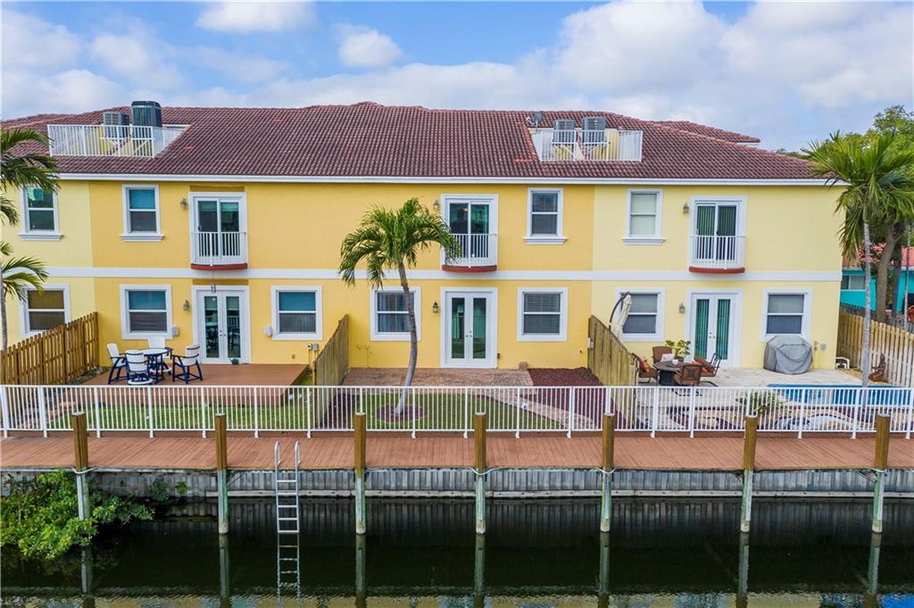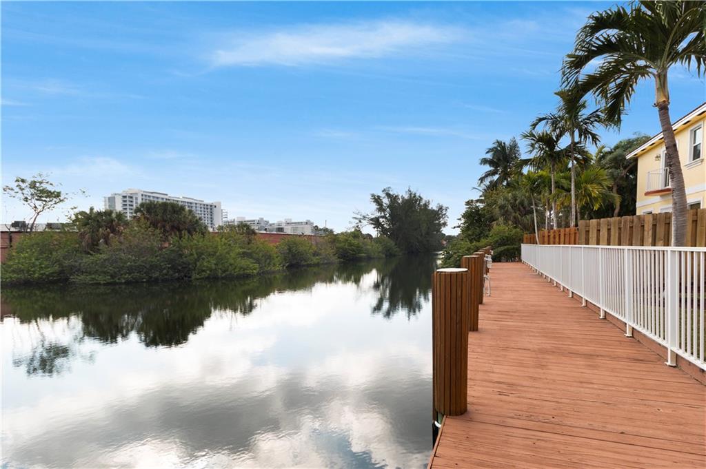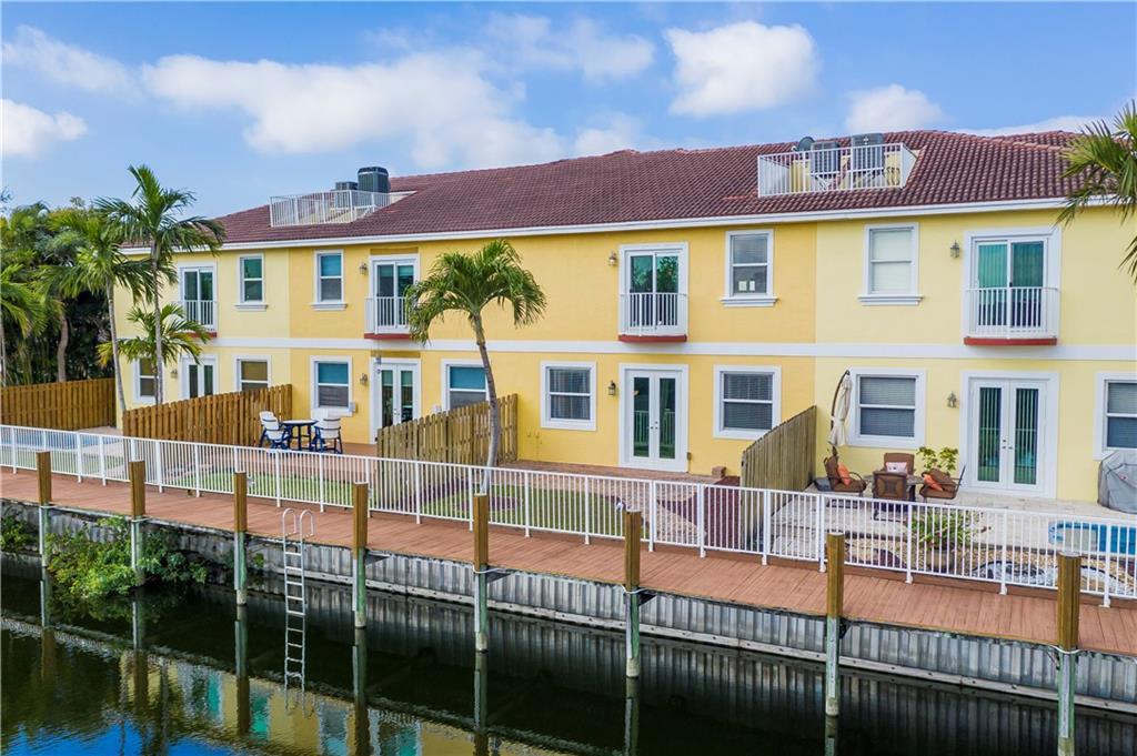 This East Ft. Lauderdale waterfront town home is ideally located within minutes of major shopping, restaurants, gyms, schools, parks and the beach! The private and gated backyard overlooks the dock and waterway ideal for paddle boarding and kayaking and early morning sunrises. The luminous open floor plan boast volume ceilings, contemporary updates, impact windows and doors and multiple doorways that blend indoor and outdoor living spaces. The main floor consists of an oversized 2 car garage, foyer, 1/2 bath great room, dining area, kitchen and snack bar. The open stairway leads to a the master bedroom with a generous walk-in closet, lavish bathroom and waterside balcony. 2 spacious bedrooms plus full laundry completes the 2nd floor. Sq. ft. from IMAPP