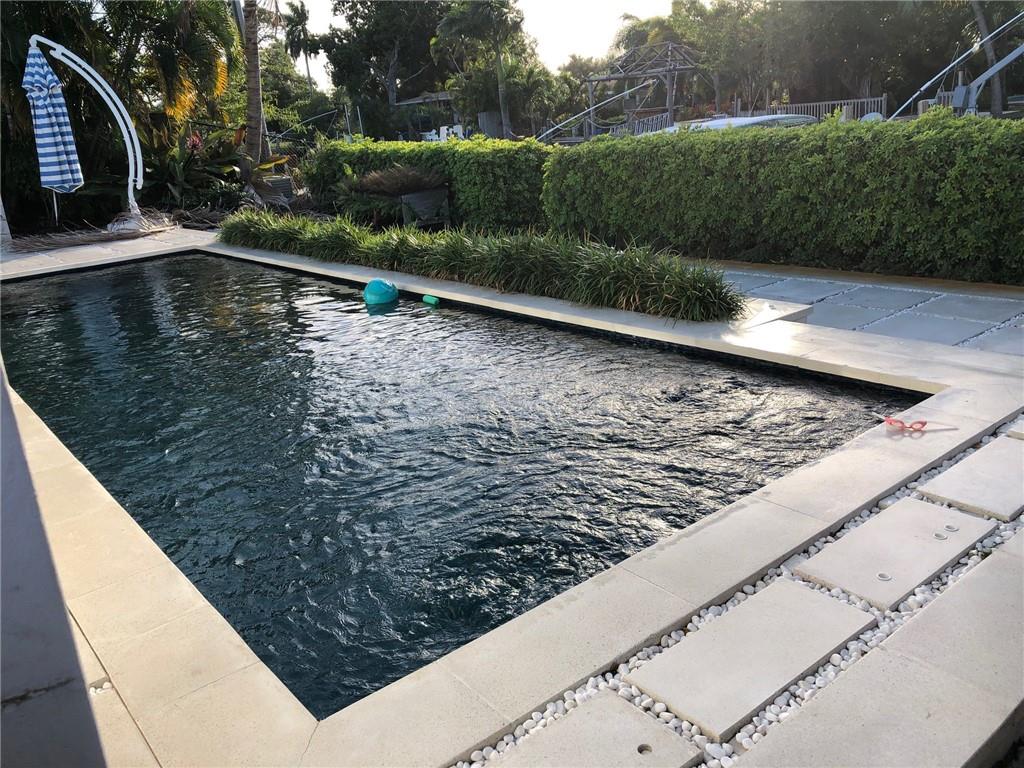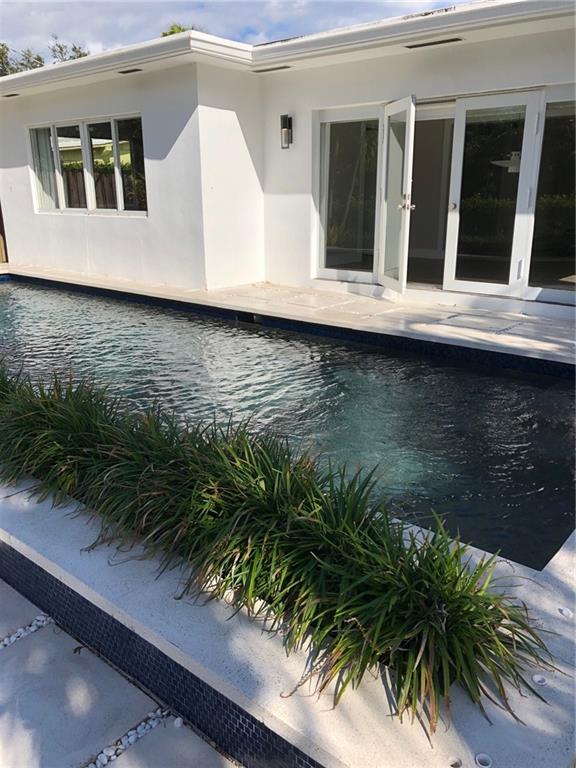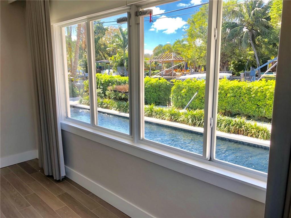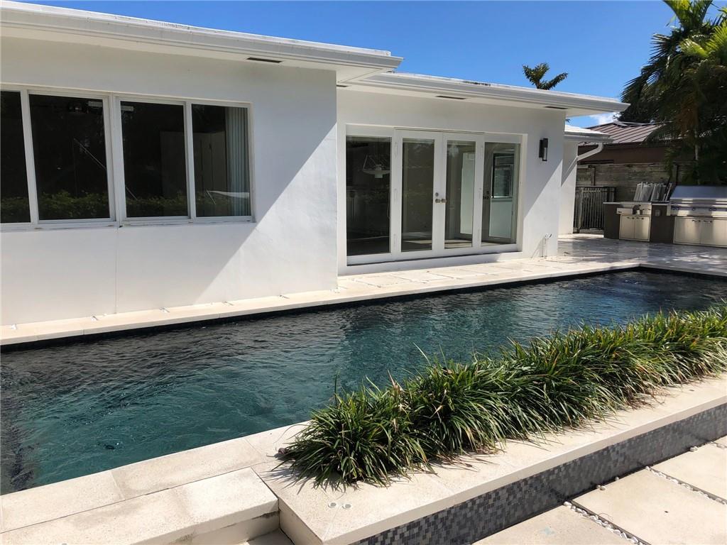 This contemporary 3 bedroom 2 bath plus office waterfront pool home is two houses from the point off the Middle River in the sought after North Ridge section of Poinsettia Heights. With the lifting of the Sunrise Bridge water homes here, such as this one, have access to the intracoastal and ocean with adequate clearance under two fixed bridges. This fully renovated home has impact windows and doors, a large open designer kitchen, one car garage, an outside kitchen, and one of the most beautiful pools you will find. The entry area is an outside fully walled courtyard perfect for entertaining and the open floor plan leads from French doors to the pool and waterway. Luxurious built ins throughout this home compliment its rich contemporary architecture.