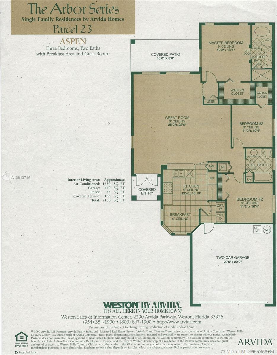 This is the home you have been looking for! Beautifully maintained by the original owners, ready to move in. Three bedrooms / 2 bathrooms. The Aspen model boasts a bright and open floor plan perfect for your family and entertaining. Property has brand new stainless steel appliances, AC unit and flooring. Master suite has walk-in closets, and double sinks in bathroom. SMART technology on sprinkler system and AC system. Located in the desirable gated community of Savanna, family oriented in Weston. Amazing amenities resort style living, offering 3 swimming pools playground, miniature golf, basketball courts, Roller hockey rink, soccer field, clubhouse and more!! Great location conveniently located to highways, shopping plazas, and A+ rated schools.