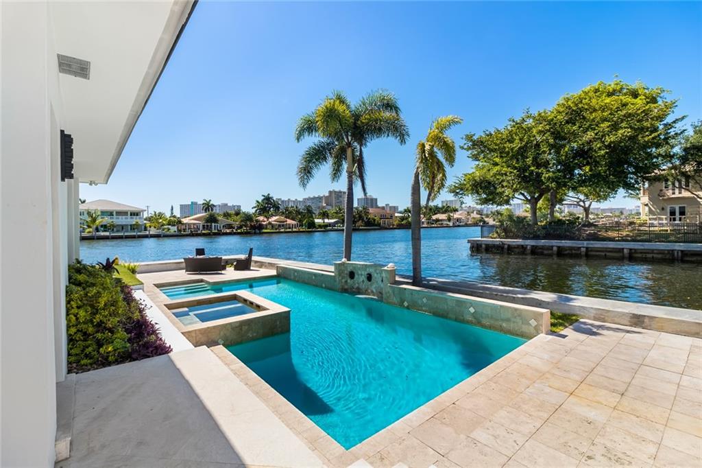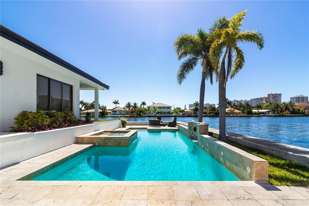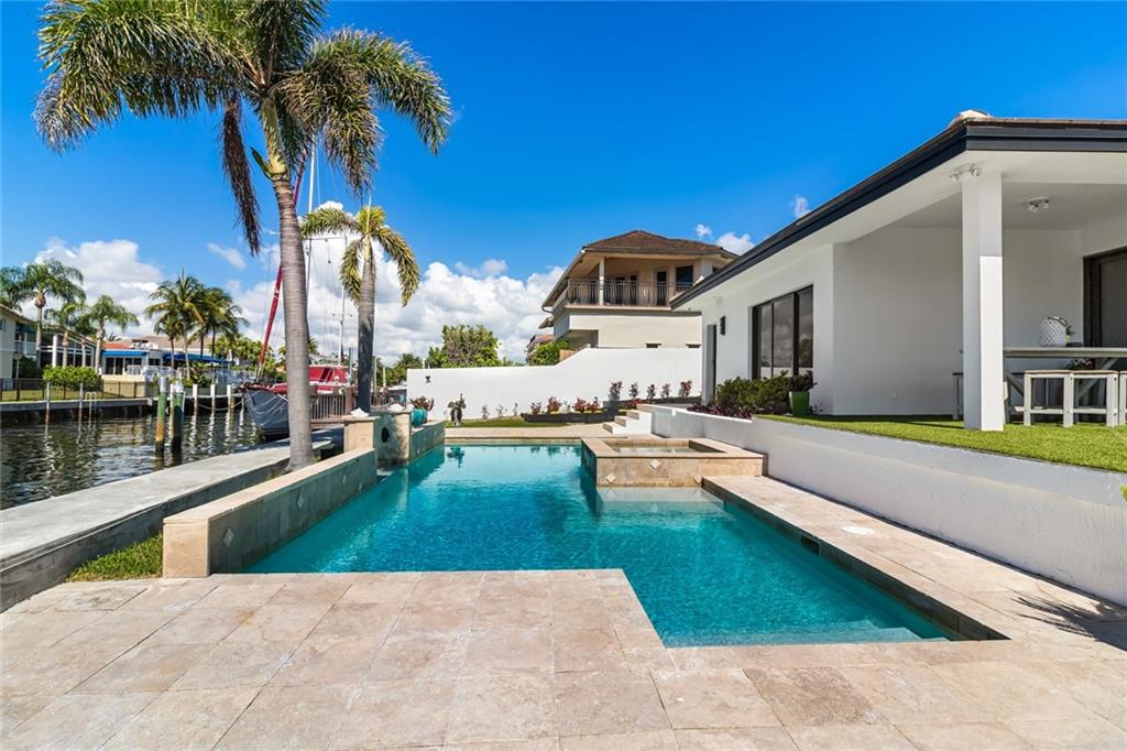 Rare Point Lot w/ Stunning Intracoastal Views & Sunrises. Enjoy The Feeling Of Being On Vacation Every Day In The Comfort Of Your Home. This Rare Luxury Property Maximizes The Best Florida Has To Offer, w/ Custom Open Floor Plan, His & Hers Master Bath Accompanied By Custom Duo His & Her Walk In Closets, High-End Hand Carved Wood, Travertine & Marble Flooring, Counter Tops, Custom Molding w/ 9 ½ Ft. Walls Throughout. 5 BD, 4 ½ BA, High-End Kitchen Cabinetry, Gas Stove & Appliances, 3 AC Zones, Jacuzzi Bath, Outdoor Pool, Lanai & Spa. 210 Ft. Just Completed NEW Regulation Seawall. NEW Roof, Top Of The Line Custom Designer Tile & Completely Renovated Exterior. Approved Plans For 180 Ft Wrap Around Dock & Boat Lift Available. With The Seawall Completed, This Unique Point Lot Won’t Last.