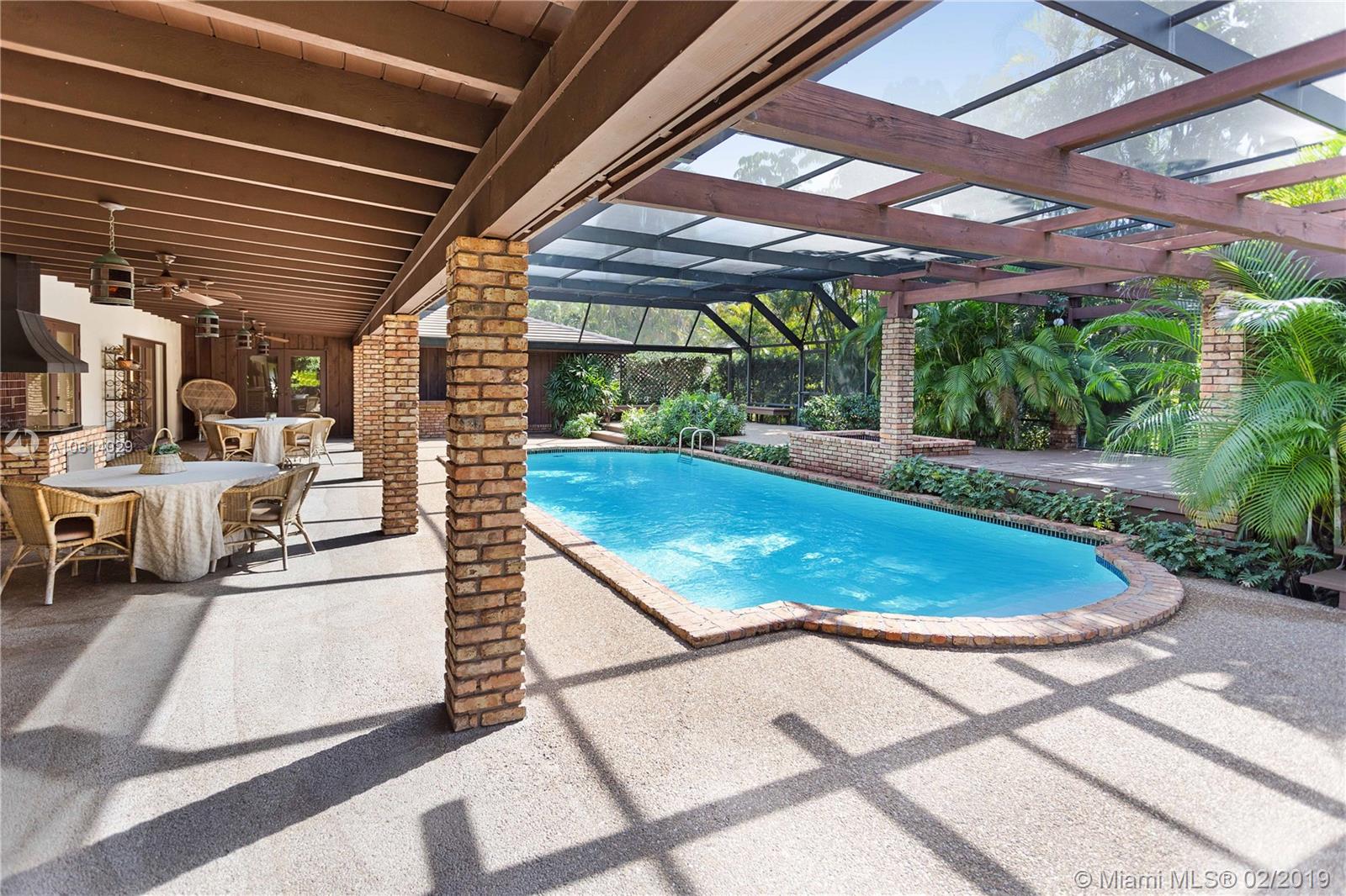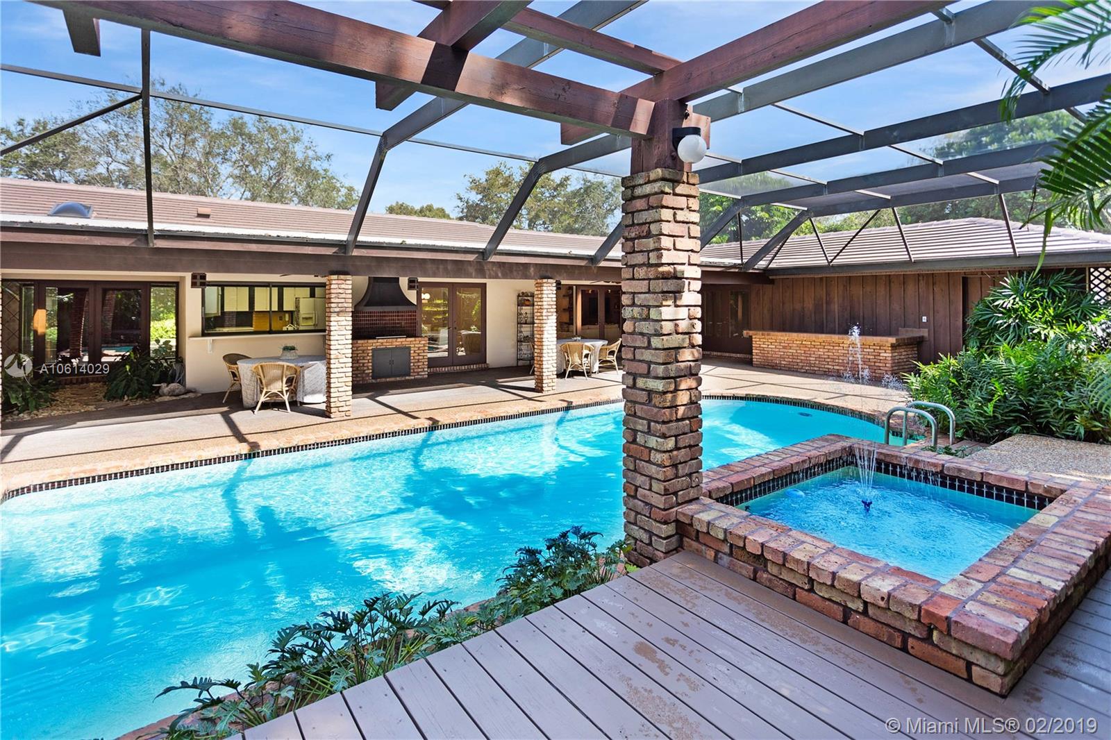 This spacious 4 bed/3.5 bath 4,210 sq ft home is situated on the highly desirable area of Pine Bay Estates in Coral Gables, with excellent schools nearby and enhanced security. The inviting interiors feature a formal dining room, living room and spacious bedrooms with walk-in closets. The split bedroom floorplan provides more privacy in the master bedroom that comes with a marble master bath. A spacious kitchen with breakfast area overlooks the outdoors, with pool, built-in bbq, bar, raisen wooden deck and brick fountain. The home also features a 2-car garage and new roof.