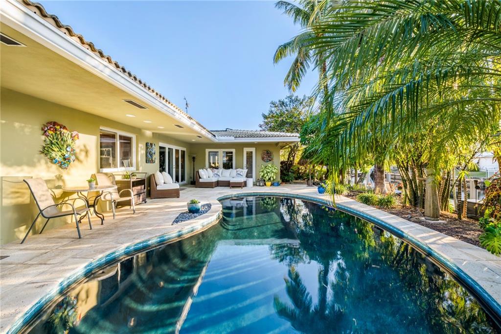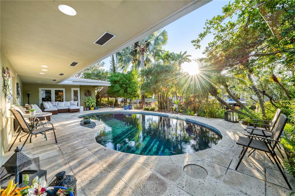 Welcome to 5931 NE 15 Ave set on 75 feet of waterfront in beautiful Coral Ridge Isles. This house has everything you are looking for. Three bedrooms, two bathrooms, 2,408 total SF, pool, gas range, and two car garage. Many recent updates and meticulously kept. Boaters will love the newly installed 10,000 ln boat lift and recently built Tiki Hut with electric. Enjoy long pool days with loads of sun around the pool, lush greeny for a tropical feeling and plenty of privacy. Other features include: impact windows and doors, custom made walk-in master closet, home generator, new window coverings in living, dining, kitchen and laundry rooms.